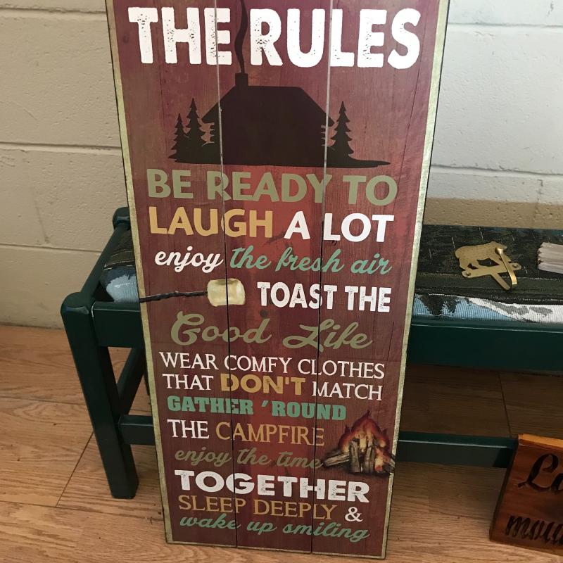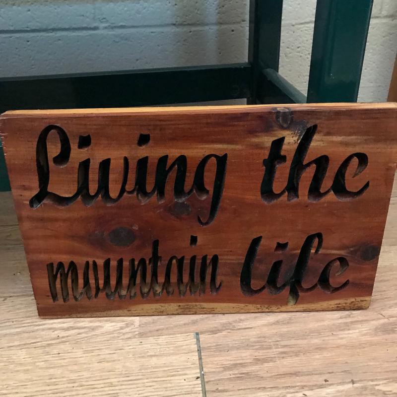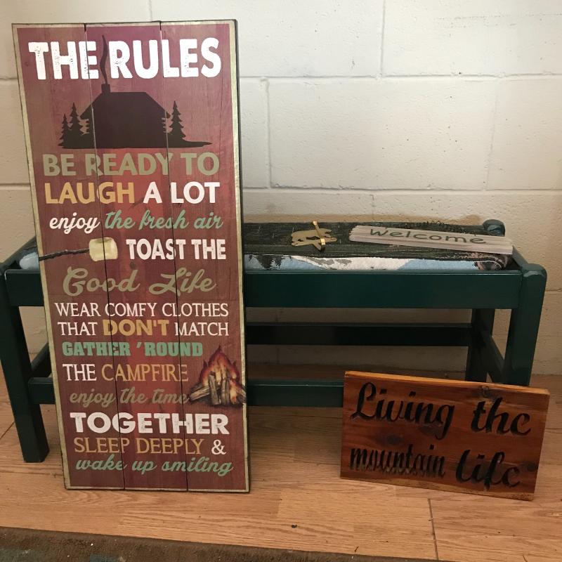 Lot includes three wall hangings (largest is 28” x 12”), a bear hook, and a small bench (33” x 9.5” x 14”), all perfect for your mountain cabin. See pics. No shipping available. Local pickup only in Maggie Valley, NC.