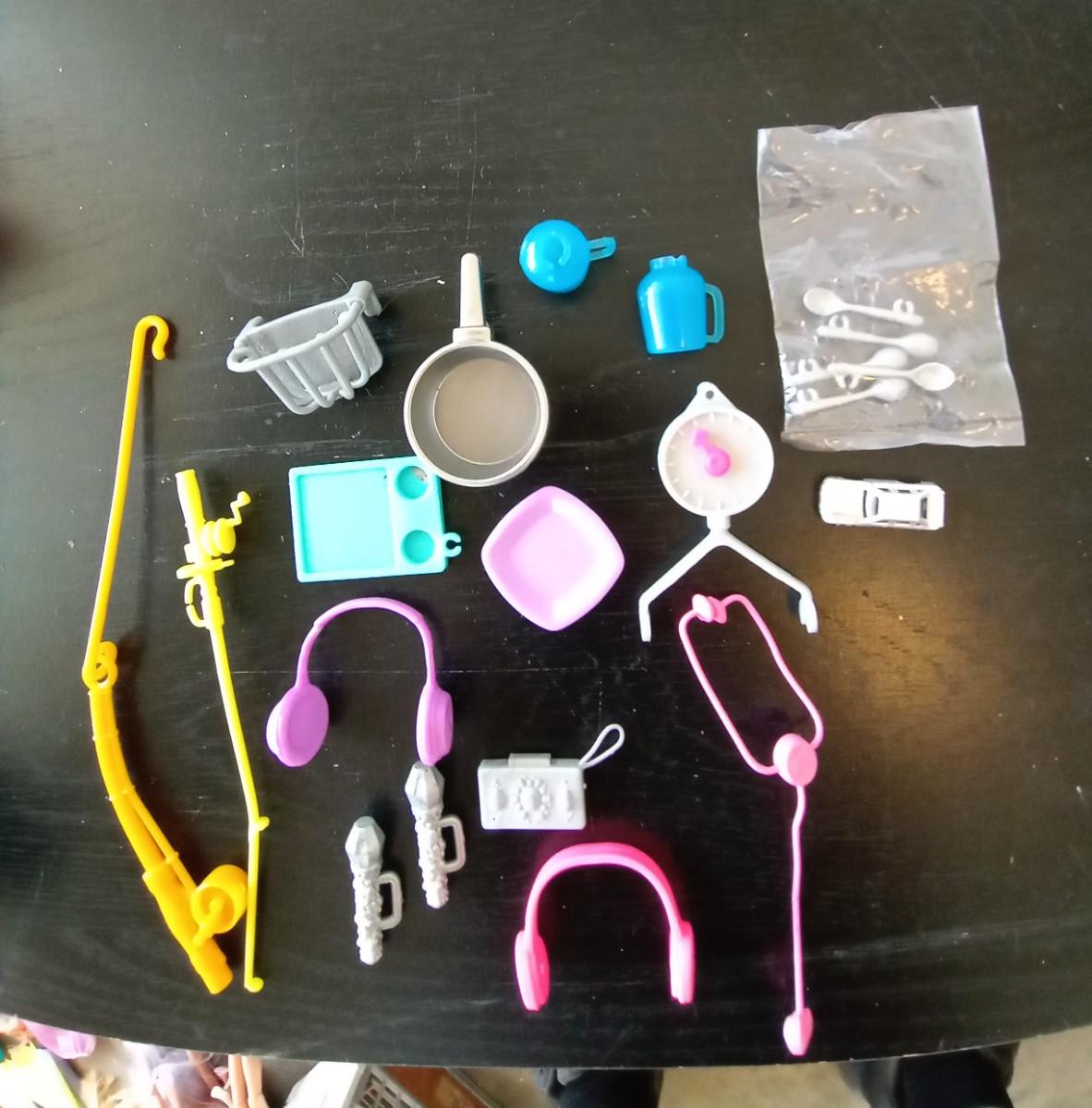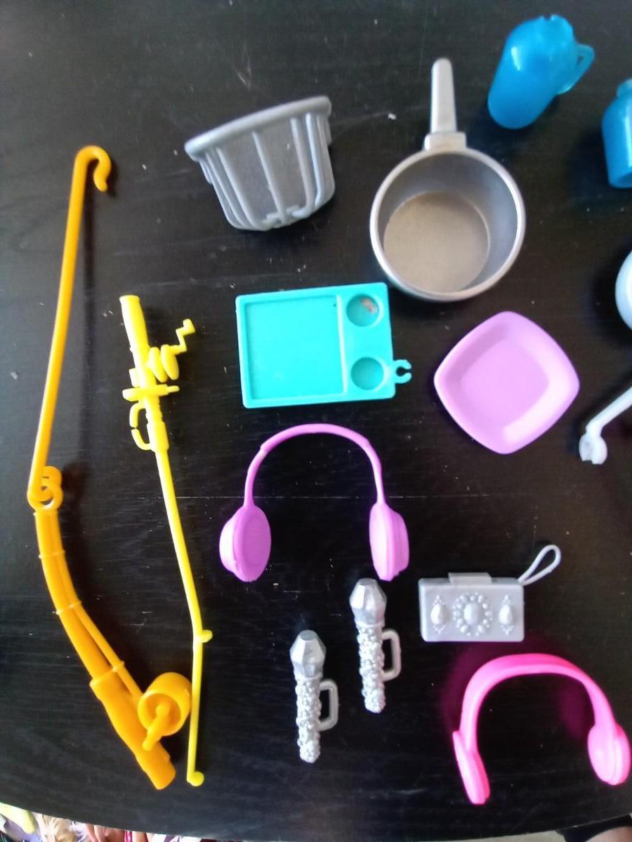 SMALL DOLL ACCESSORY ITEMS-FISHING POLES-EARPHONES-MICROPHONES AND MORE