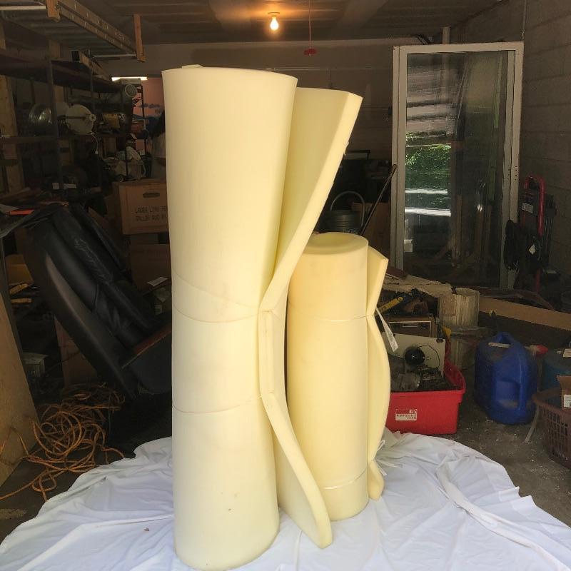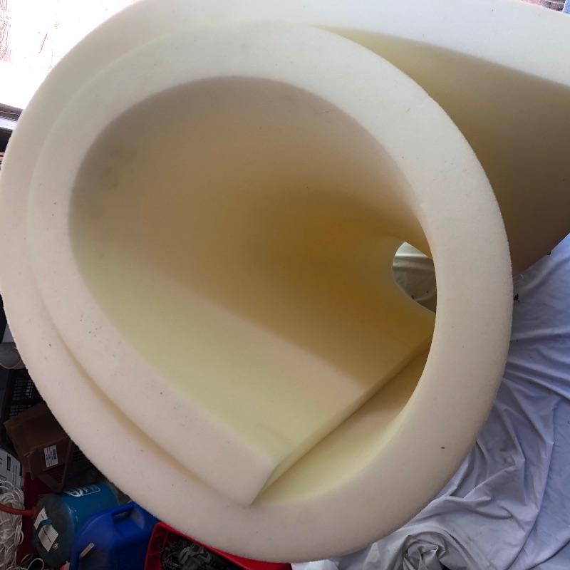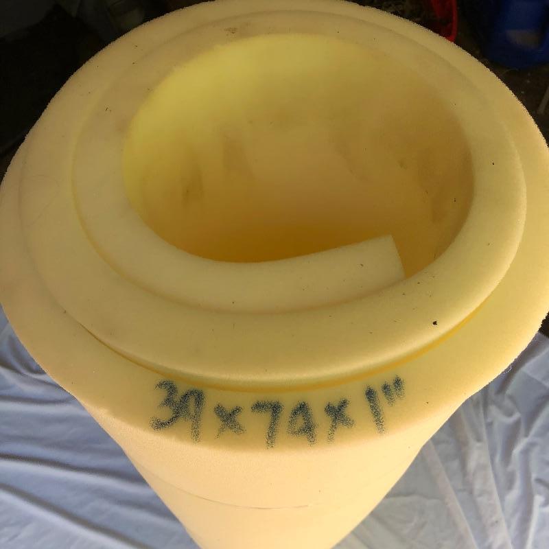 This lot includes two rolls of good quality foam. The larger roll is 2" foam that is approximately 74" x 60". The smaller roll is 1" foam that is 74" x 39".