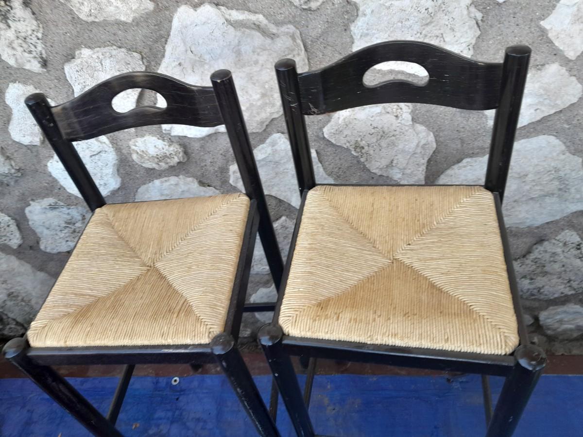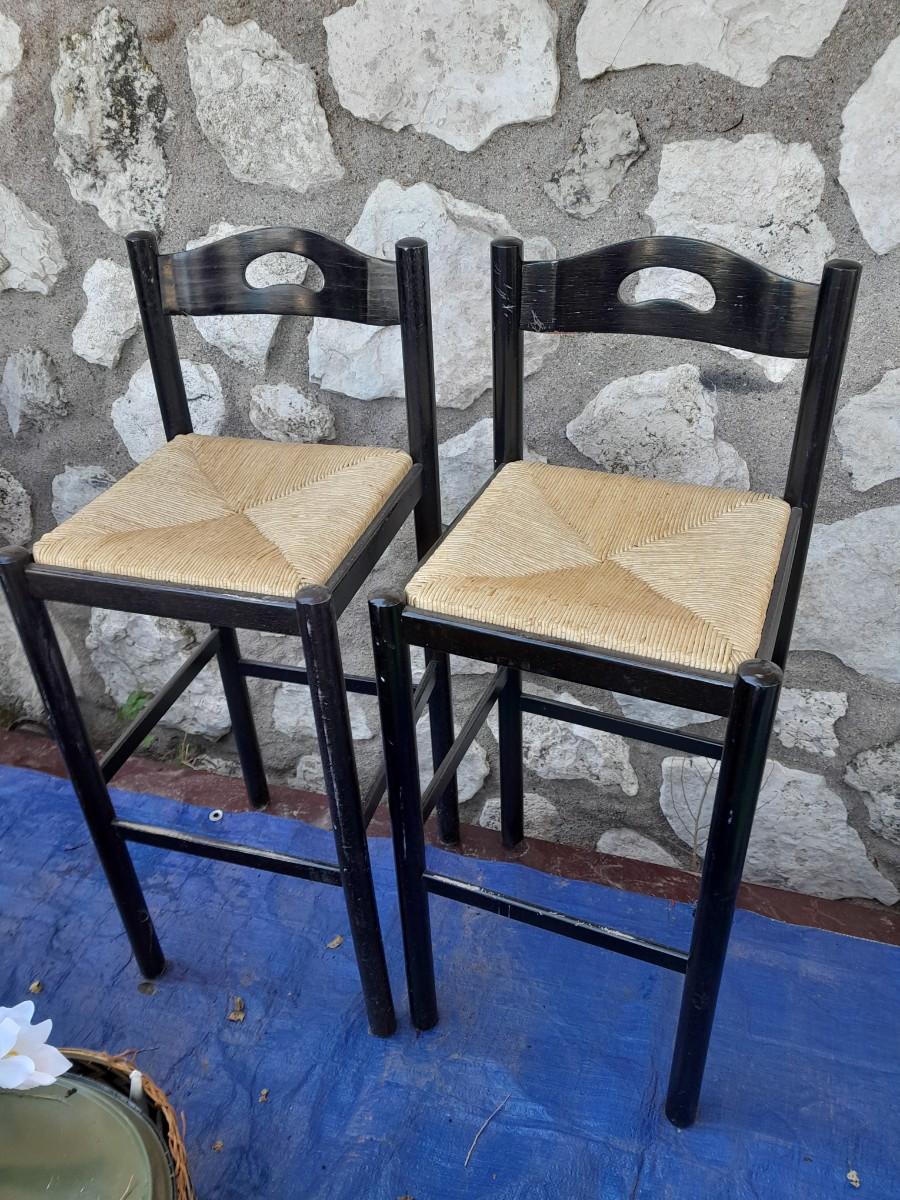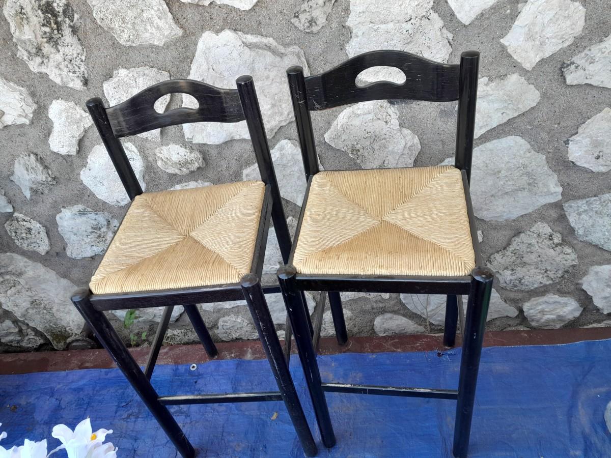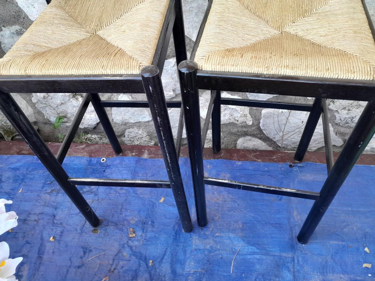 LOT 257  TWO WOVEN SEAT BAR STOOLS