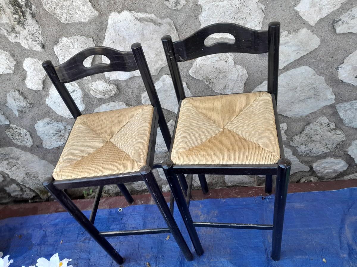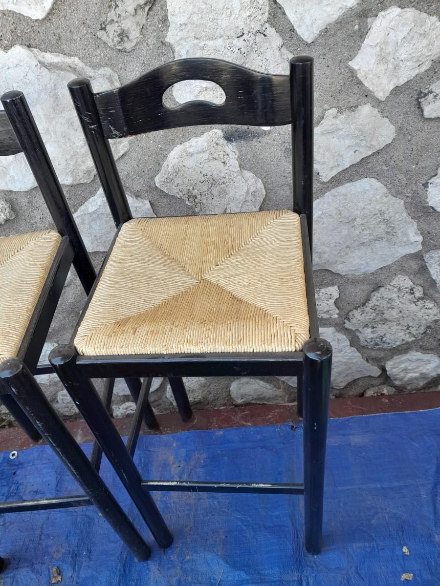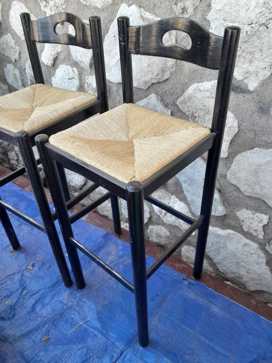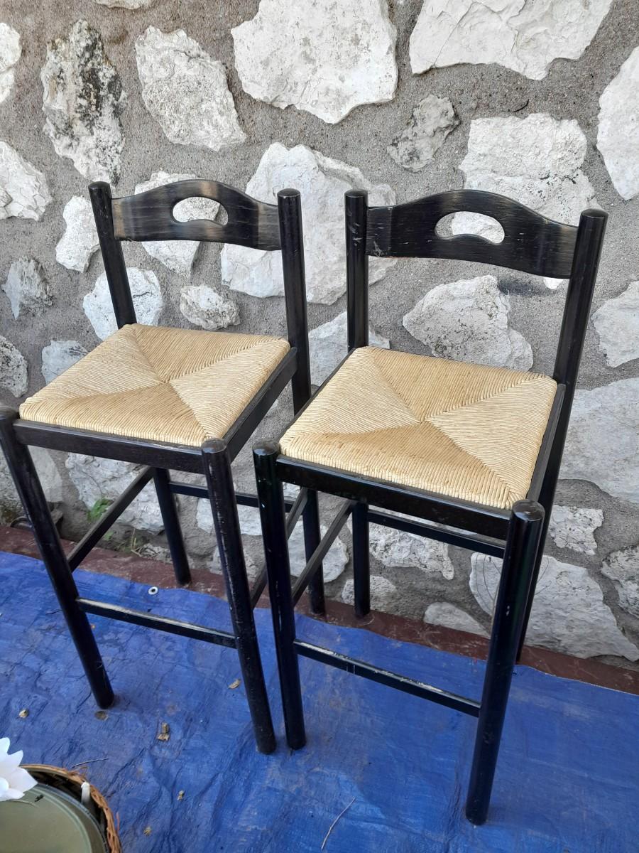 LOT 257  TWO WOVEN SEAT BAR STOOLS