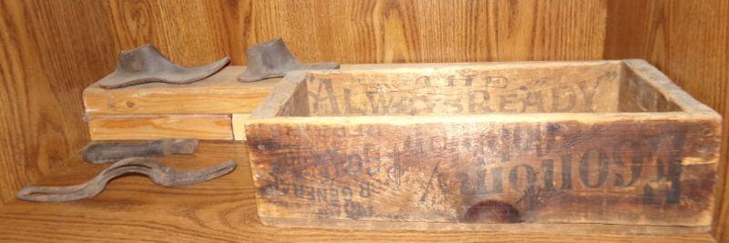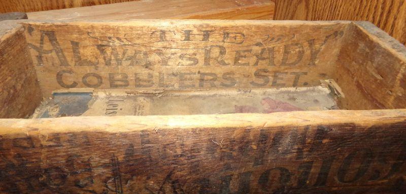 THE WOODEN BOX READS, "THE ALWAYS READY COBBLERS SET"