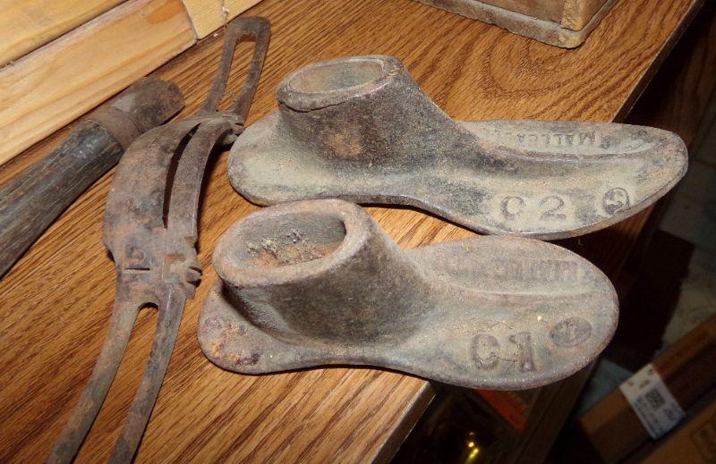 2 SHOE FORMS, DRAW KNIFE AND A HANDLE