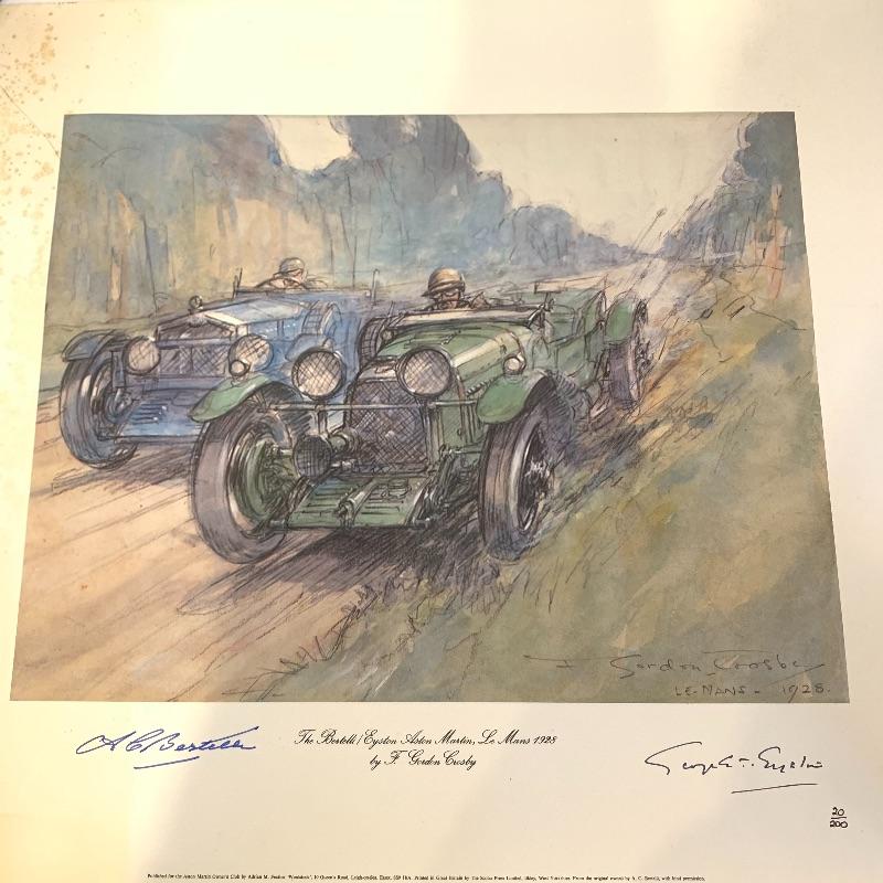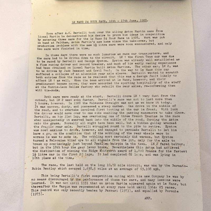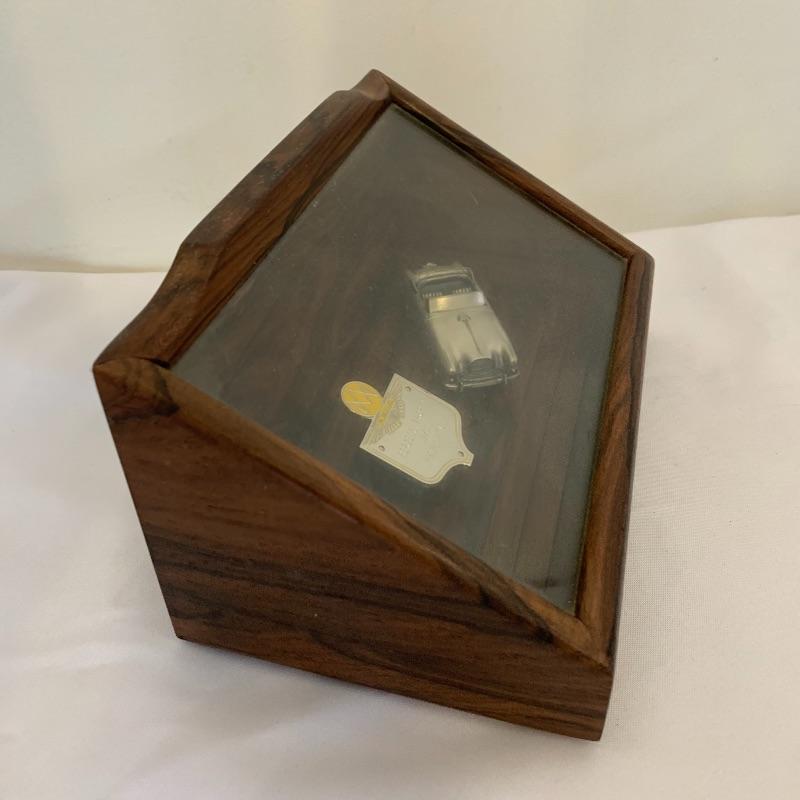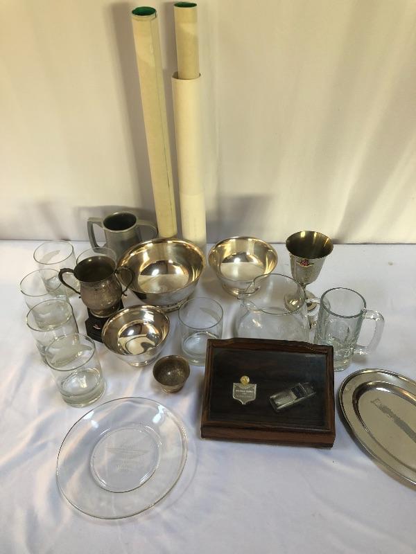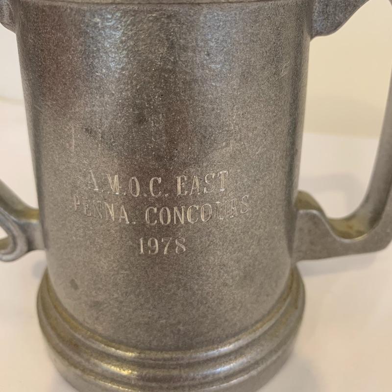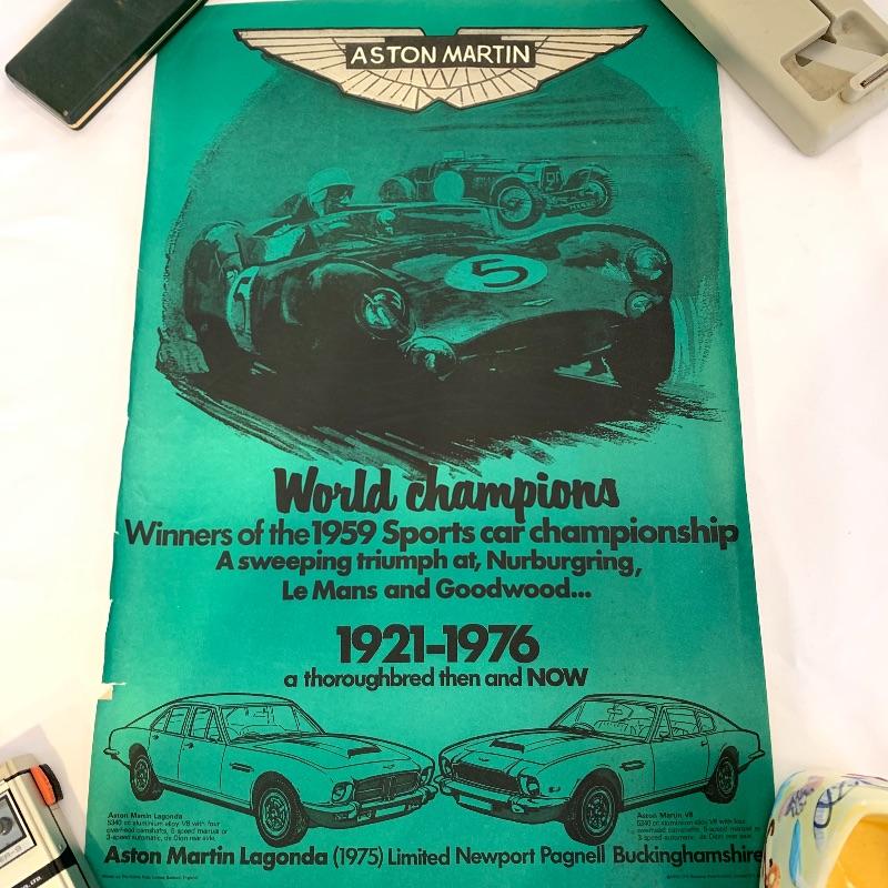 This lot contains seven Aston Martin Trophies ranging from 1st place to 2nd. It also has a display car in a case (8.5” x 5” x 4”). The green car is not included, it belongs in Lot 261. Along with this, it has five Aston Martin drinking cups. Lastly, there are eight Aston Martin posters along with descriptions of the posters (old fashioned - 22” x 17”). Seven of them are the World Champions poster (14” x 21.5”) The smallest trophy is sterling silver. Local pickup only.