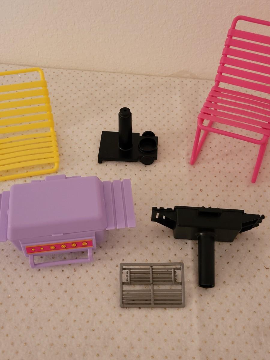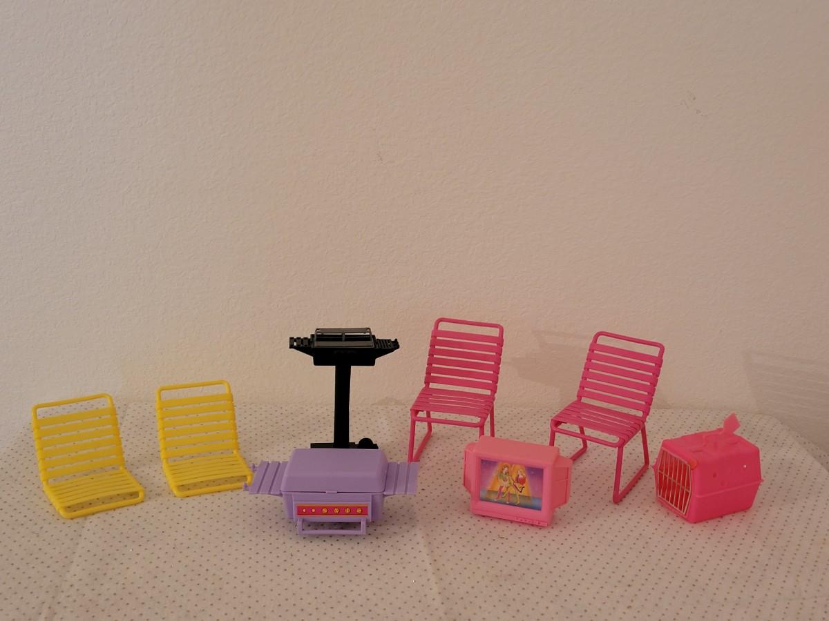 Lot 258: Vintage Barbie Accessories- Chairs, Grill, TV