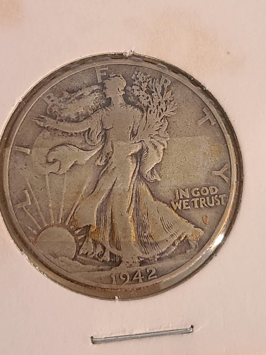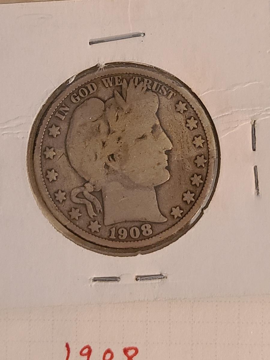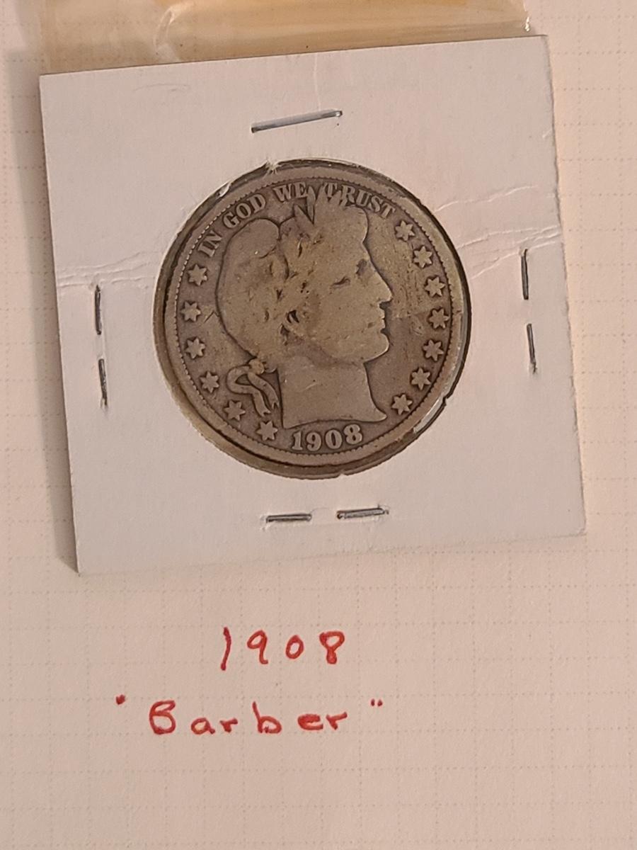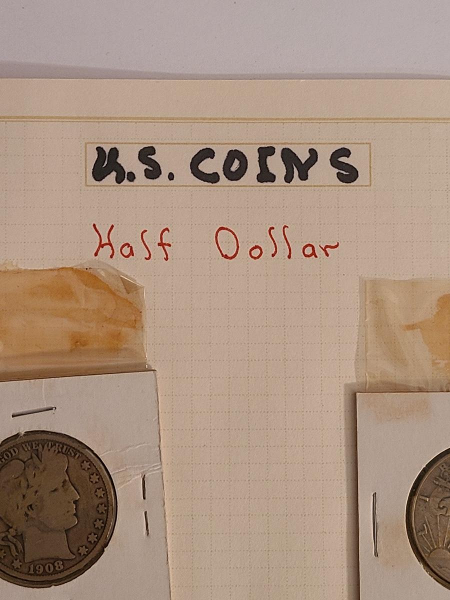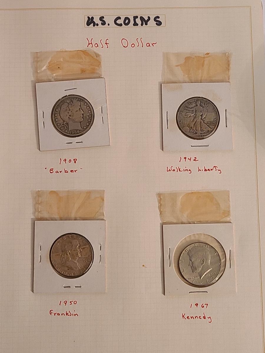 Lot 258: Four US. Half Dollar Coins: 1908 Barber, 1942 Walking Liberty and More