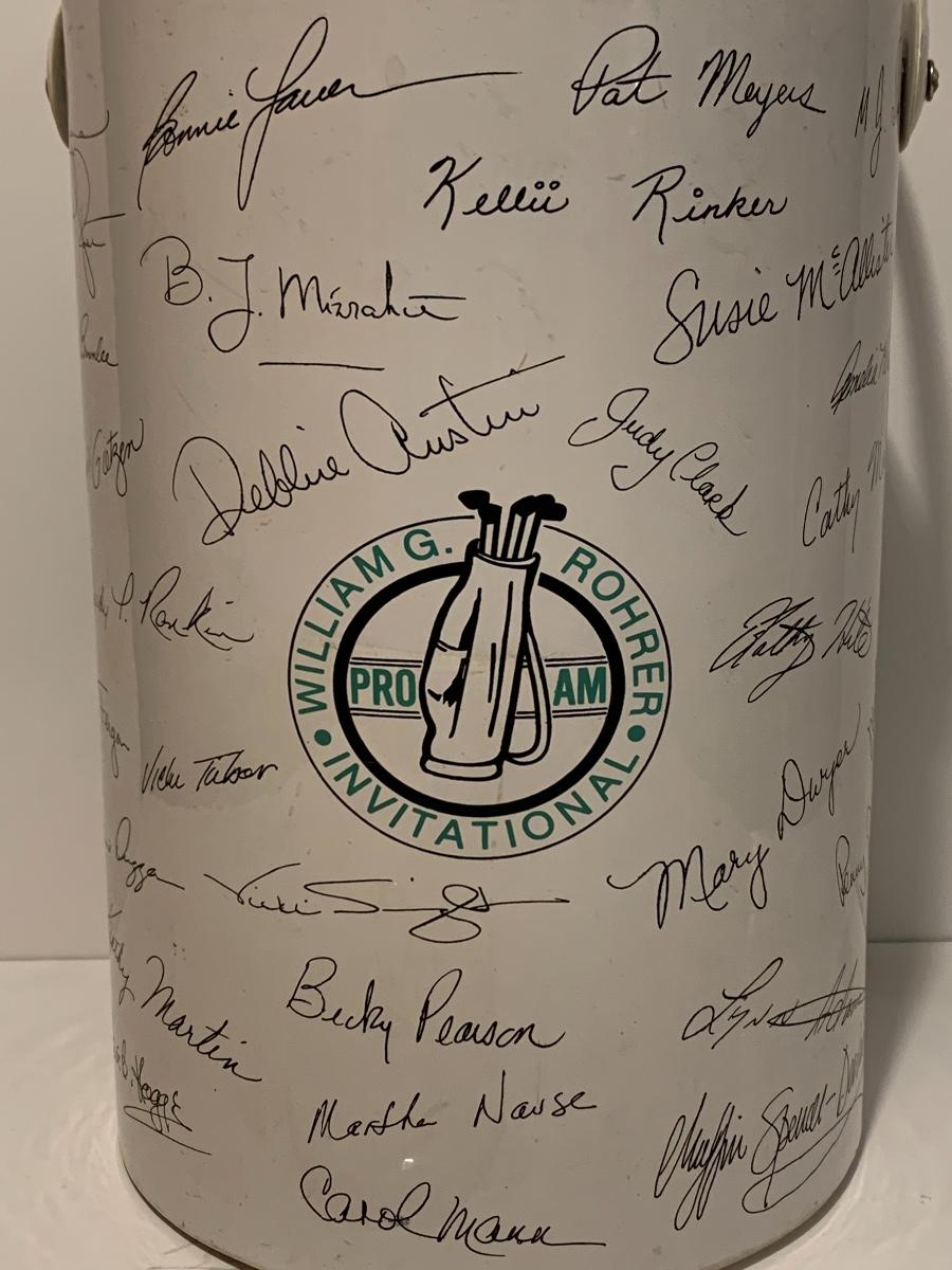 Lot 259: Leather Wine Carrier, Signed Golf Pro Am Ice Bucket, Pewter Tankard & More