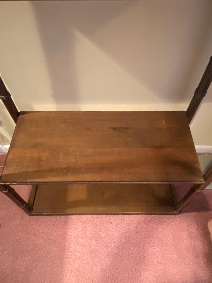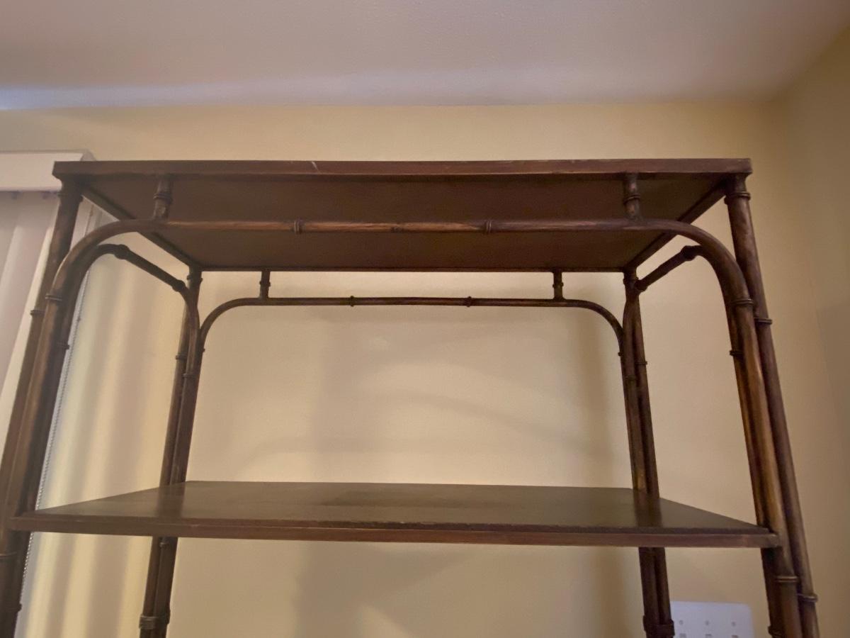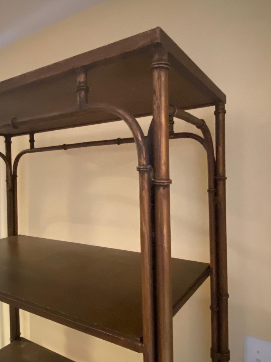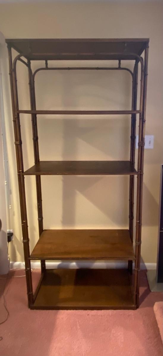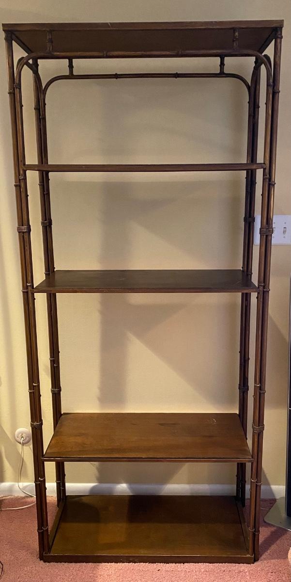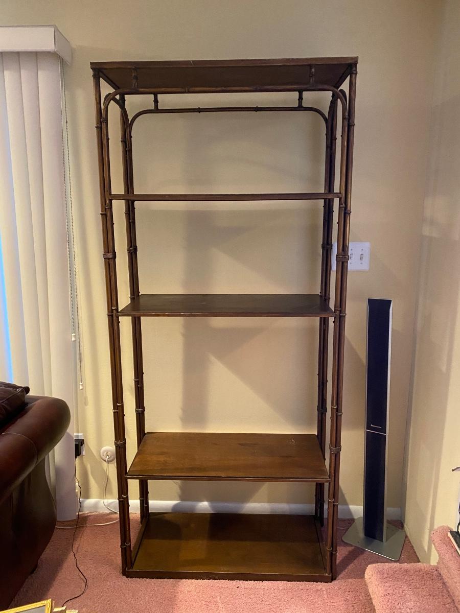 This shelf is perfect for any room in the house! It is solid and looks gorgeous. The arms are metal and styled like bamboo branches. Please see all pictures as they are the best representation of the items. The pictures show condition, measurements if taken, and what is included in the lot. Due to the large amount that we photograph and the time frame, we are not always able to take measurements. All items unless noted, are pre-owned and have been used. If you purchased furniture, you must bring help. We do not allow one person to carry large furniture out on their own. Bring help, tools and a truck for the safety of our client’s homes, and your personal safety. Company policy. Thank you.