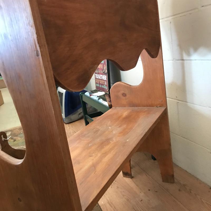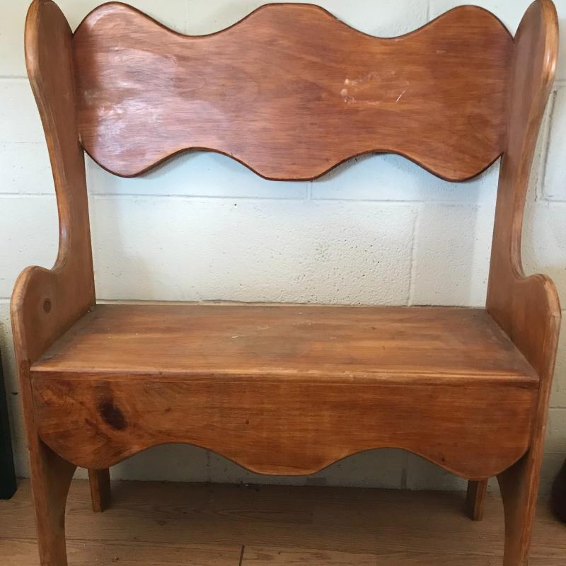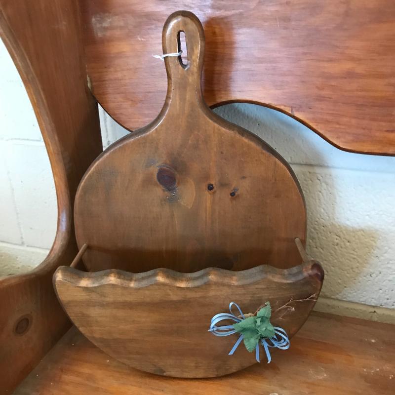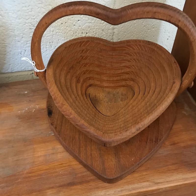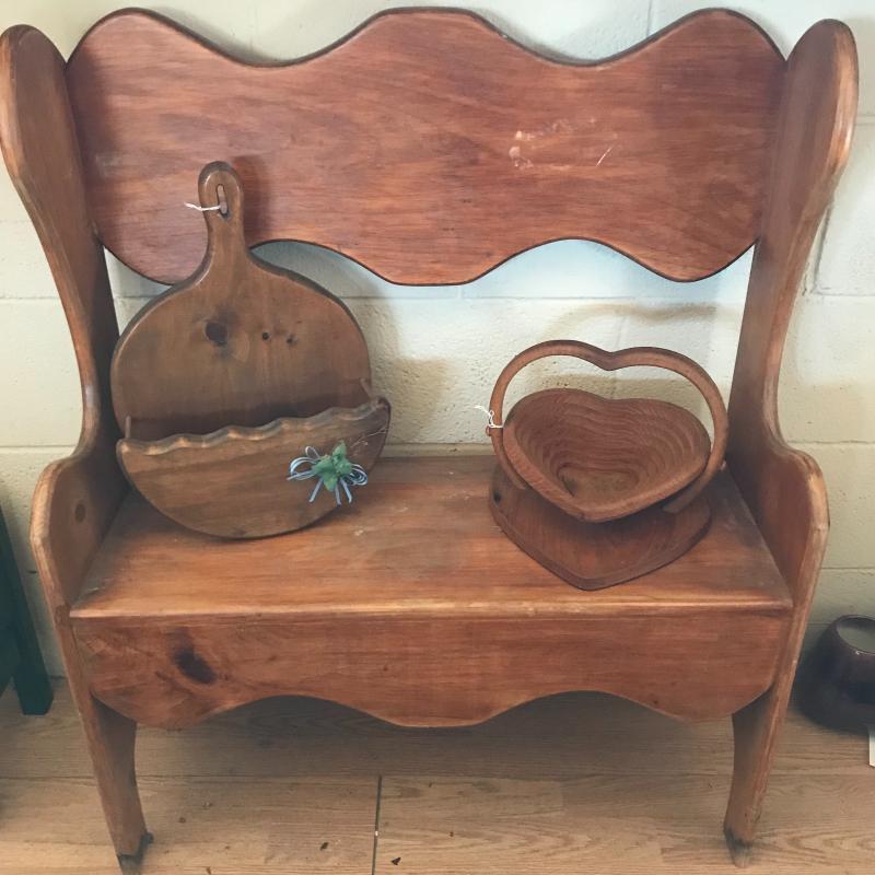 Lot contains small wooden bench (29.5” x 11” x 36”), wall hanging mail holder, and collapsible wooden heart basket. No shipping available. Local pickup only in Maggie Valley, NC.