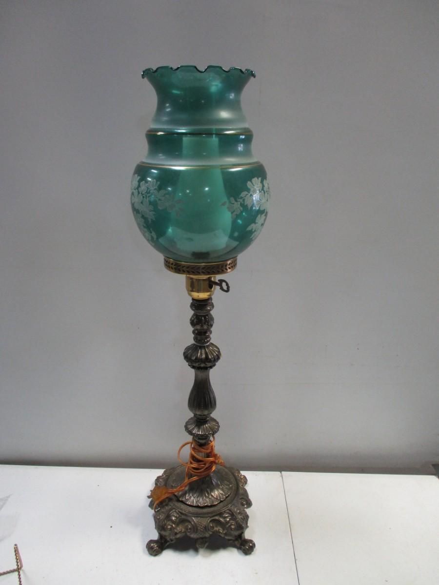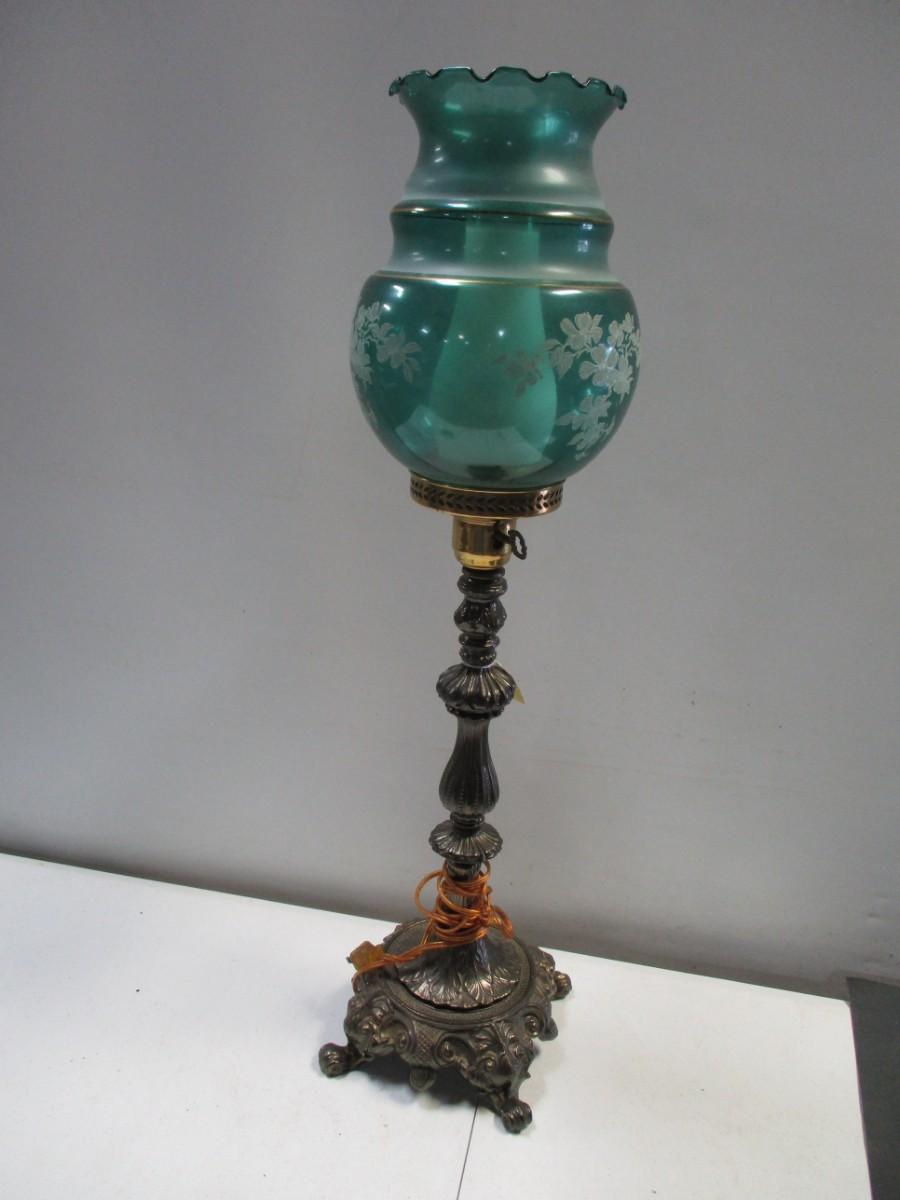 Lot 258 - Brass Table Lamp With Glass Shade 2 of 2