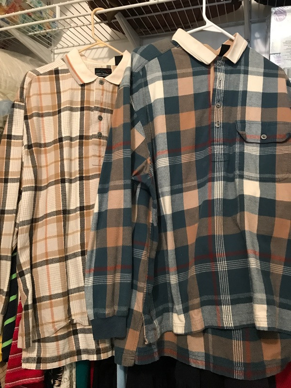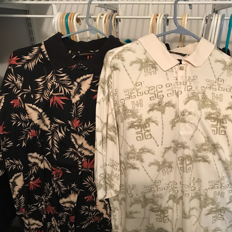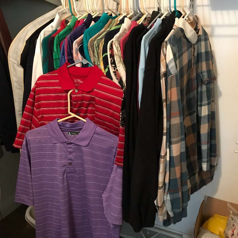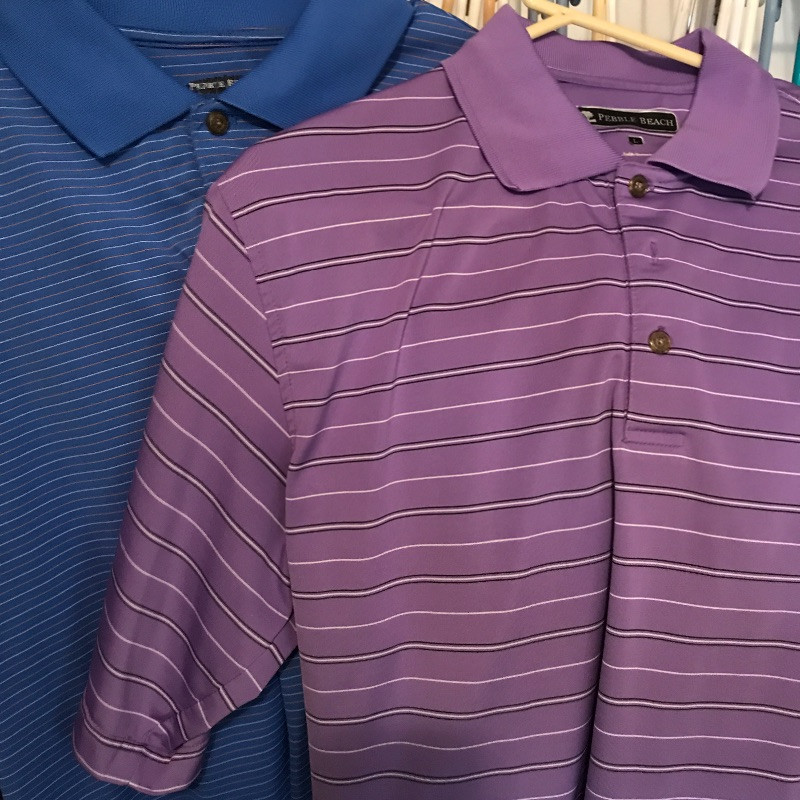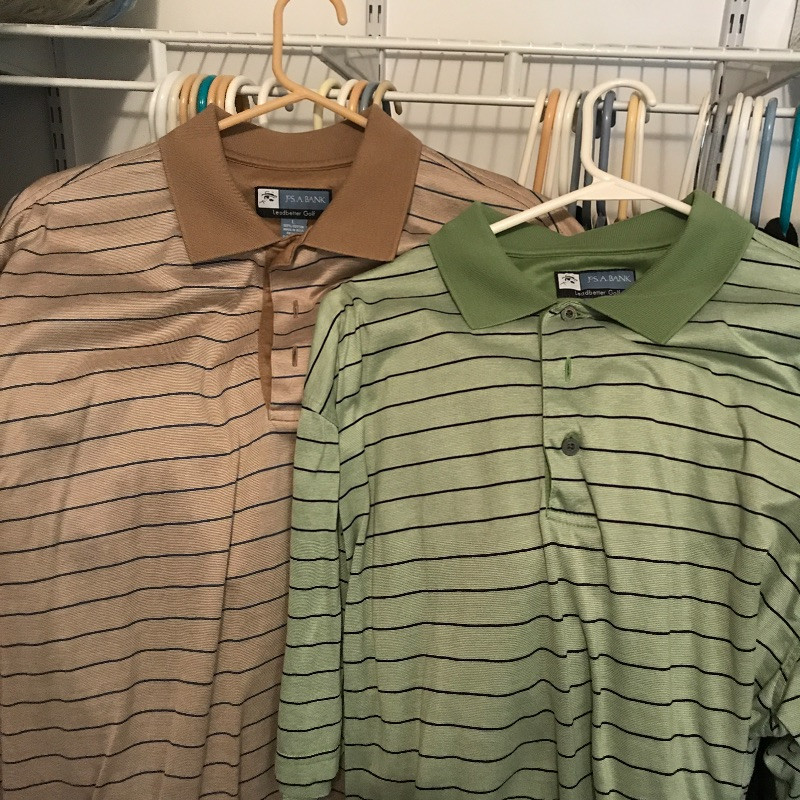 Men’s golf shirts in mostly size large. A few mediums and XLs thrown in. Mostly performance fabric and cotton with brands by PGA Tour, JoS Bank, Pebble Beach, Brooks Brothers and Greg Norman. All in great condition. Lot also includes some flannel, long sleeves, sweaters and even a pin stripe suit with 34/32 pants by Perry Ellis. Local pickup only.