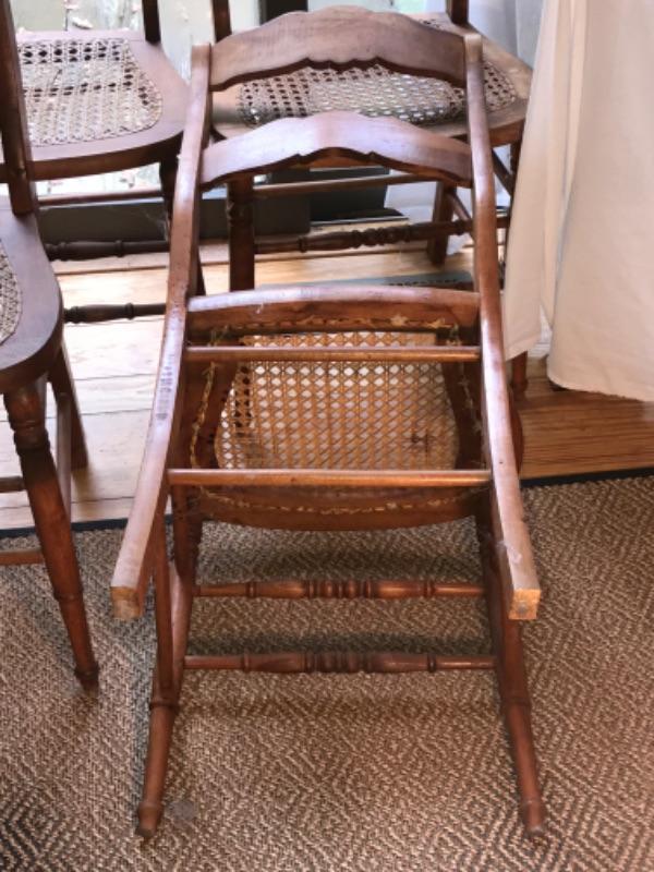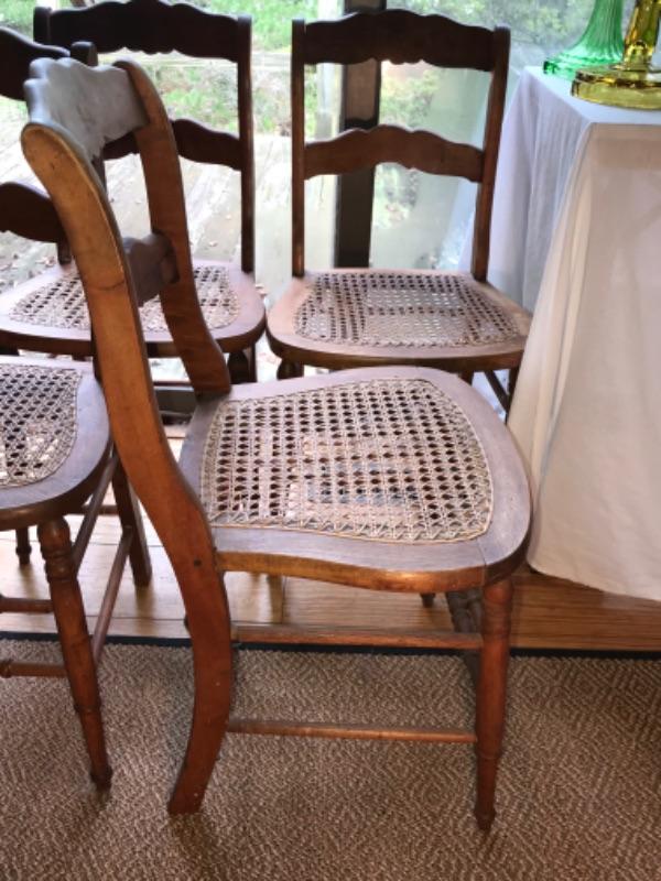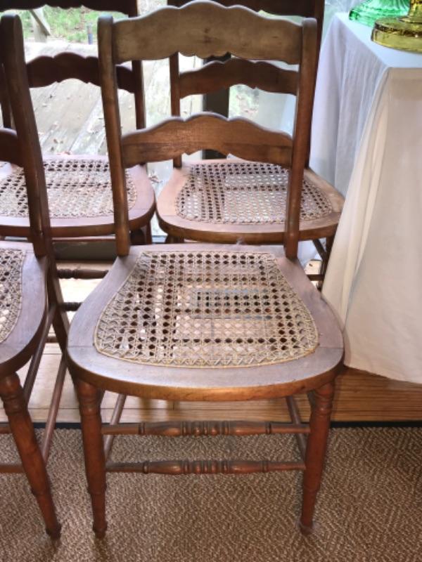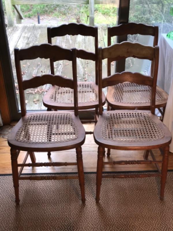 Set of four matching cane seat chairs. 33” tall 17” wide 15-1/2” deep. Seat height 18”