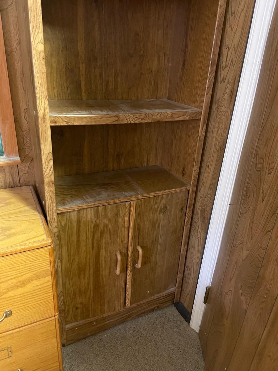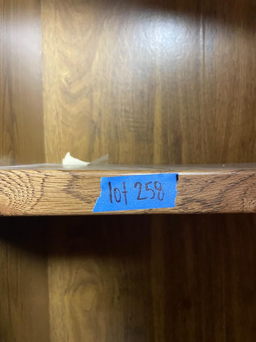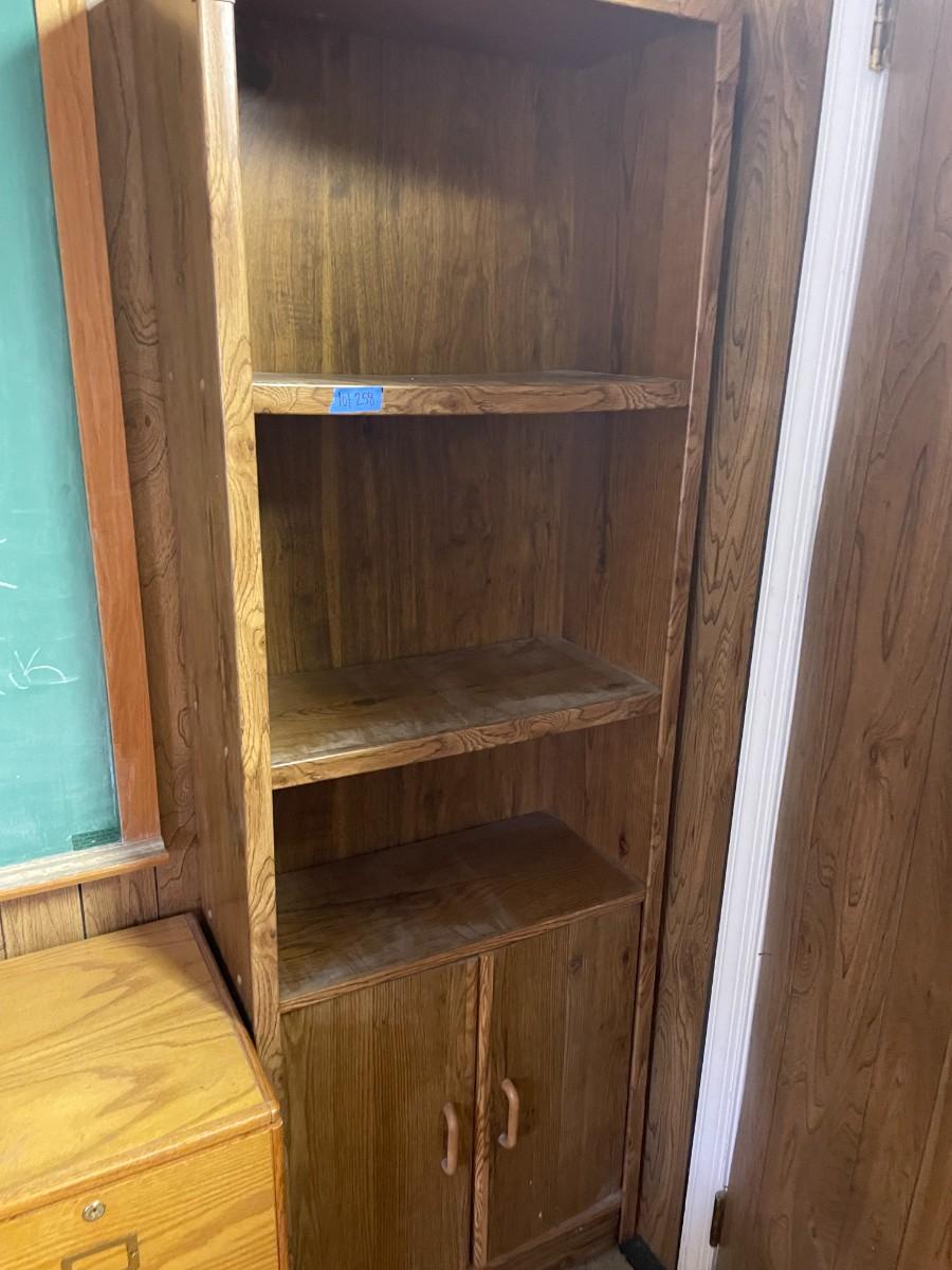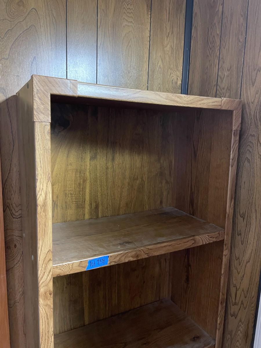 lot 258- tall bookshelf with contents