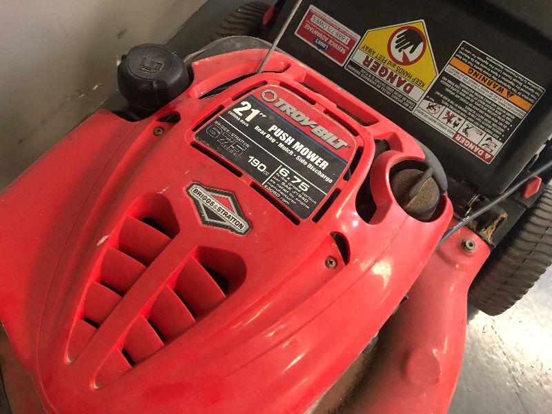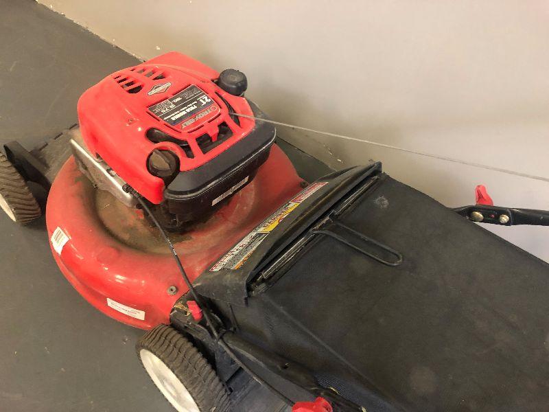 21" Cut Pull start, rear bag mulch, side discharge, push not drive wheel