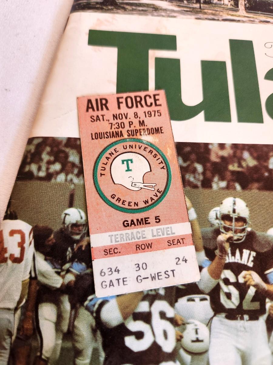 Program and Ticket stub from the Tulane vs. Air Force Game of 8 November 1975 - played in the Superdome.