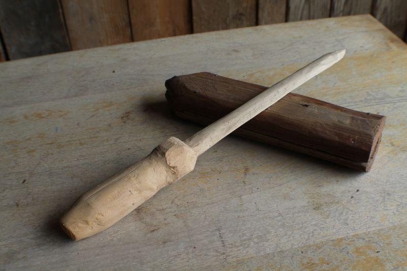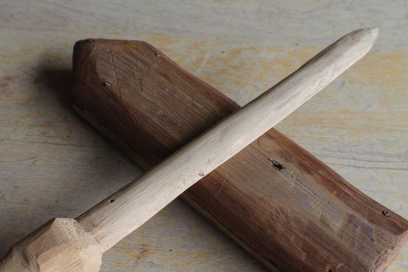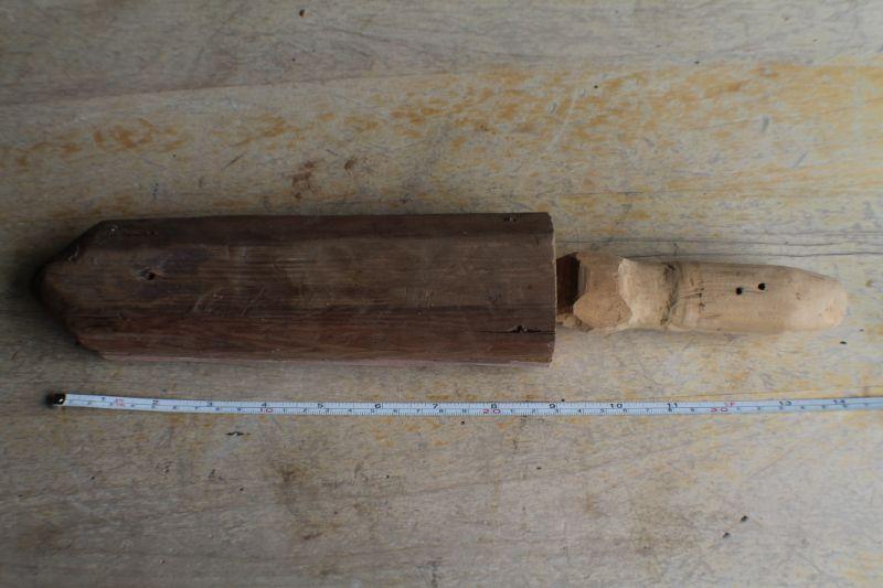 Lot #258: Vintage Folk Art Handcarved Wooden Toy Sword w/ Custom Wood Sheath