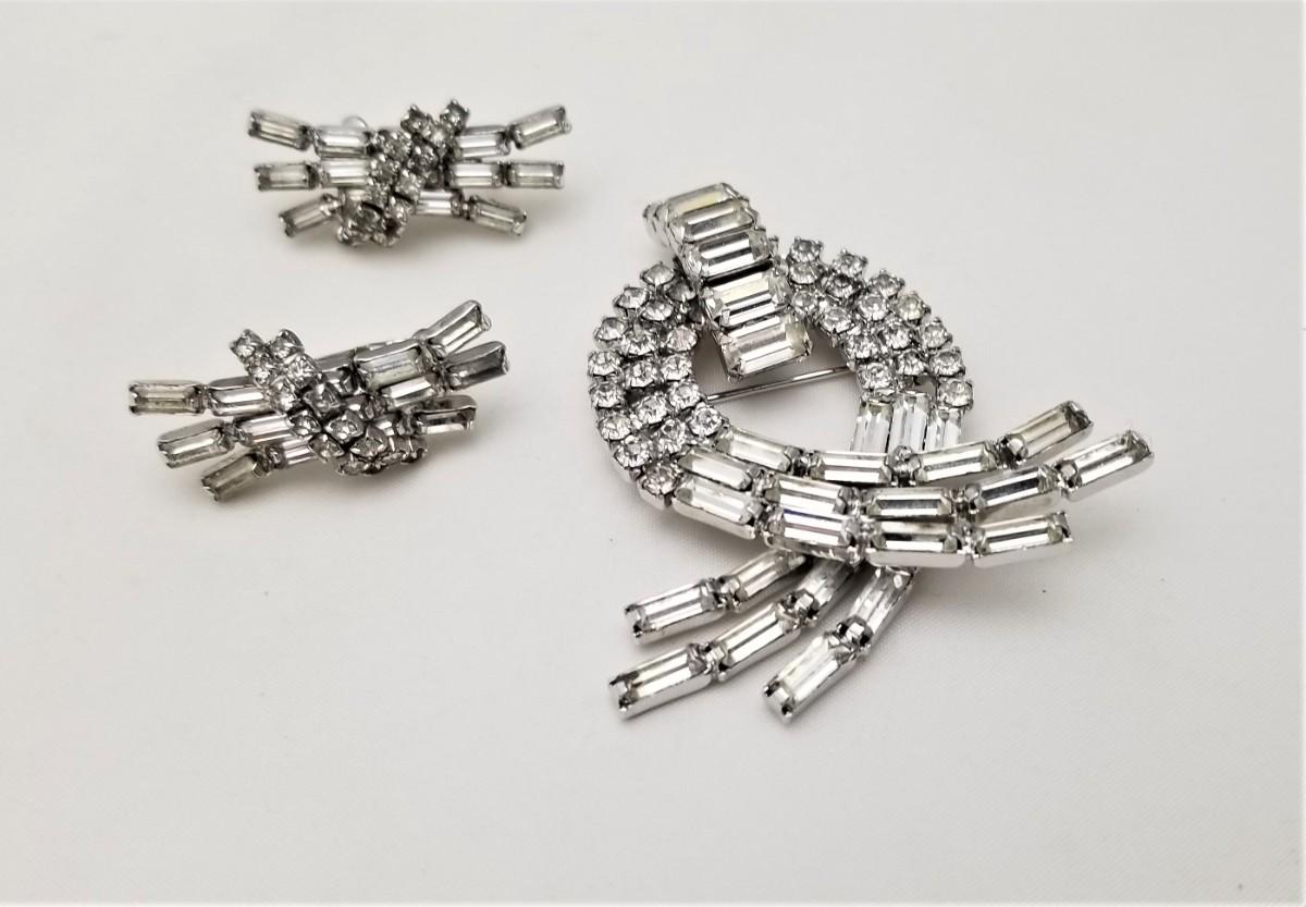 Lot #258 Vintage KRAMER Rhinestone Brooch and Clip Earring Set
