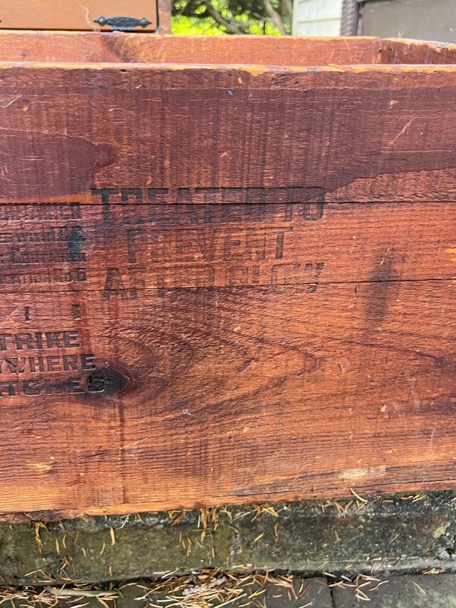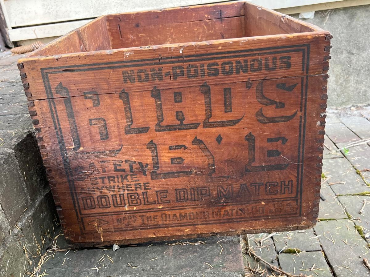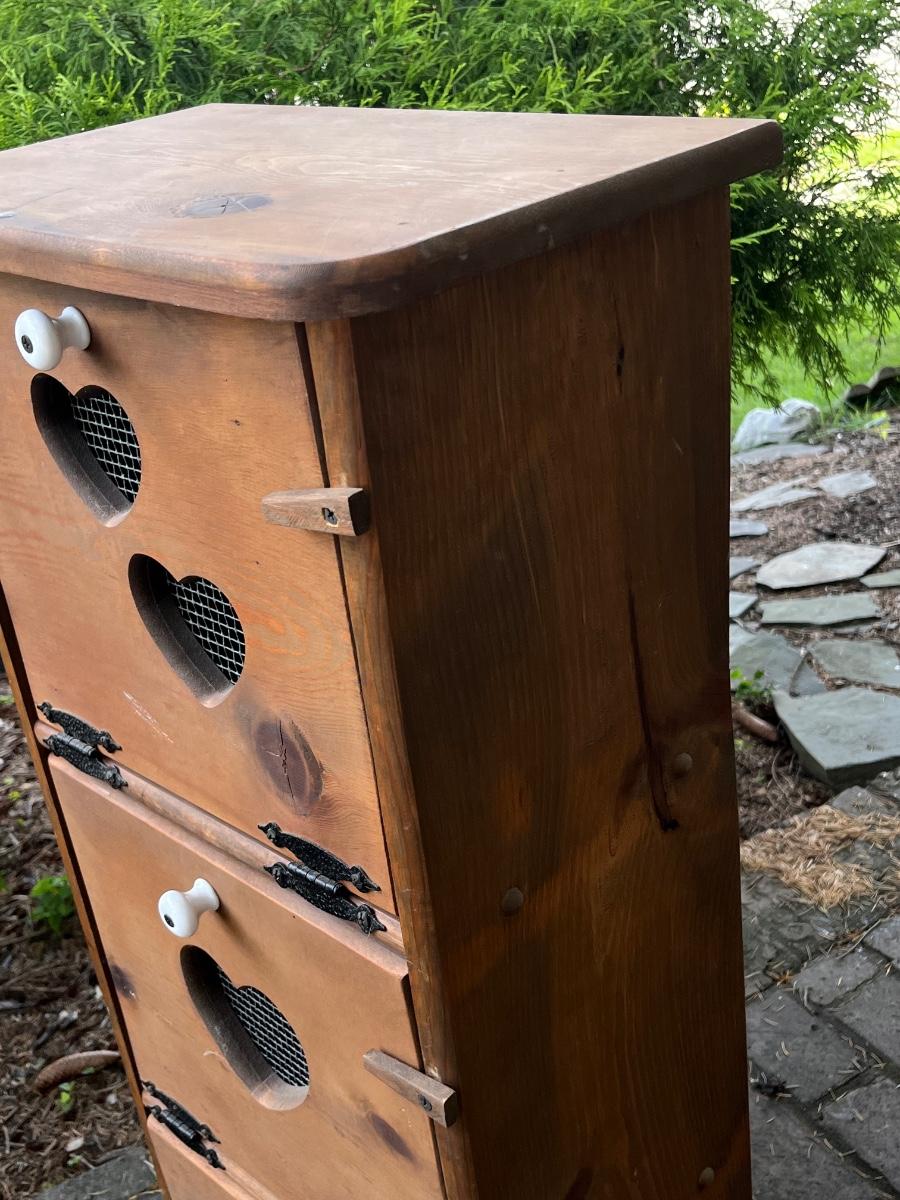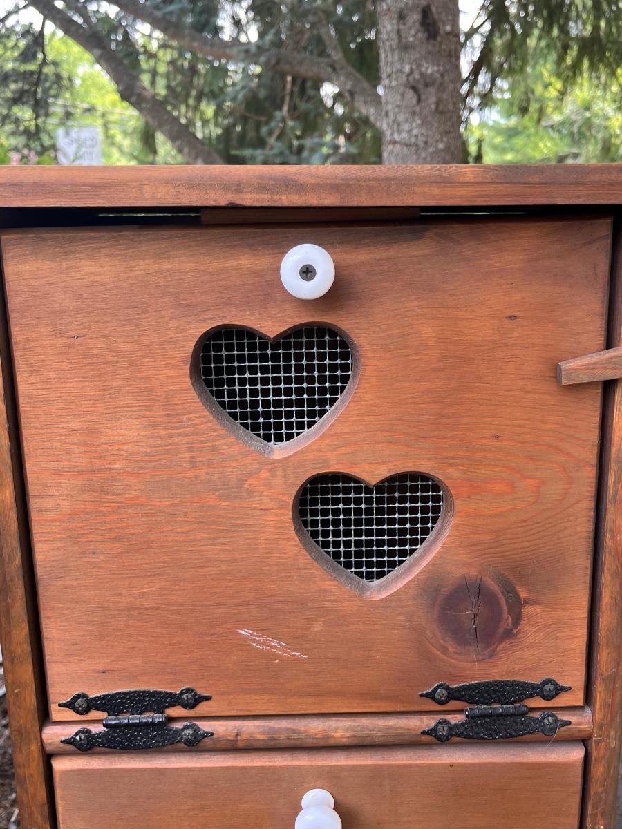 LOT 258: Vintage Pine Tree Creations Heart Cabinet & Bird’s Eye Wooden Crate
