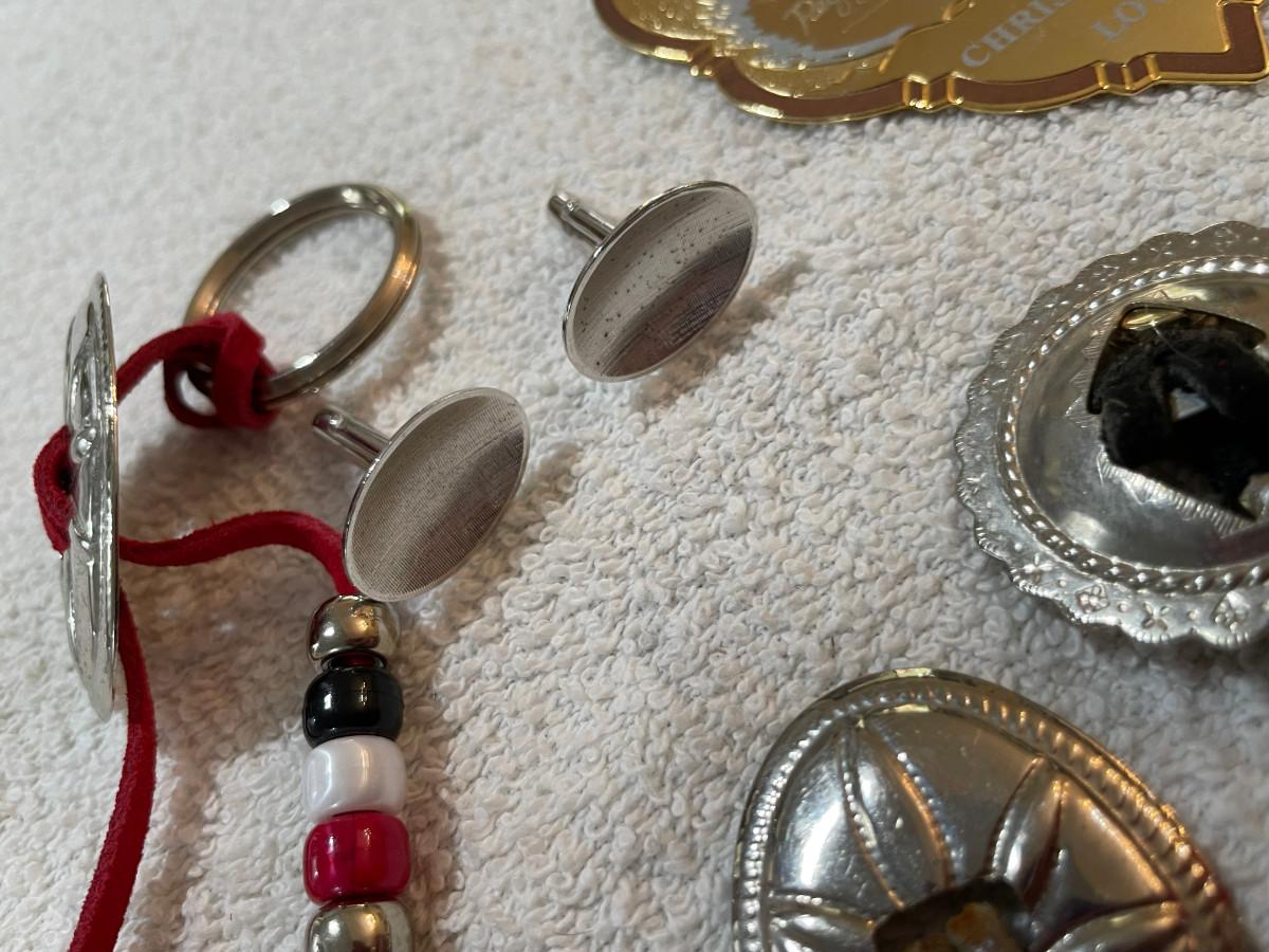 8. Sizes are approximate, you can estimate as our lot number signs are 3.5" long. Also we use an 18" & 36" measuring stick.  We try on certain things to do actual measurements. No guarantees on actual sizes, we try our best!