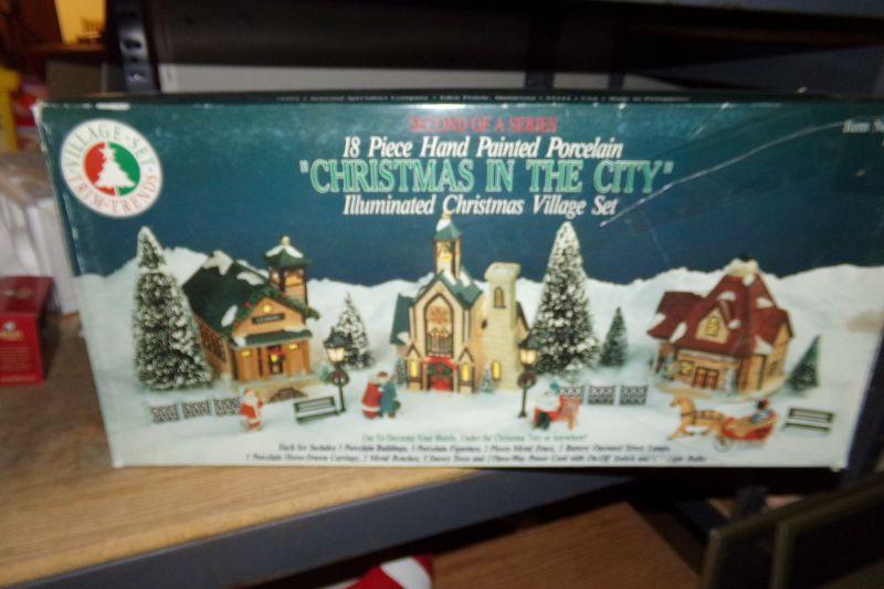 "CHRISTMAS IN THE CITY" 18 PC HAND PAINTED PORCELAIN ILLUMINATED CHRISTMAS VILLAGE SET