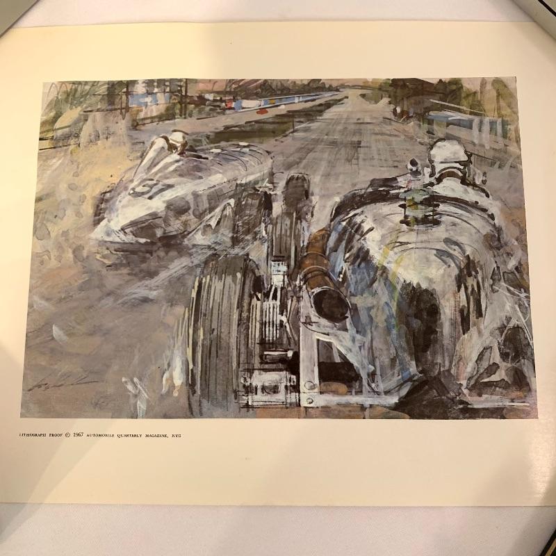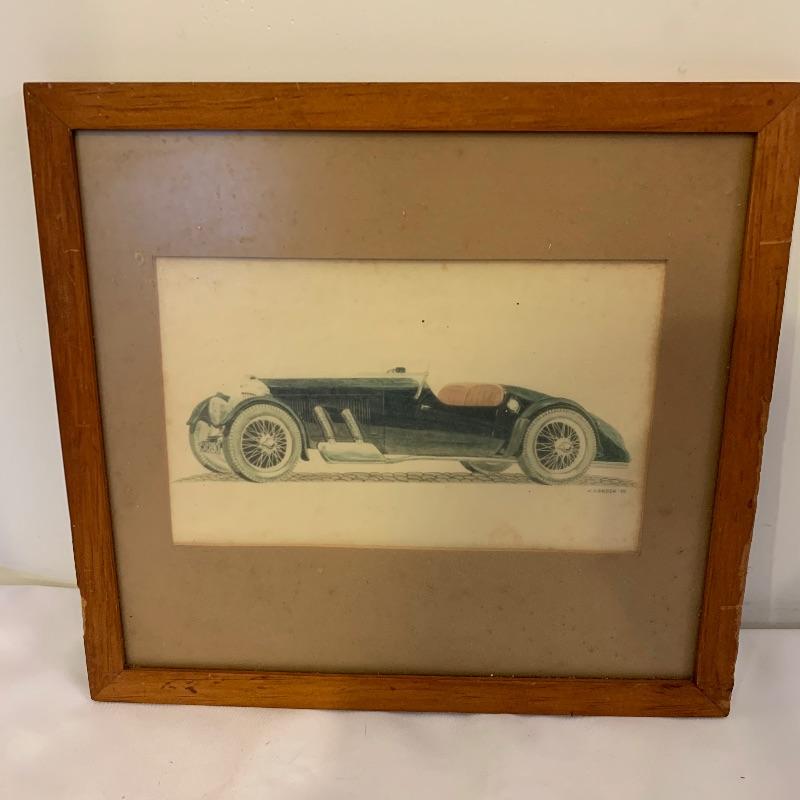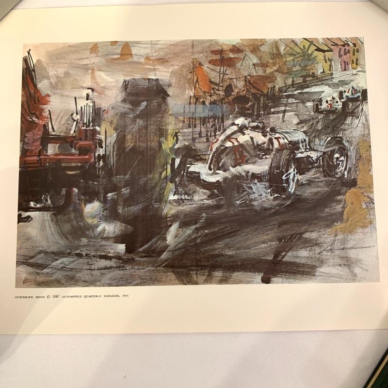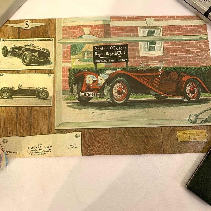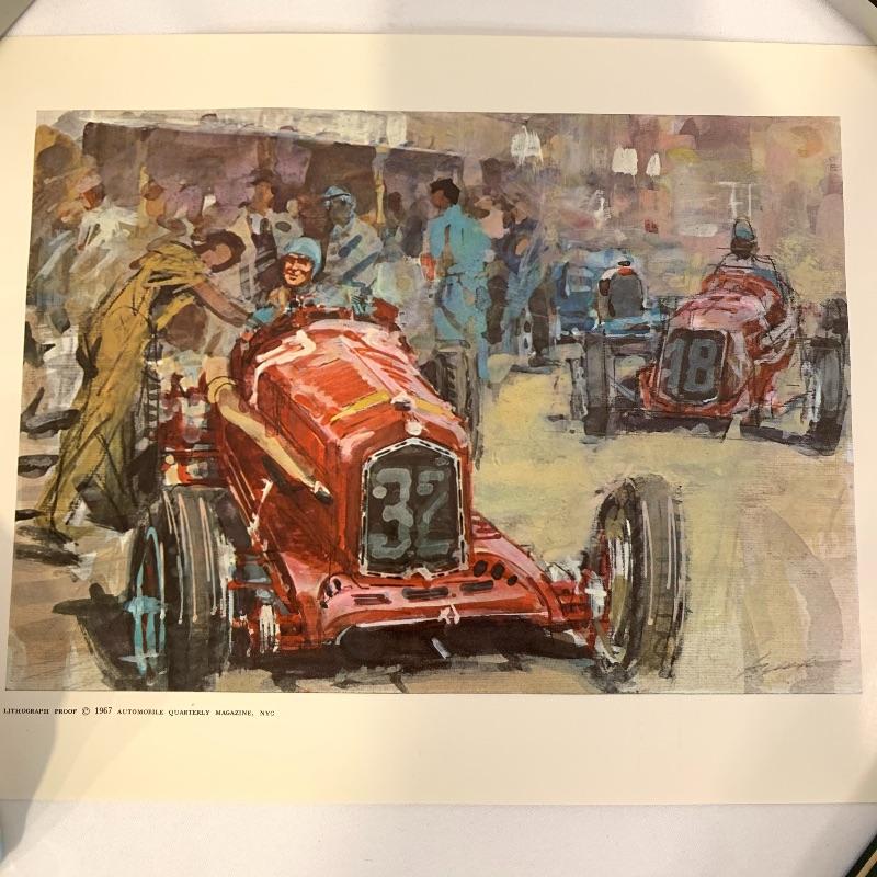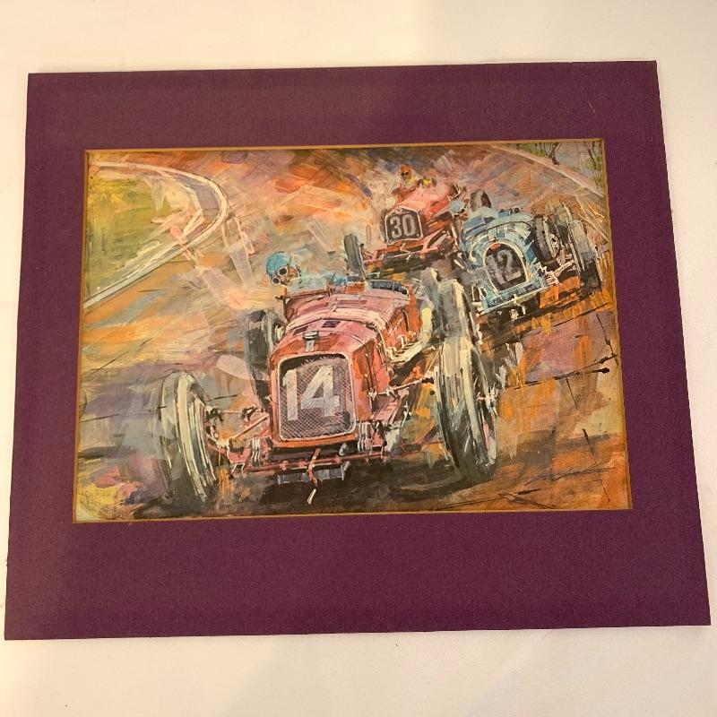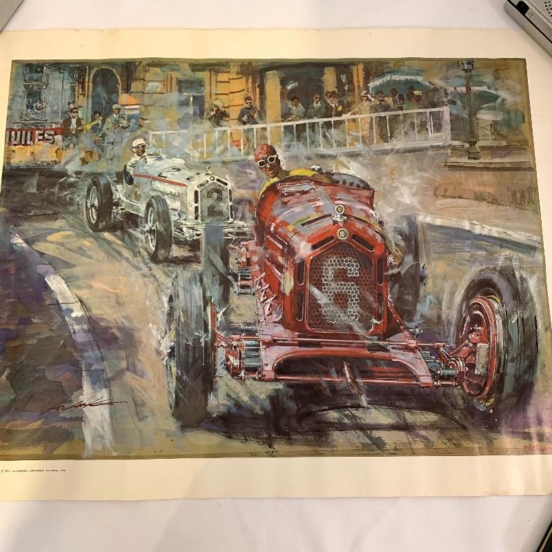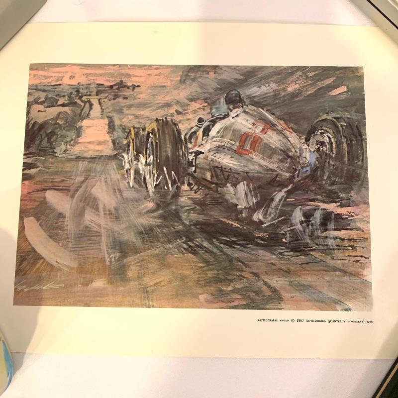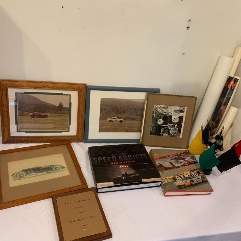 If you’re a fan of cars, this lot is for you! This lot contains a hardcover copy of a book called Speed Addicts by Mark Hughes (12” x 11”), several old pictures of cars (15.5” x 13”), a book called “The Certain Sound,” a racing flag decoration, as well as several posters and lithographs. The posters include a poster of Le Mans Grand Prix (17” x 22”), “The Squire Car” (17” x 11”), several smaller lithographs of classic cars (from Automotive Quarterly Magazine), and more. Local pickup only.
