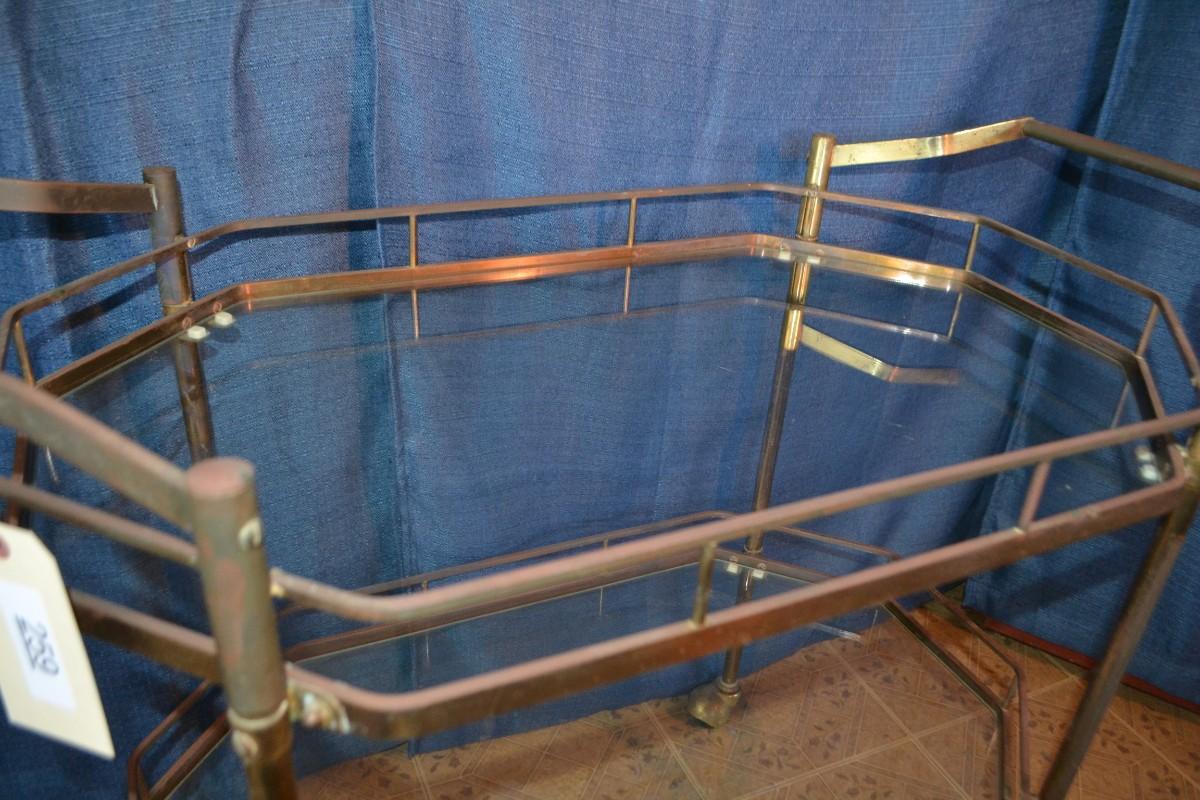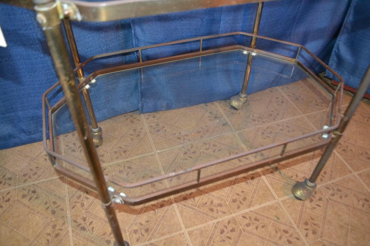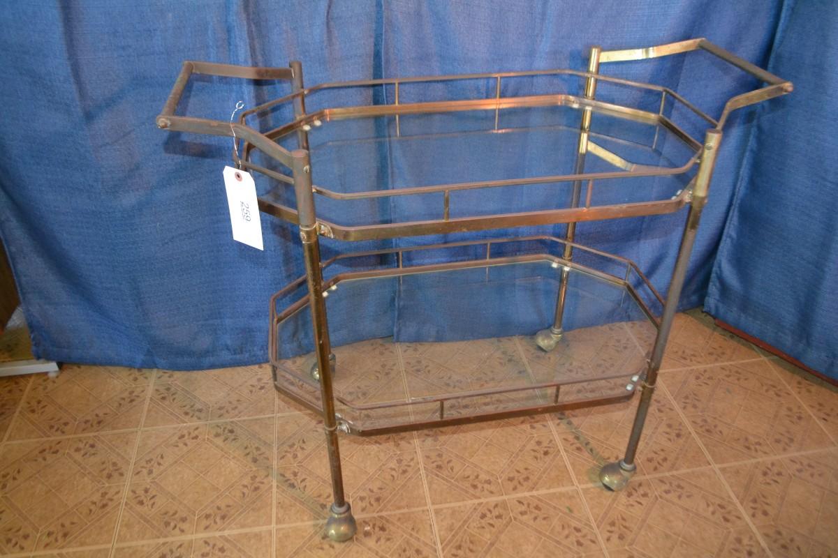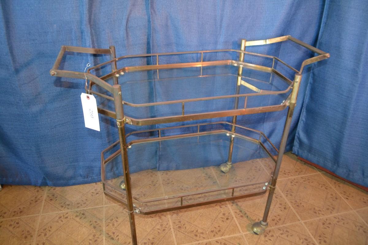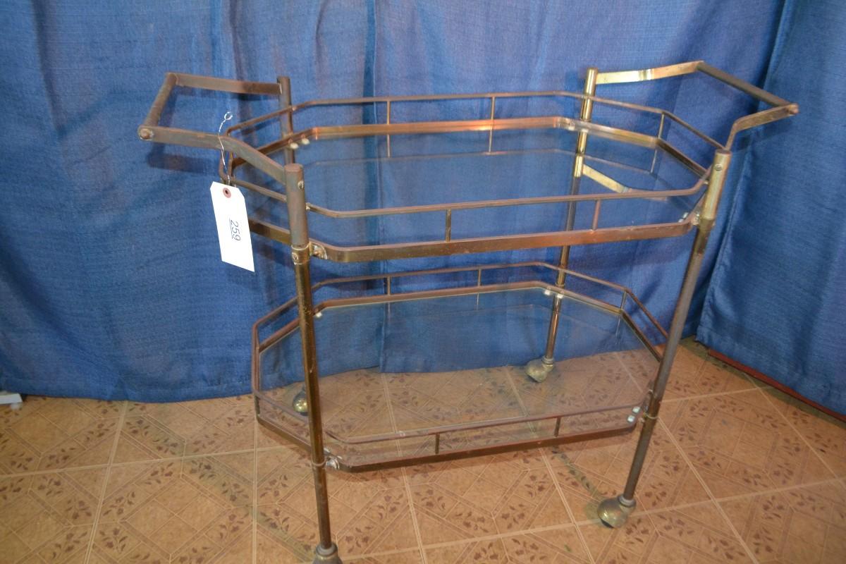 LOT 259 vintage metal and glass bar cart