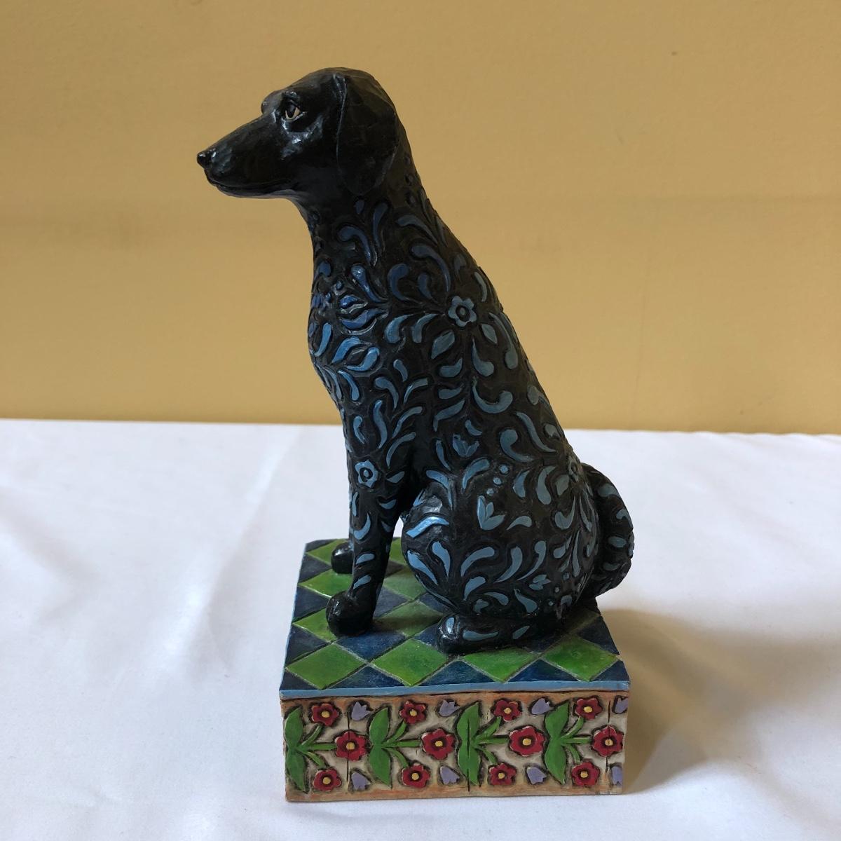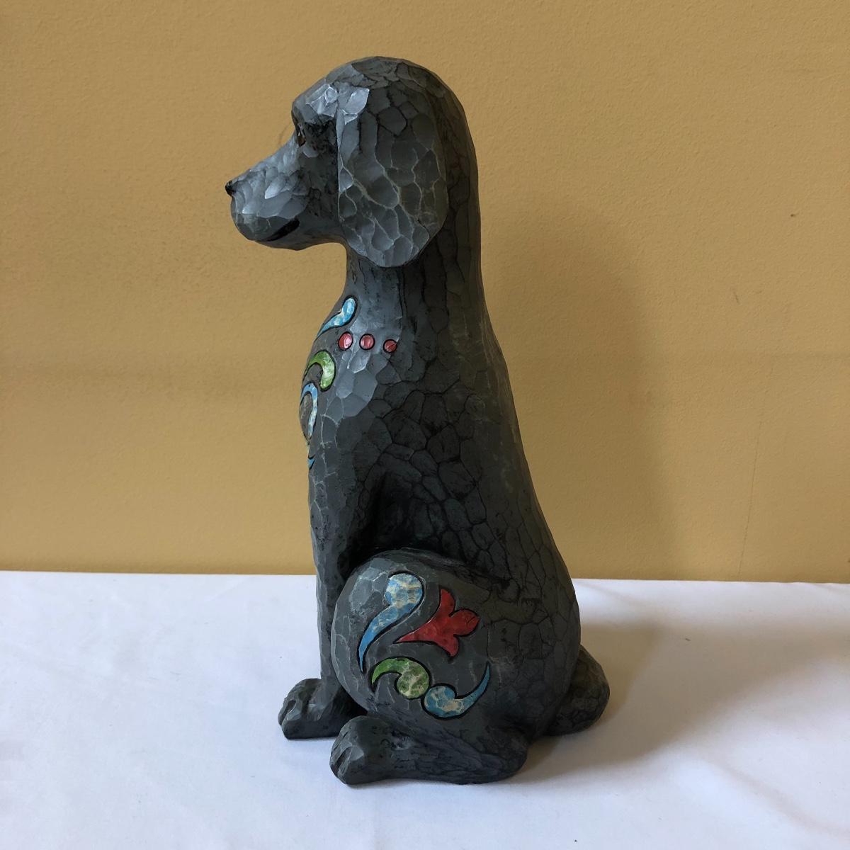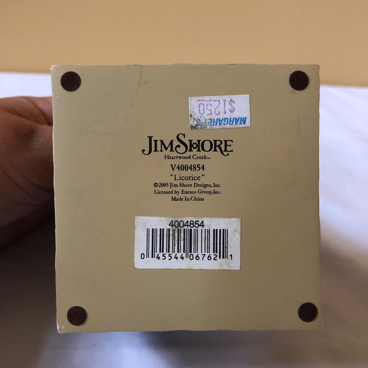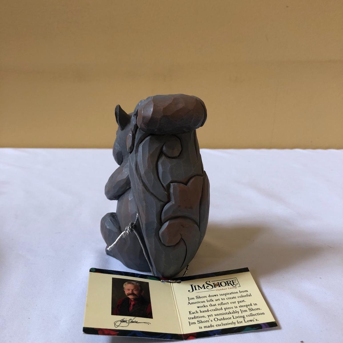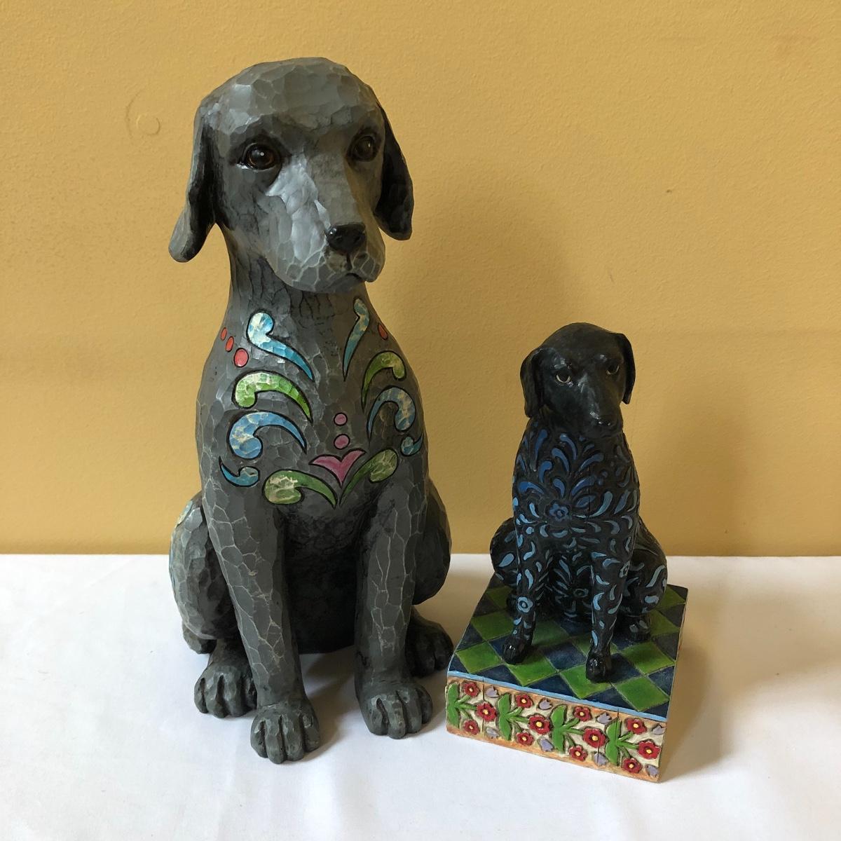 Eight Jim Shore figurines make up this collection. “Cosmo” a 10.5 inch tall gray dog, “Licorice” a black dog on a square base, two “Light up Heartwood Creek” light houses, one of which needs its battery changed, “A Bit Squirrelly” gray squirrel, a small angel ornament, an Easter egg with two rabbits, and a “Heartwood Creek” Santa ornament are the items in this lot. The title of the Easter egg figurine is currently covered by a price tag. Jim Shore collectibles are cute and colorful and are lovely additions to any display space!