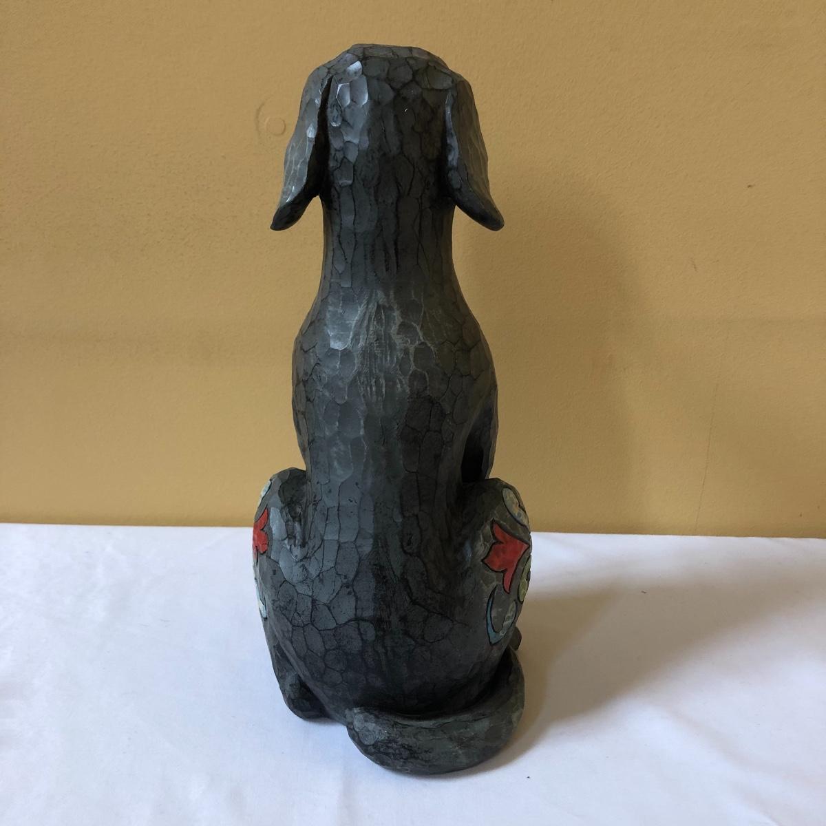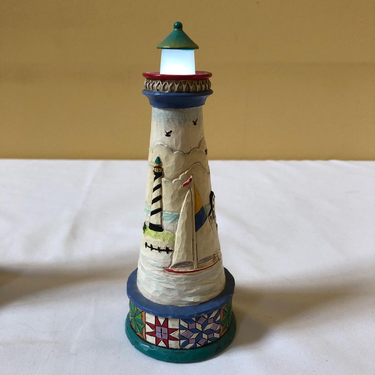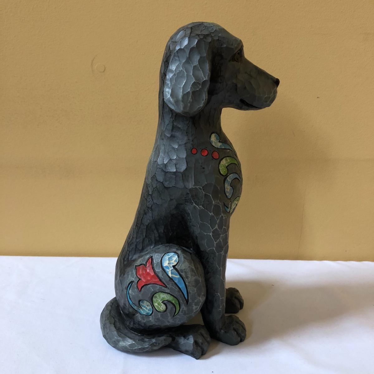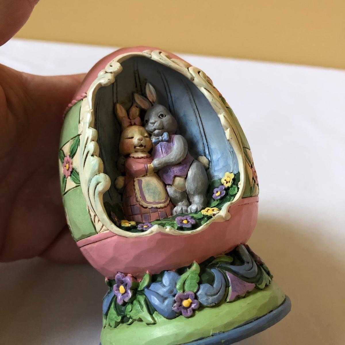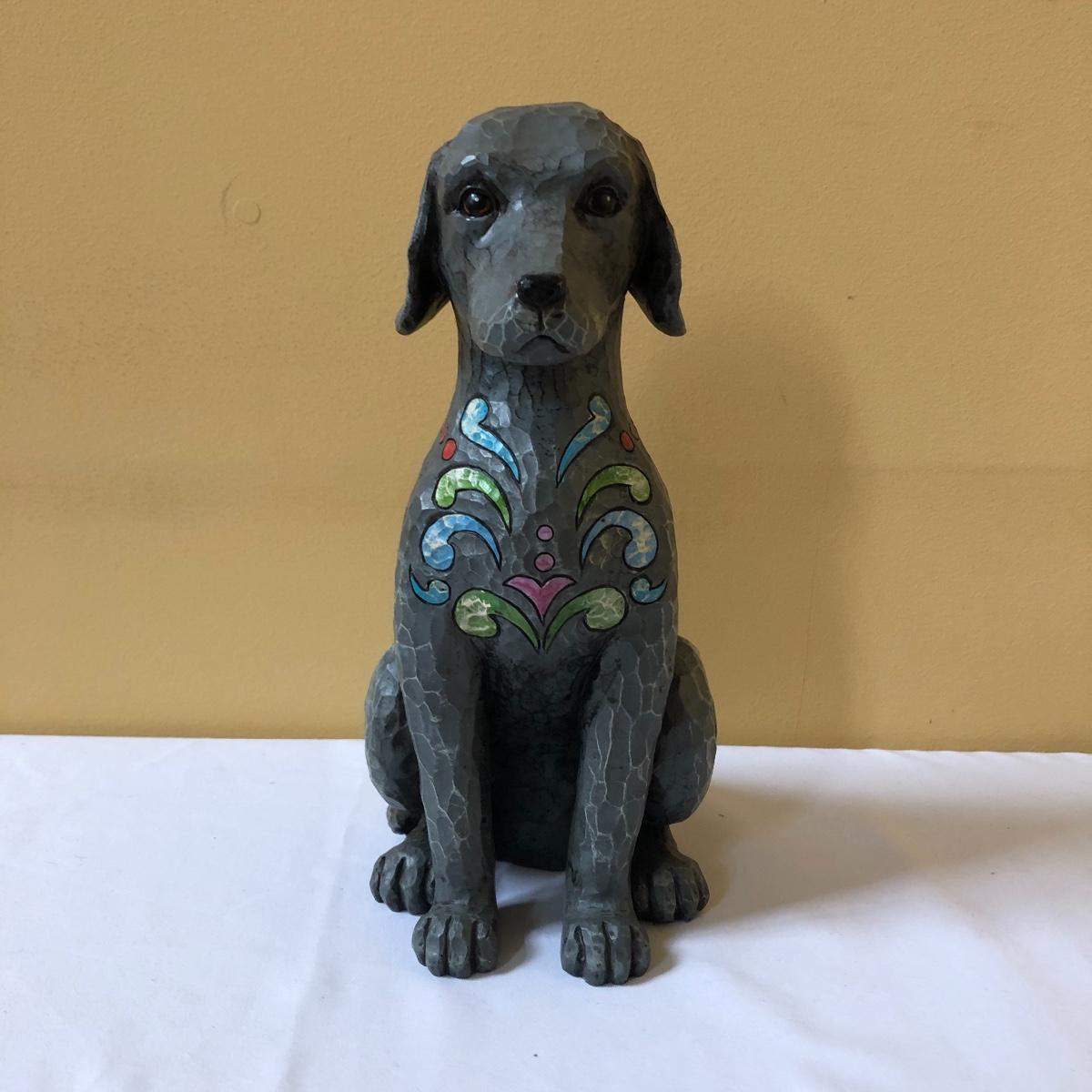 Eight Jim Shore figurines make up this collection. “Cosmo” a 10.5 inch tall gray dog, “Licorice” a black dog on a square base, two “Light up Heartwood Creek” light houses, one of which needs its battery changed, “A Bit Squirrelly” gray squirrel, a small angel ornament, an Easter egg with two rabbits, and a “Heartwood Creek” Santa ornament are the items in this lot. The title of the Easter egg figurine is currently covered by a price tag. Jim Shore collectibles are cute and colorful and are lovely additions to any display space!