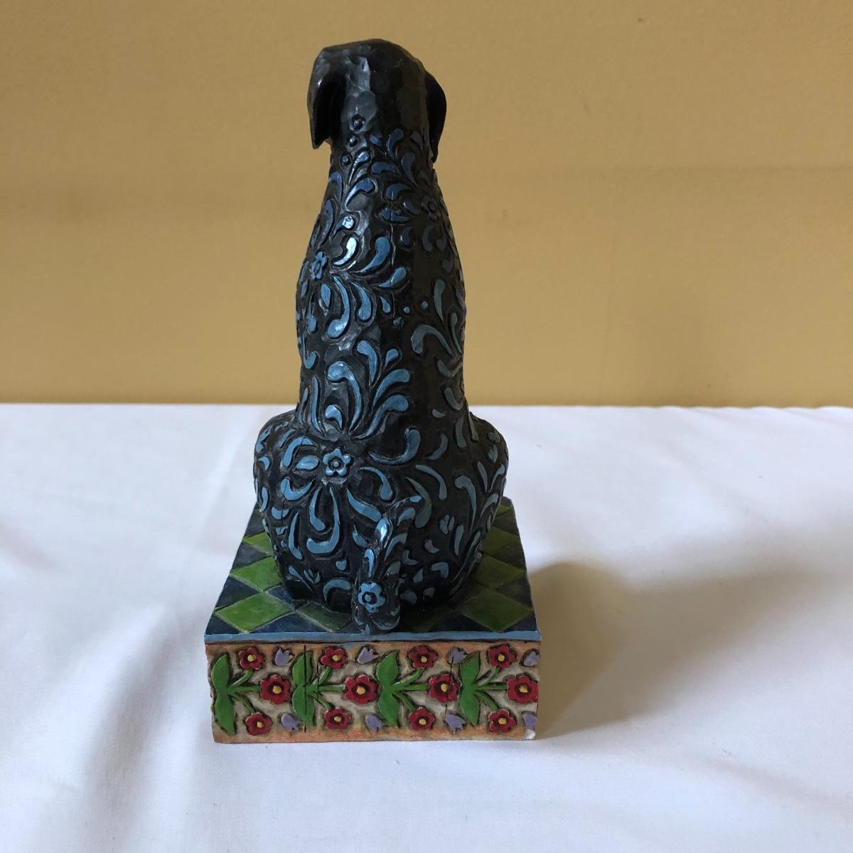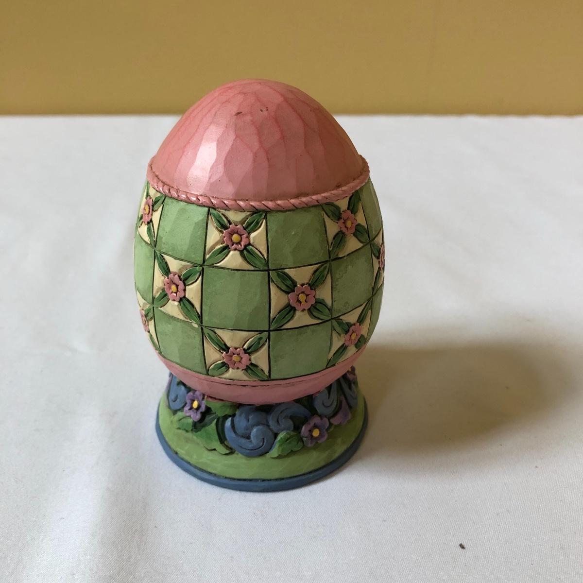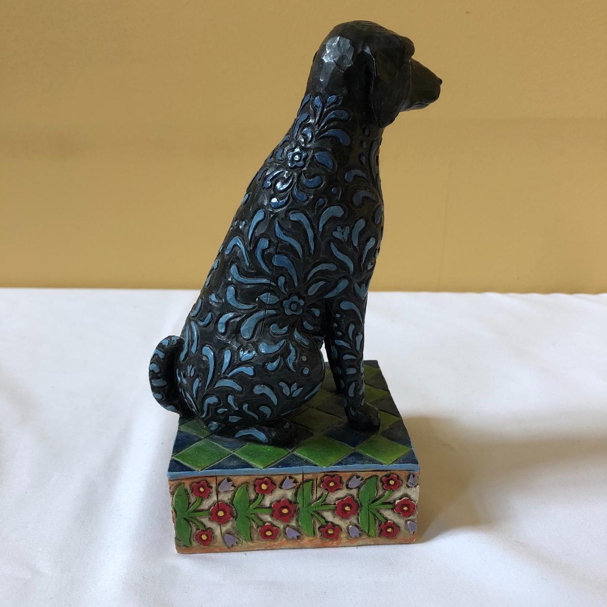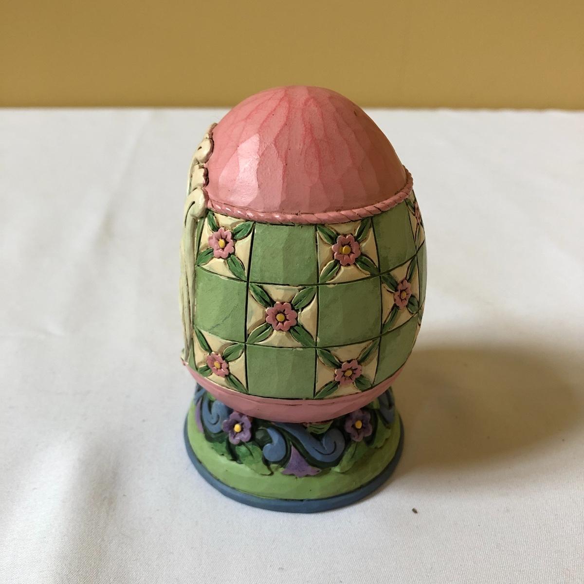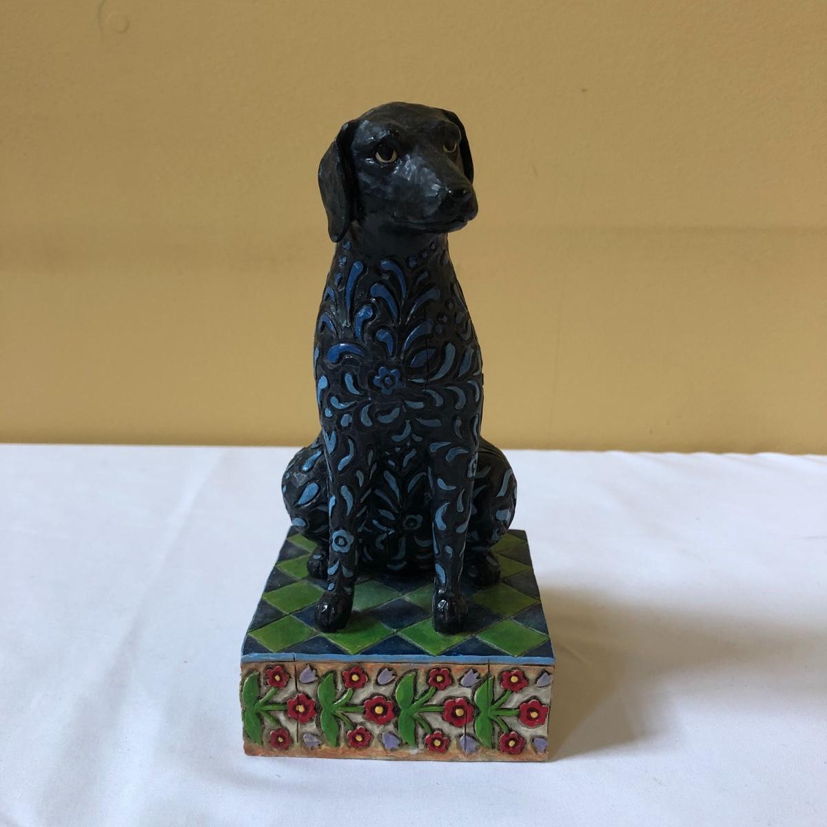 Eight Jim Shore figurines make up this collection. “Cosmo” a 10.5 inch tall gray dog, “Licorice” a black dog on a square base, two “Light up Heartwood Creek” light houses, one of which needs its battery changed, “A Bit Squirrelly” gray squirrel, a small angel ornament, an Easter egg with two rabbits, and a “Heartwood Creek” Santa ornament are the items in this lot. The title of the Easter egg figurine is currently covered by a price tag. Jim Shore collectibles are cute and colorful and are lovely additions to any display space!
