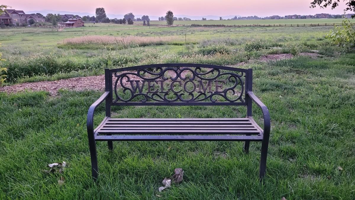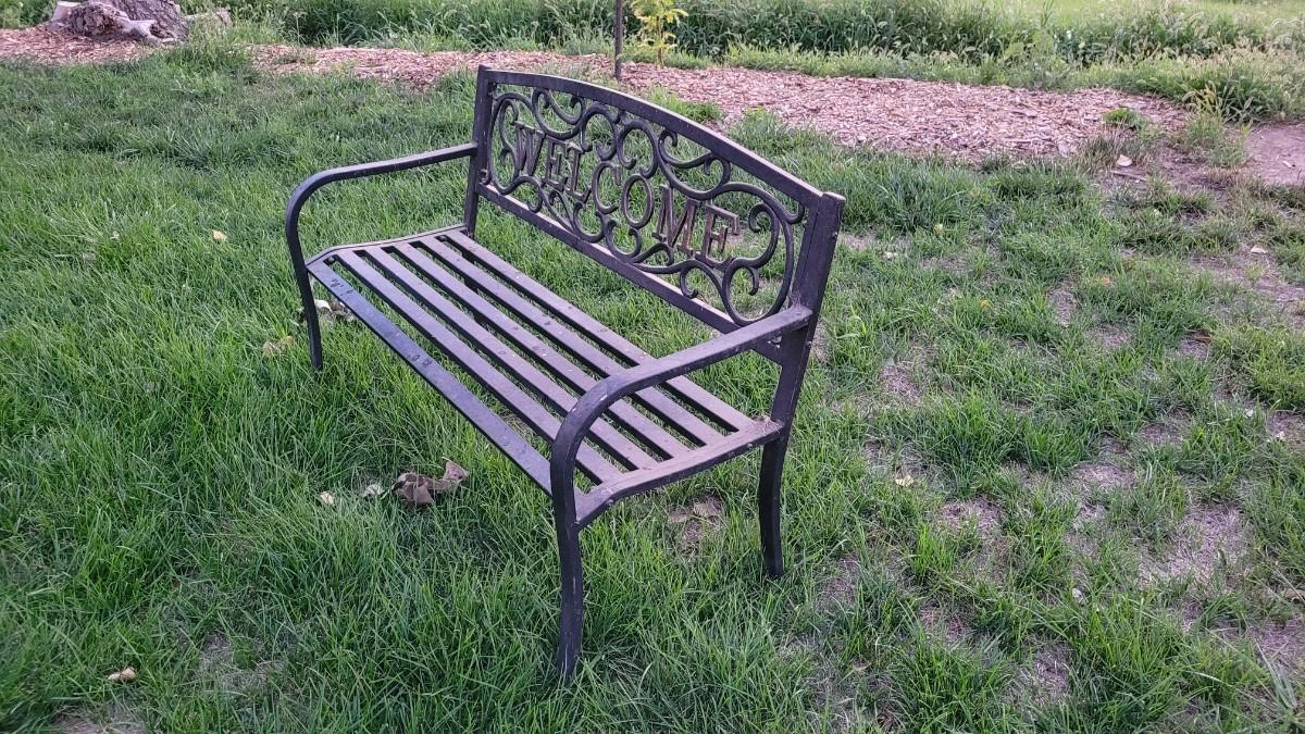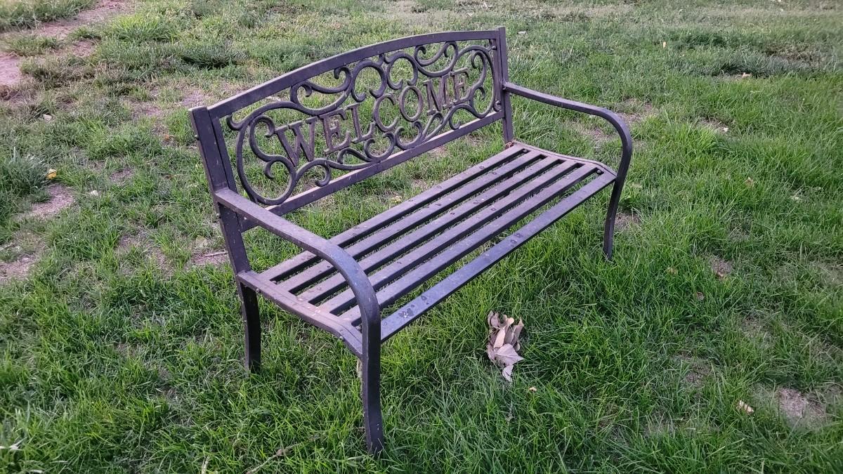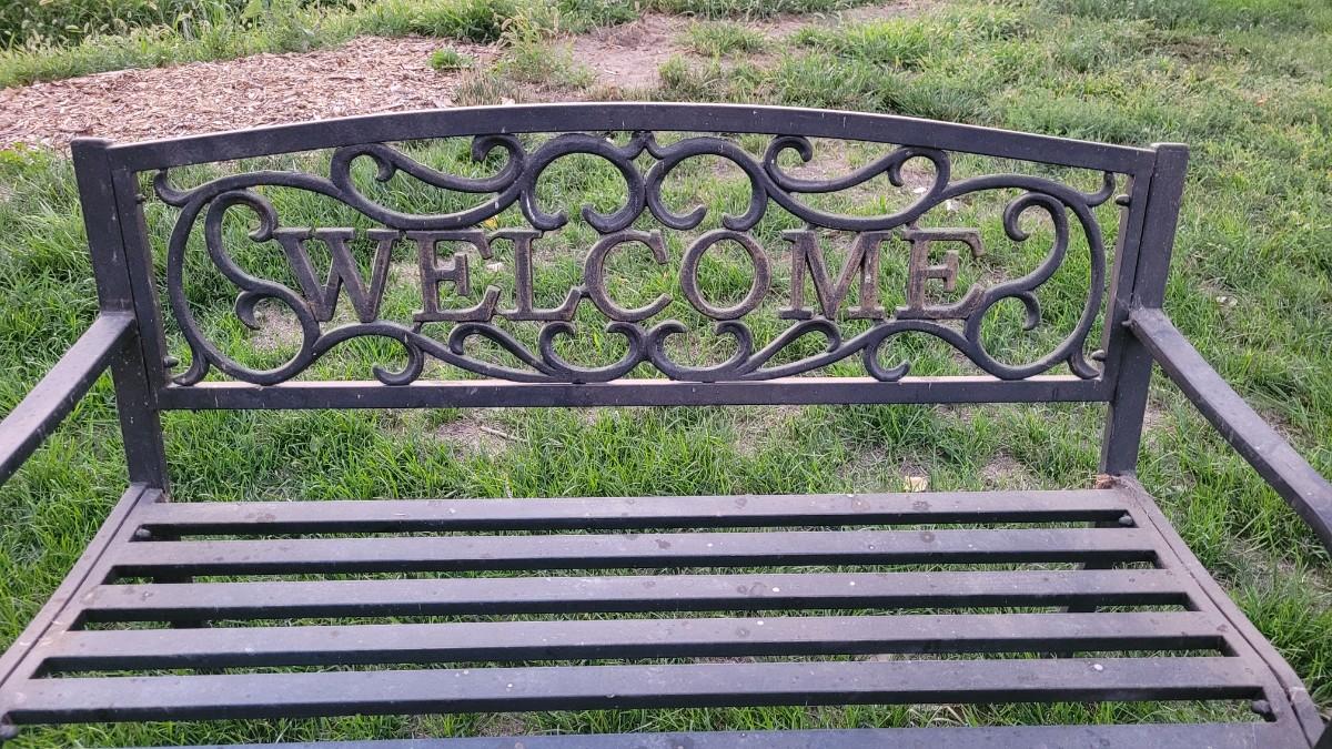 Lot 259: Vintage WELCOME Outdoor Metal Bench
