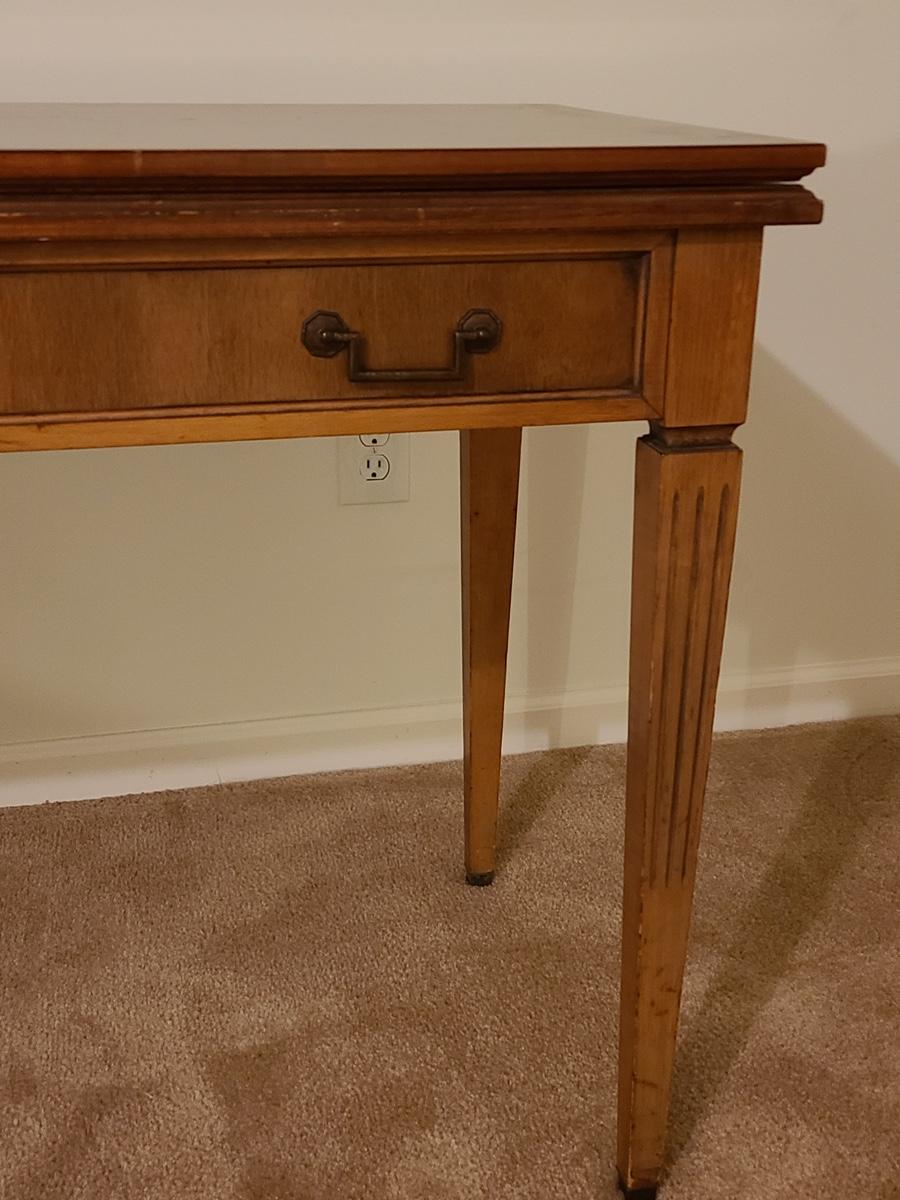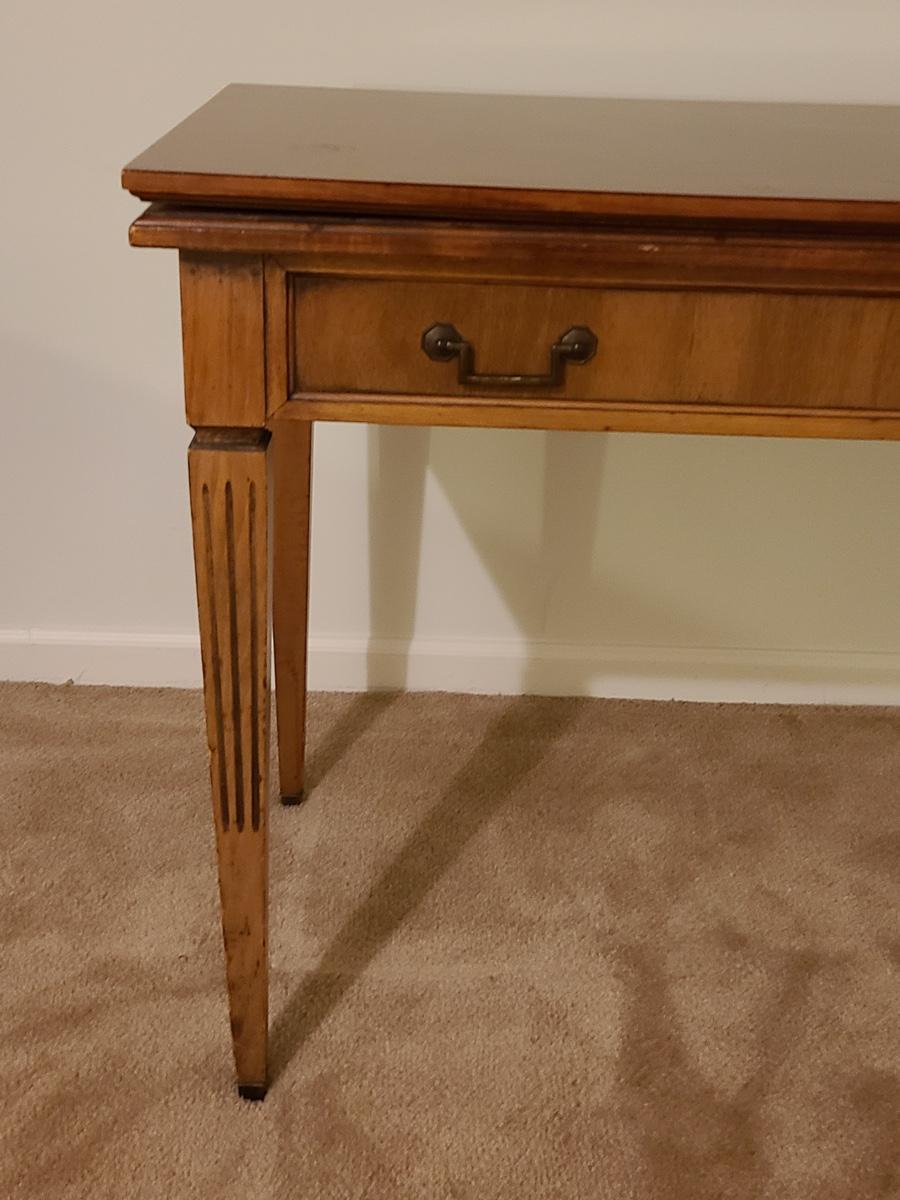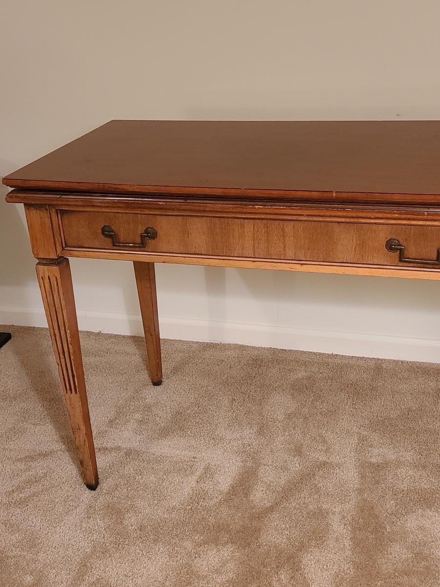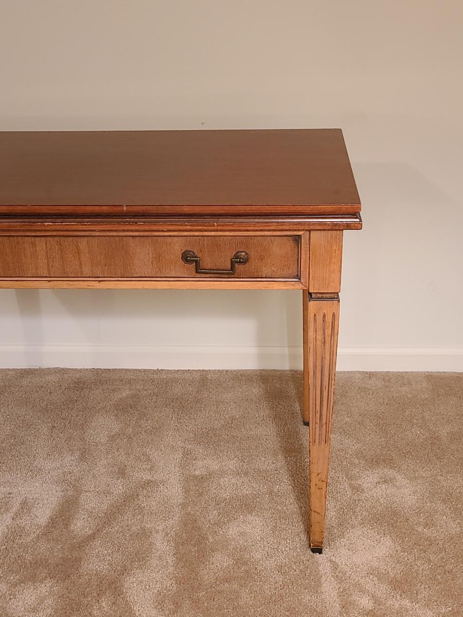 This piece is gorgeous and would look excellent in any room. It is multi-functional as a desk or table. We do not have leaves for this piece. It extends much further, but does not have inserts. Please see all pictures as they are the best representation of the items. The pictures show condition, measurements if taken, and what is included in the lot. Due to the large amount that we photograph and the time frame, we are not always able to take measurements. All items unless noted, are pre-owned and have been used. If you purchased furniture, you must bring help. We do not allow one person to carry large furniture out on their own. Bring help, tools and a truck for the safety of our client’s homes, and your personal safety. Company policy. Thank you.