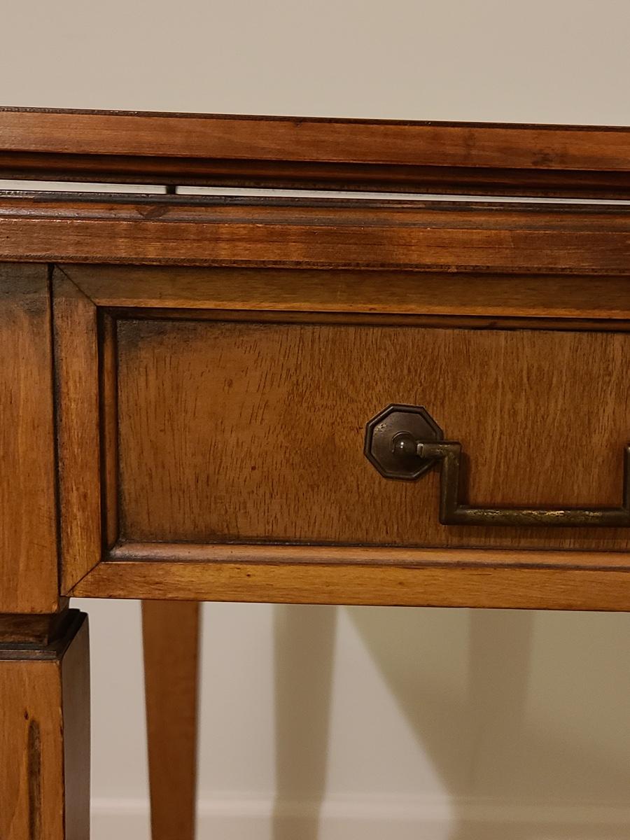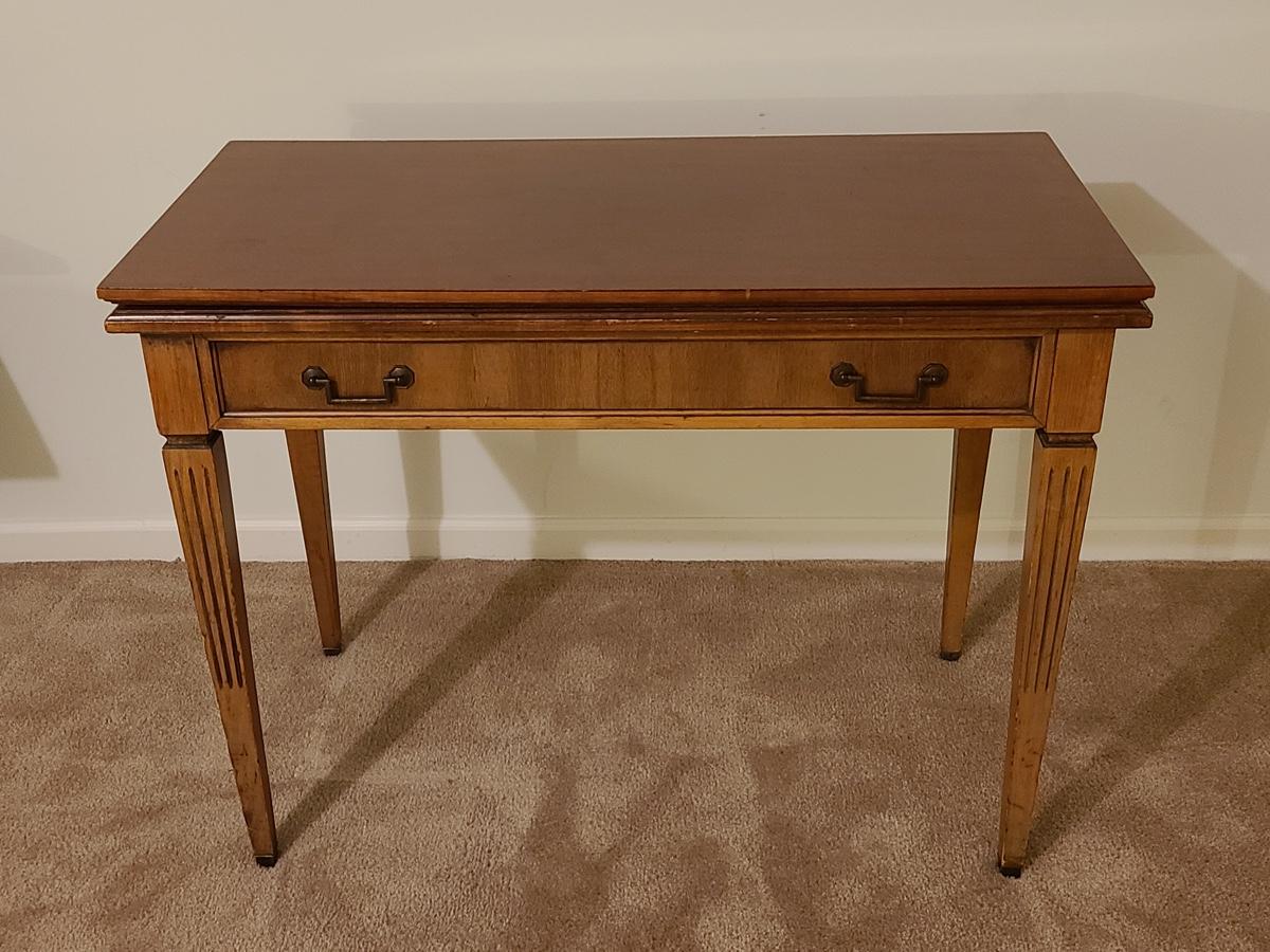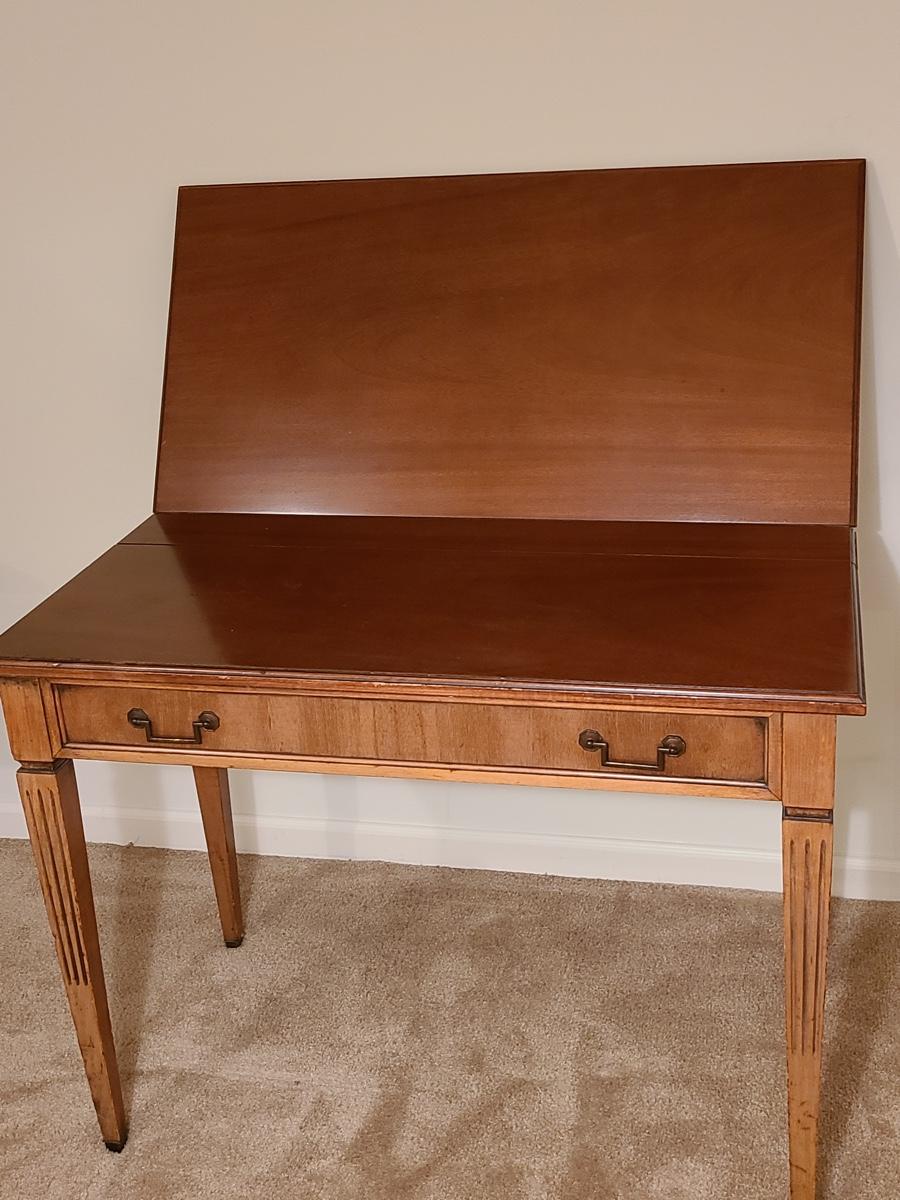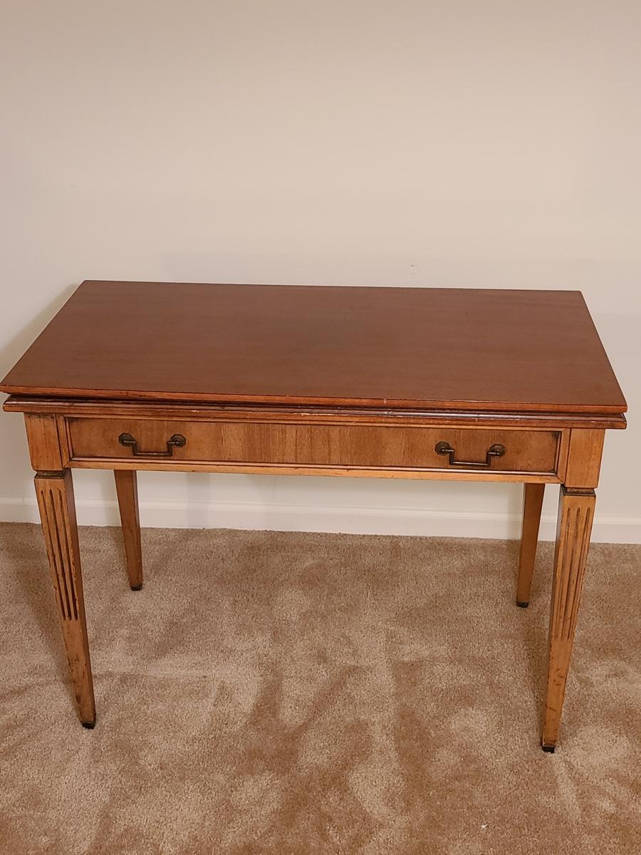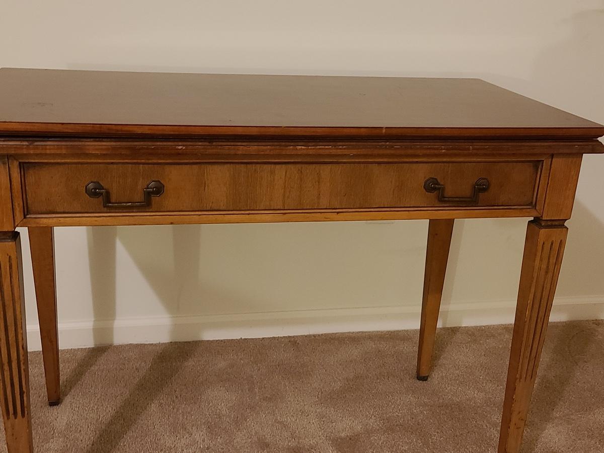 This piece is gorgeous and would look excellent in any room. It is multi-functional as a desk or table. We do not have leaves for this piece. It extends much further, but does not have inserts. Please see all pictures as they are the best representation of the items. The pictures show condition, measurements if taken, and what is included in the lot. Due to the large amount that we photograph and the time frame, we are not always able to take measurements. All items unless noted, are pre-owned and have been used. If you purchased furniture, you must bring help. We do not allow one person to carry large furniture out on their own. Bring help, tools and a truck for the safety of our client’s homes, and your personal safety. Company policy. Thank you.