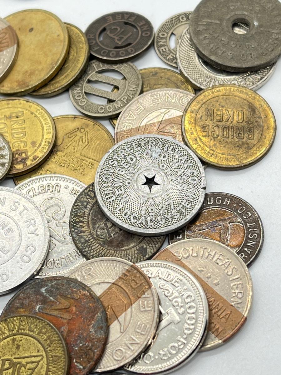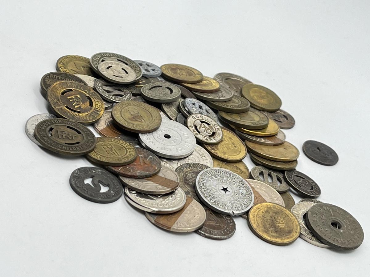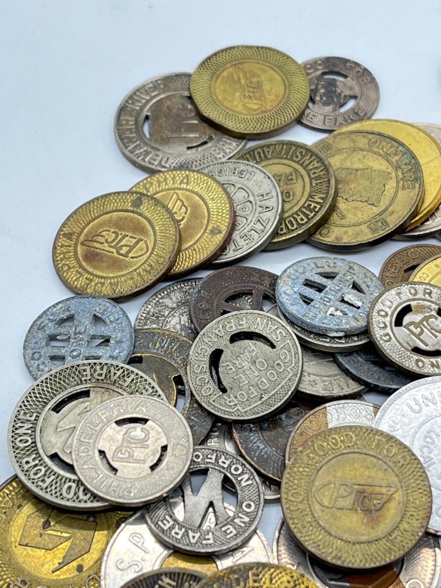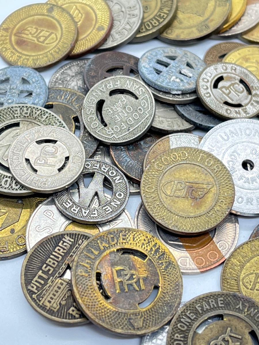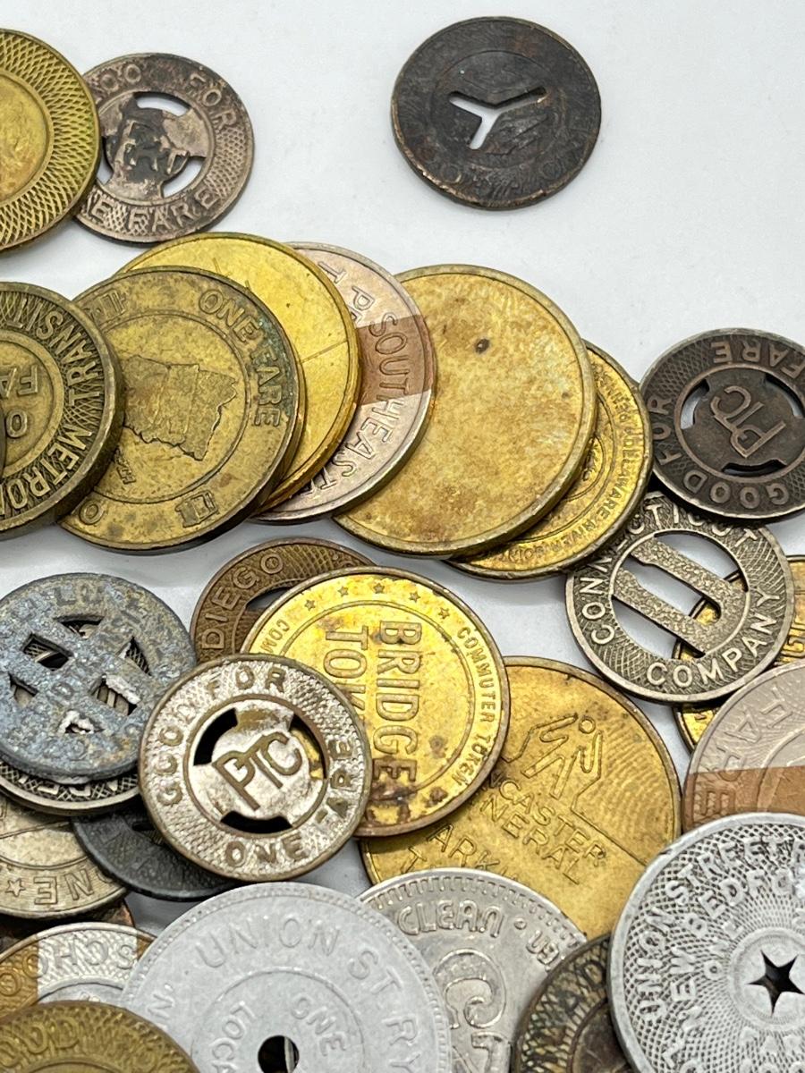 LOT 259: Big Collection of Vintage Transit Tokens - Train, Bus, Parking, Tolls