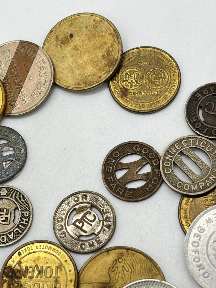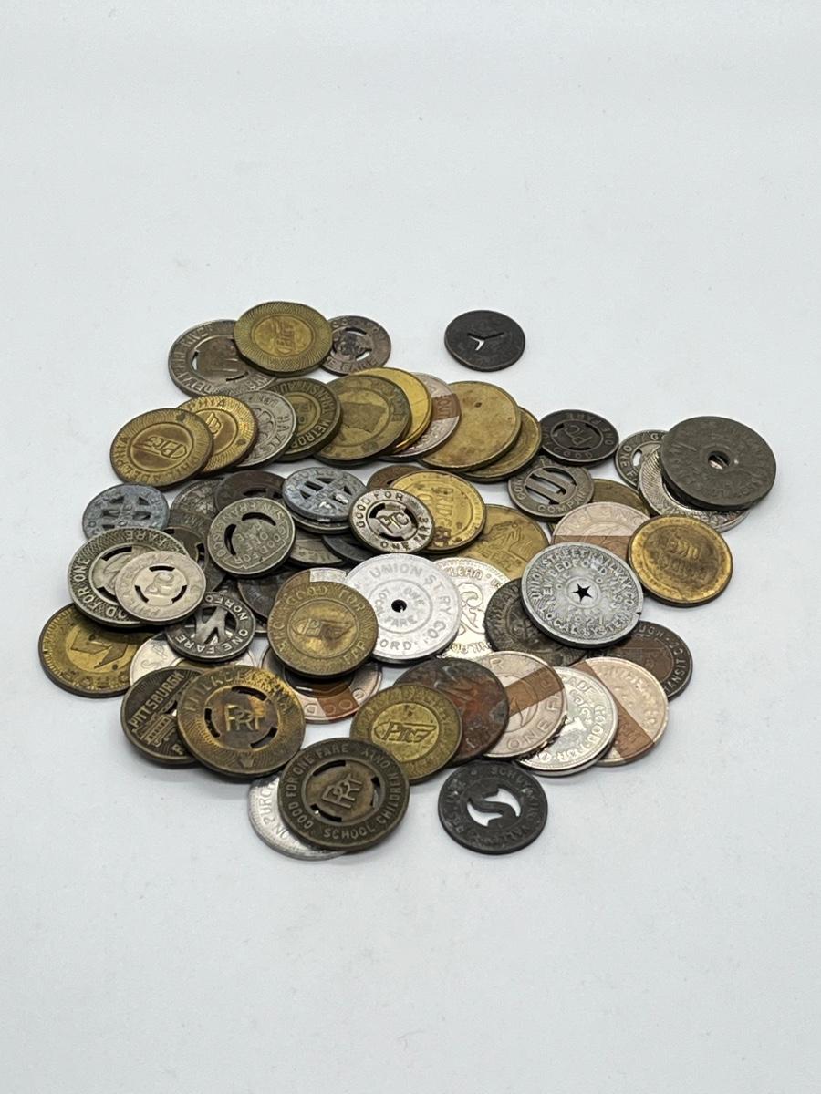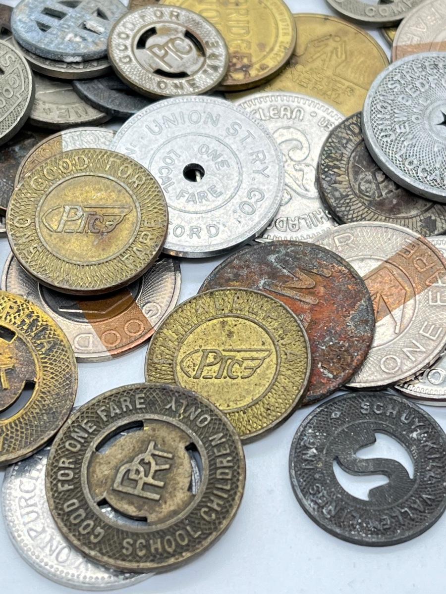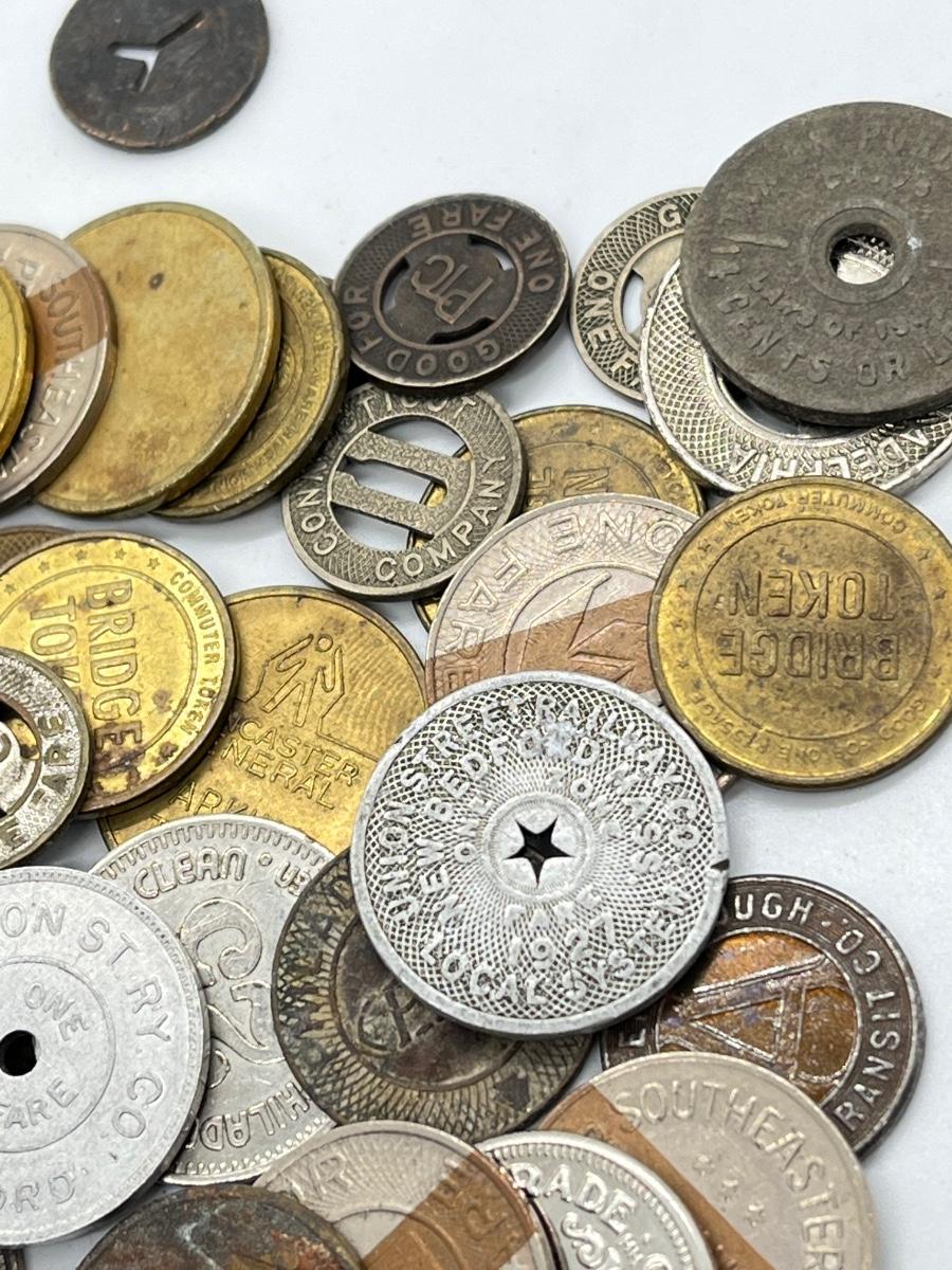 LOT 259: Big Collection of Vintage Transit Tokens - Train, Bus, Parking, Tolls