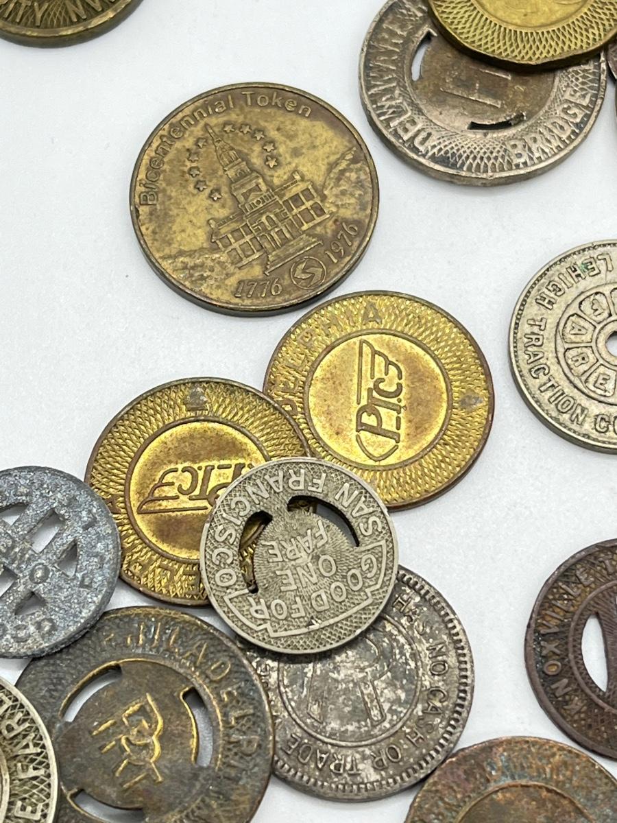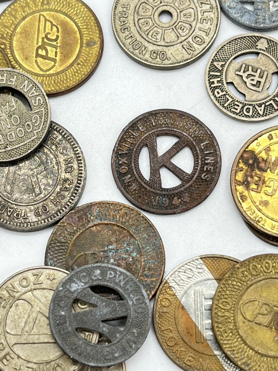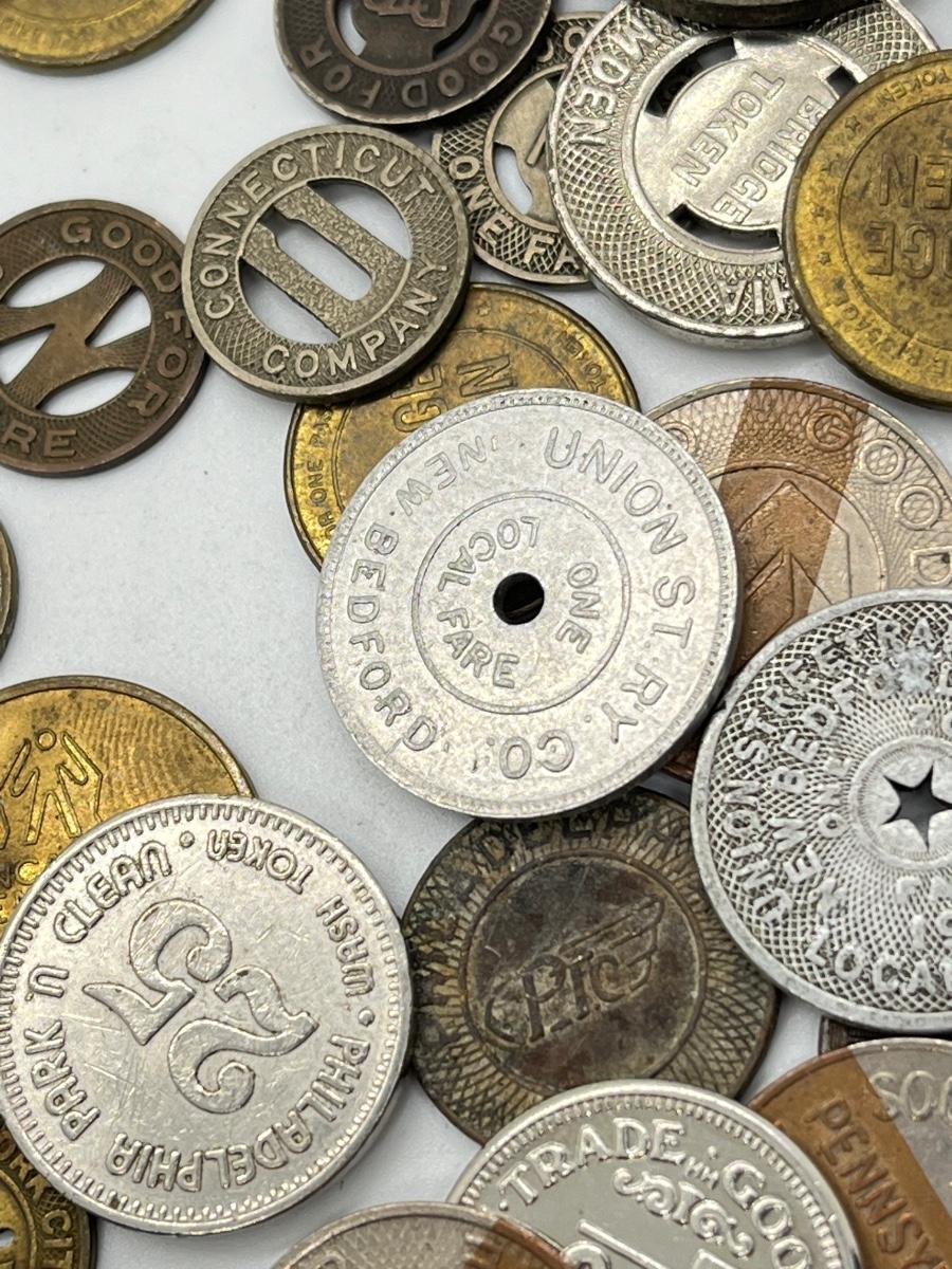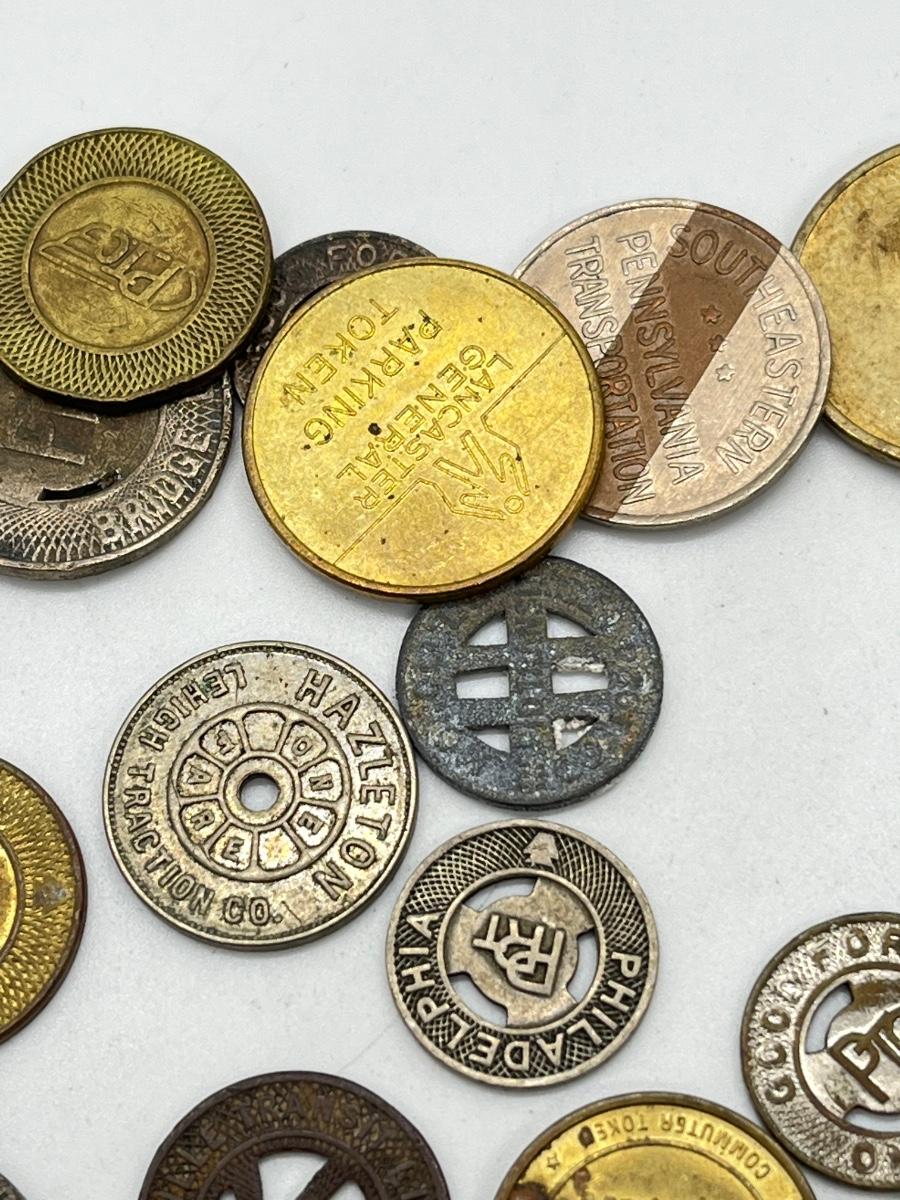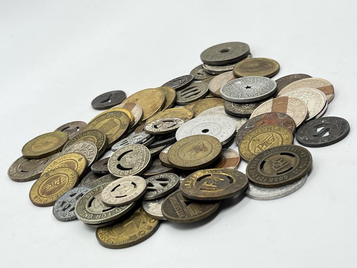 LOT 259: Big Collection of Vintage Transit Tokens - Train, Bus, Parking, Tolls