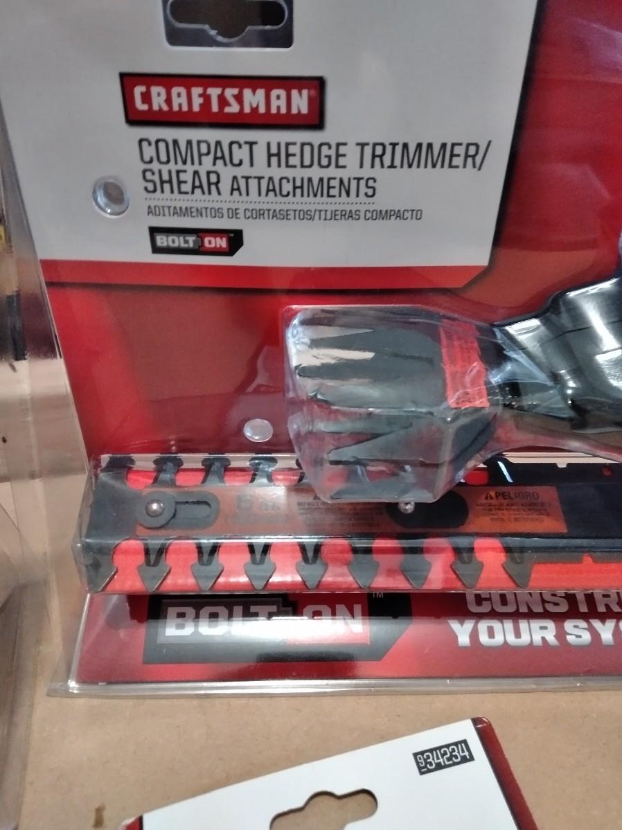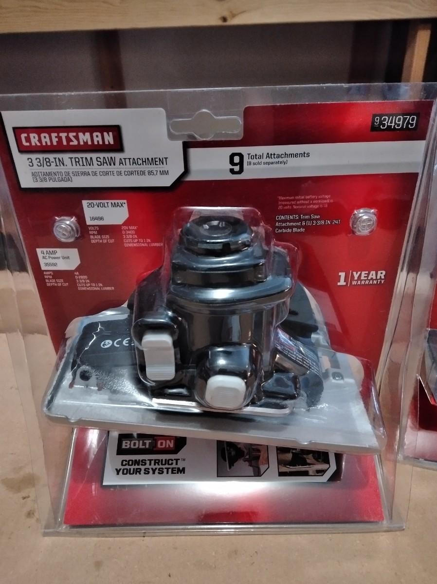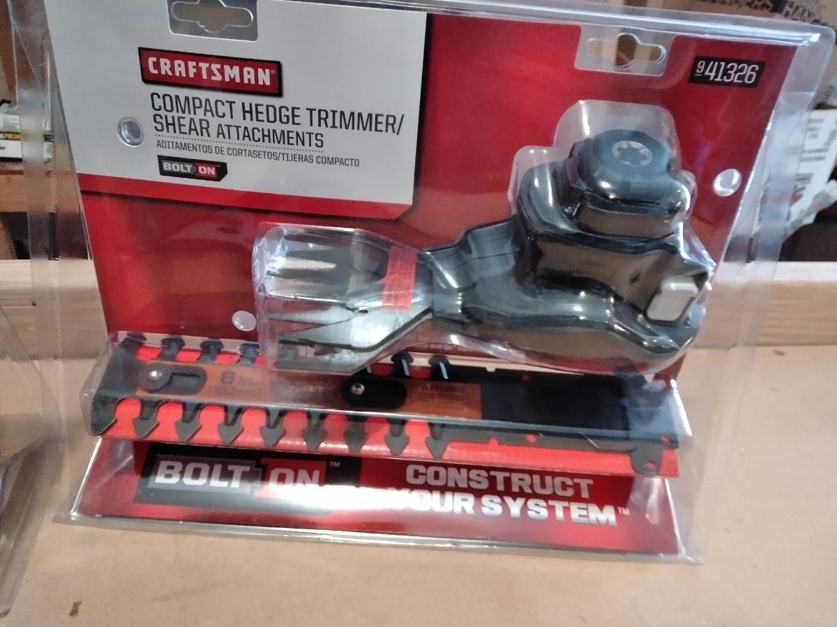 CRAFTSMAN DRILL ATTACHMENTS INCLUDING COMPACT HEDGE TRIMMER/ SHEAR, 3 3/8" TRIM SAW, AND A CARBIDE TIPPED SAW BLADE..