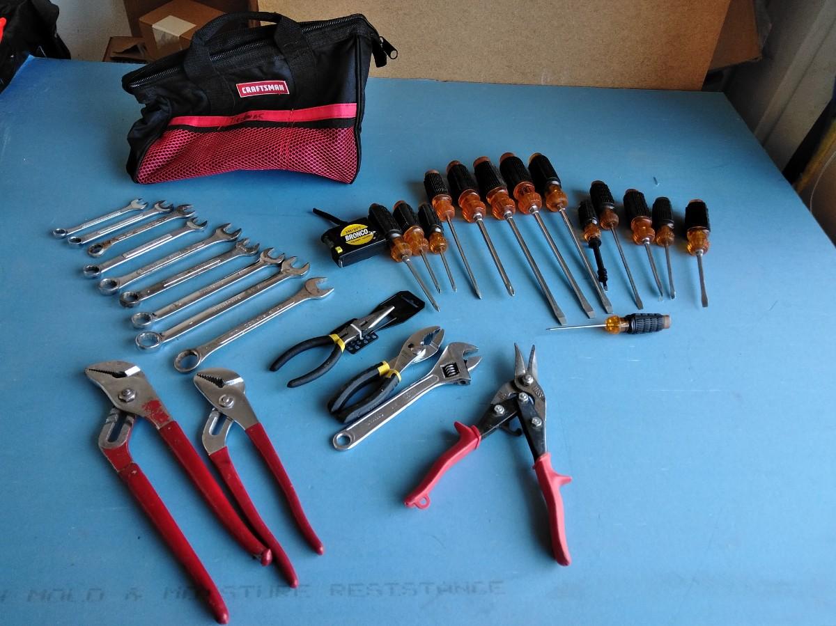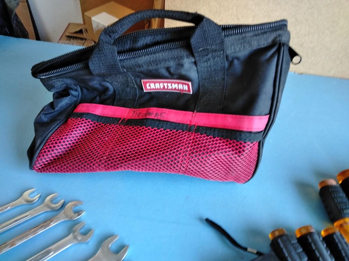 CRAFTSMAN TOOLBAG WITH ASSORTMENT OF HANDTOOLS, WRENCHES, SCREWDRIVERS, PLIERS AND MORE