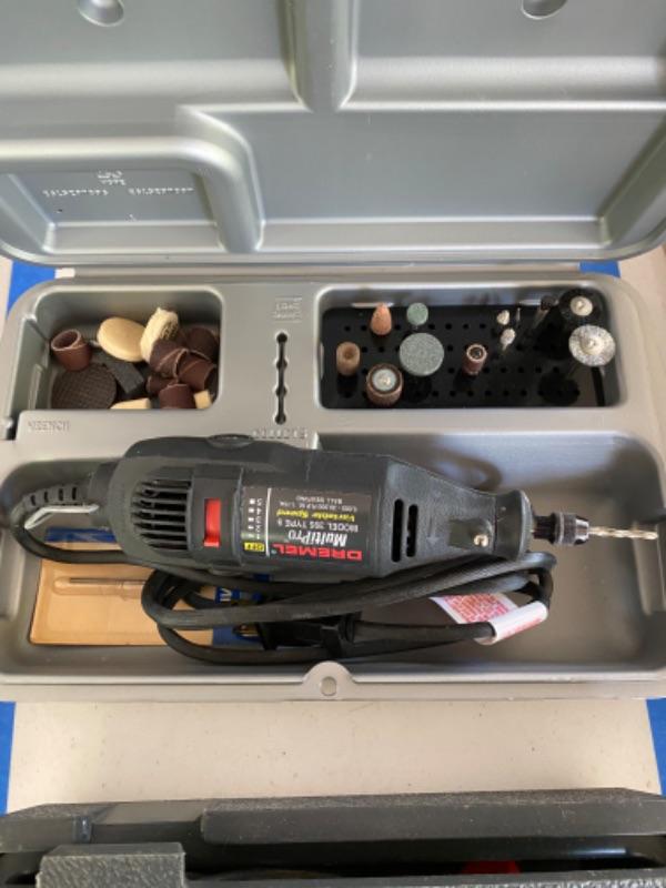 Dremel variable speed moto-tool model 380-5 with attachments. Dremel multipro variable speed model 395 type 5 with attachments Dremel moto-sander