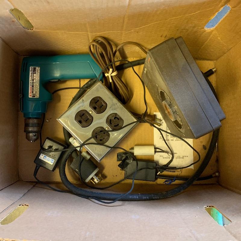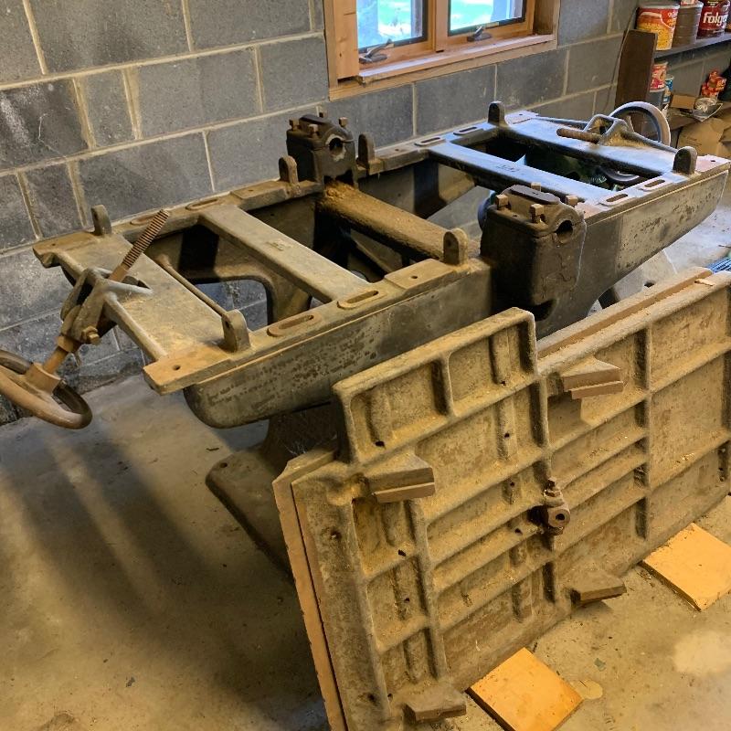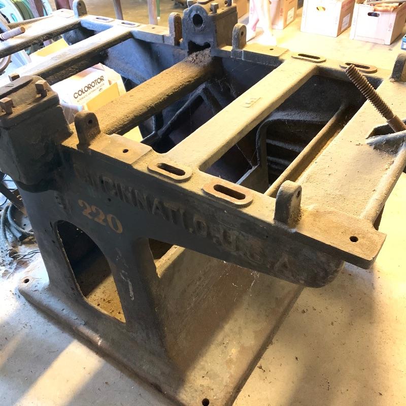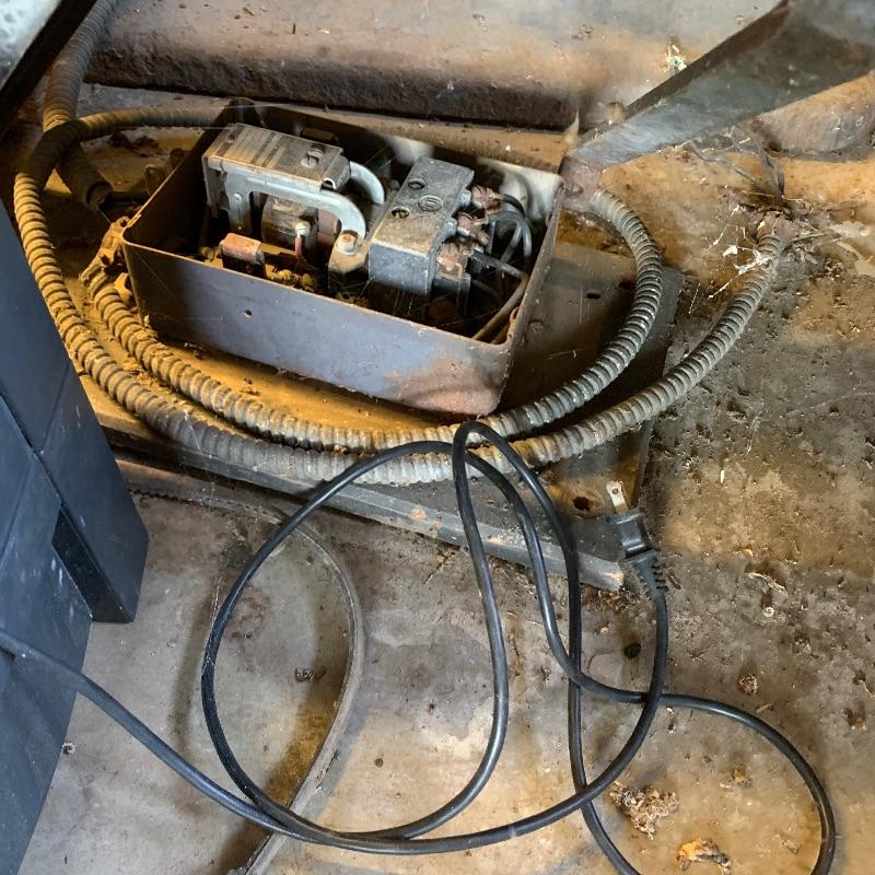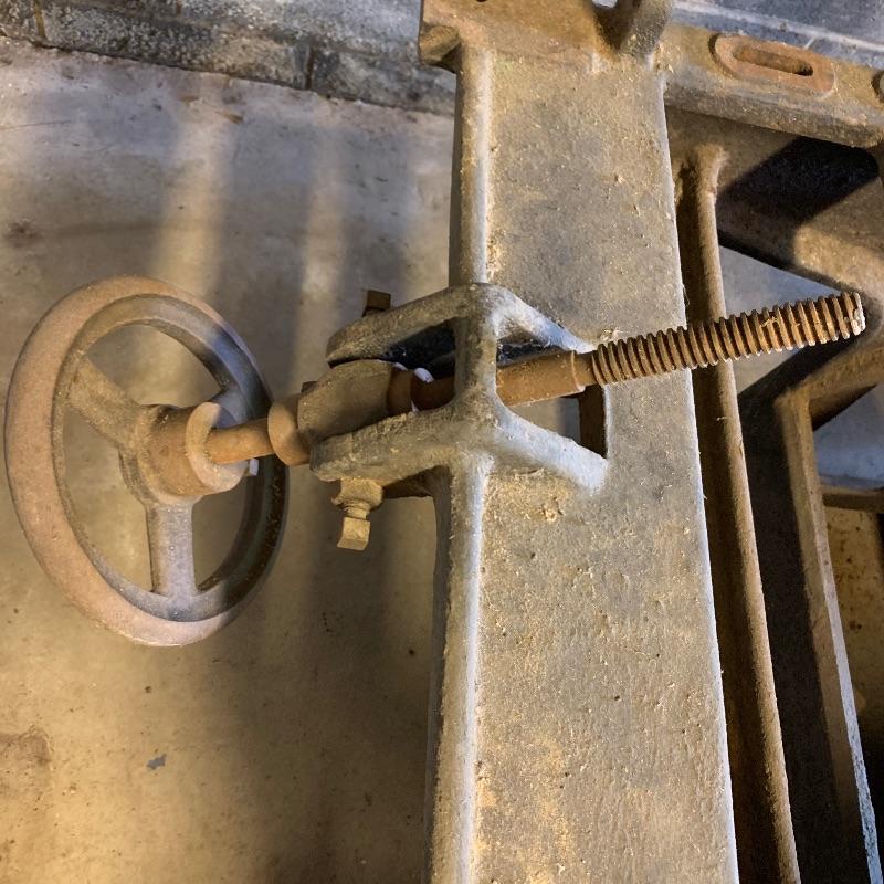 Here you’ll find a heavy duty vintage planer by J.A. Fay & Egan. We are not sure all pieces are here, but we’ve included a photo of what it should look like that we found on internet, this is the last photo shown. The tip is laying next to it in our photos as it is too heavy to move. Good news is this is right by the door and driveway so you don’t have far to go. You MUST bring help to load this. No exceptions. If you are looking to melt it for the metal value, your in luck. We’ve included a couple boxes of scrap metal and old saw blades that you can also melt. All items must be taken with the lot. No shipping.