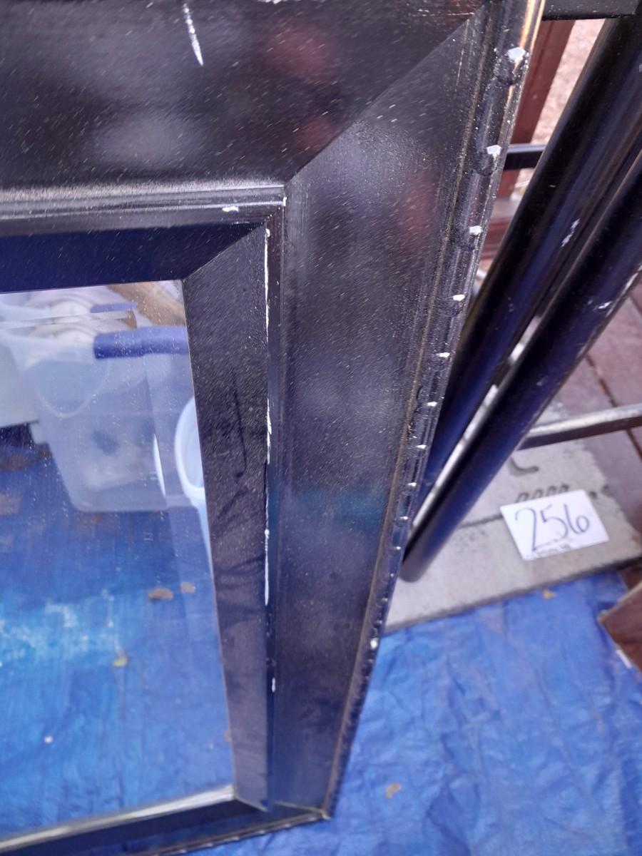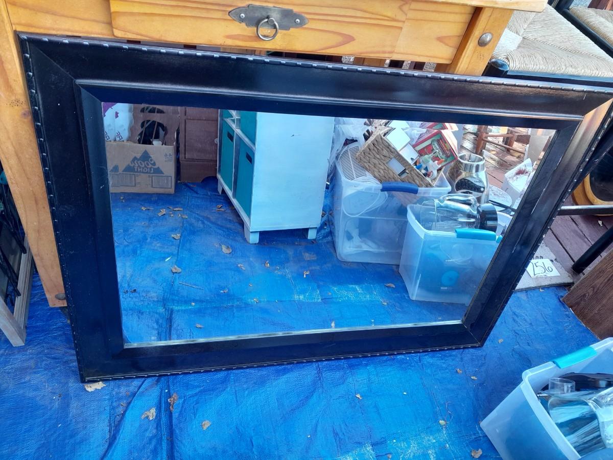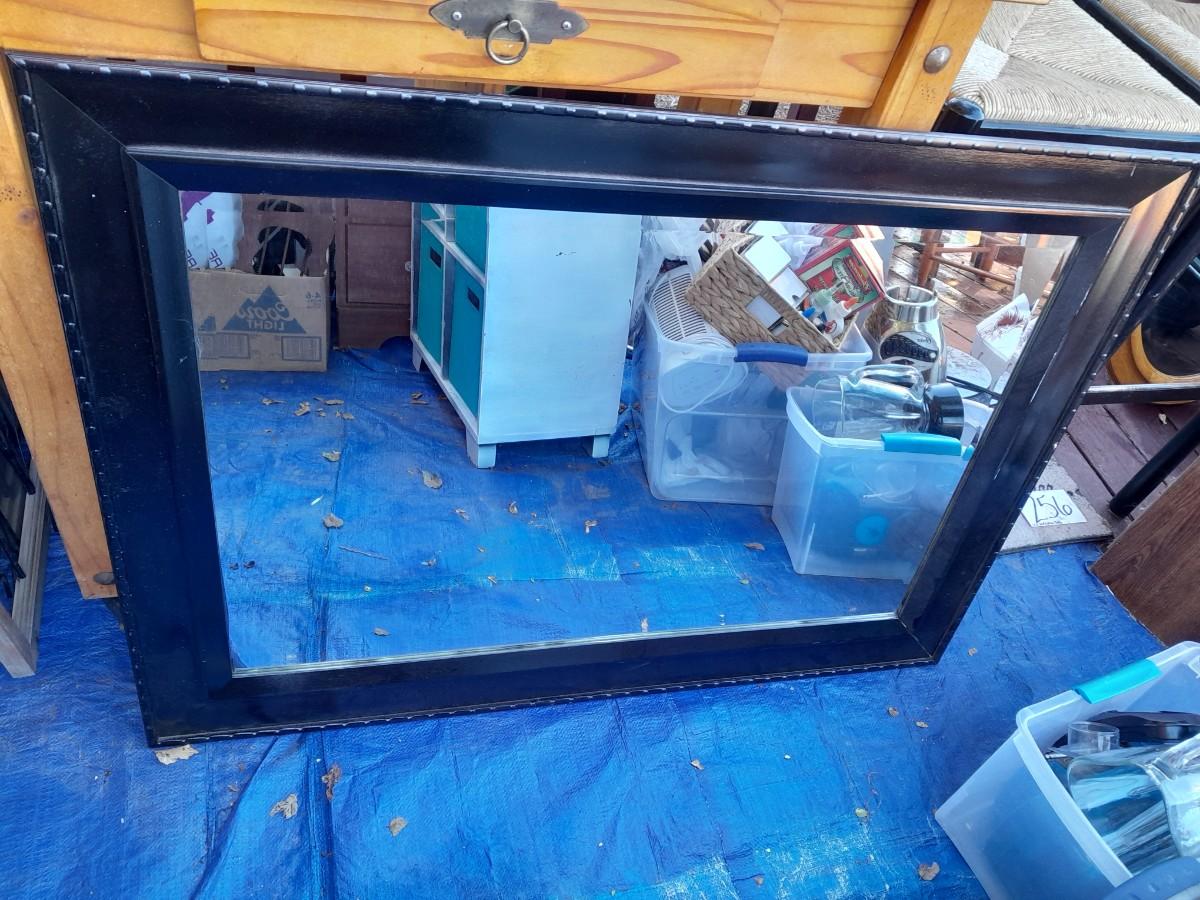 LOT 259  LARGE WOOD FRAMED WALL MIRROR