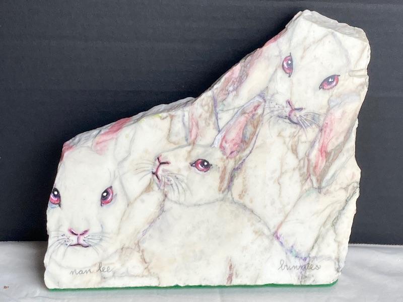 Lot #259 Nan Lee Painting On Stone Bunnies