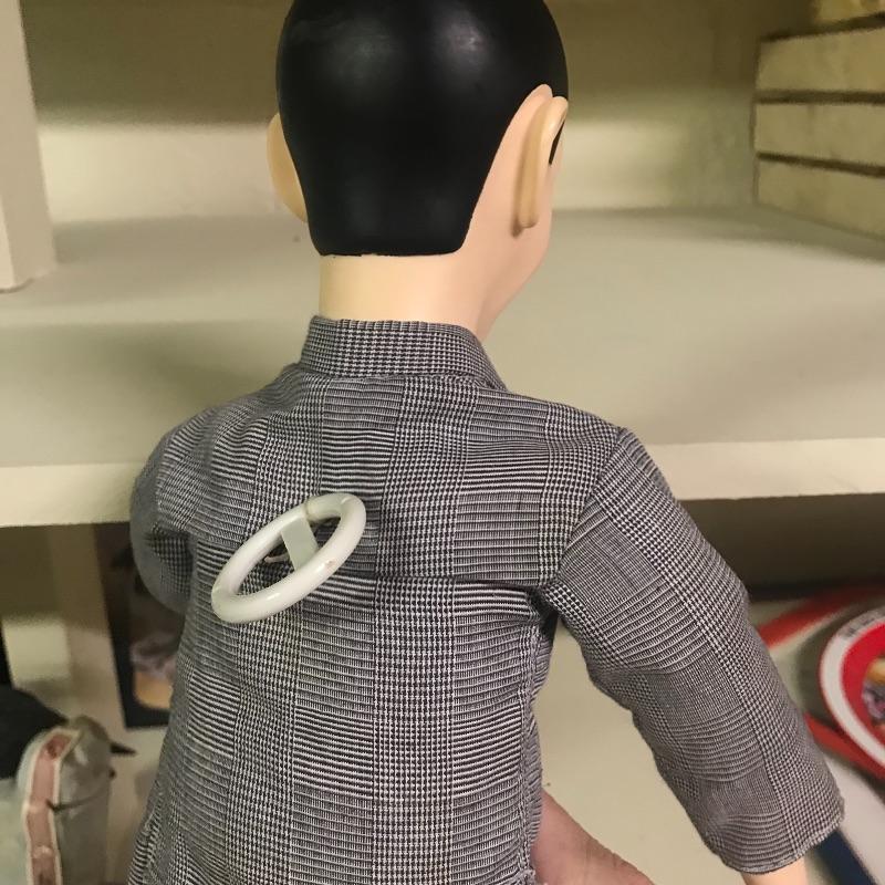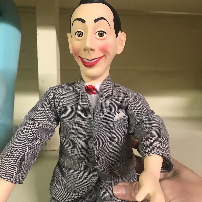 1987 Pee Wee Herman Doll and his blue chair are in good condition but the mechanics aren't working as well. Although when you pull the cord on Pee Wee’s back he talks in fast forward. The chair is called “Chairy” which is a puppet that is supposed to move his arms but the switch no longer works. Piece stands about 14” tall. Shipping available.