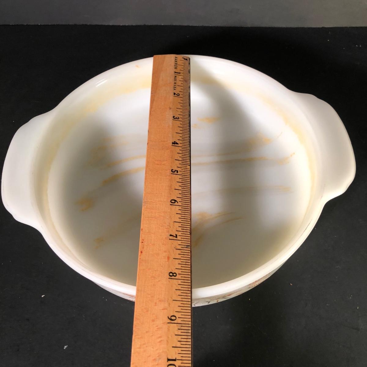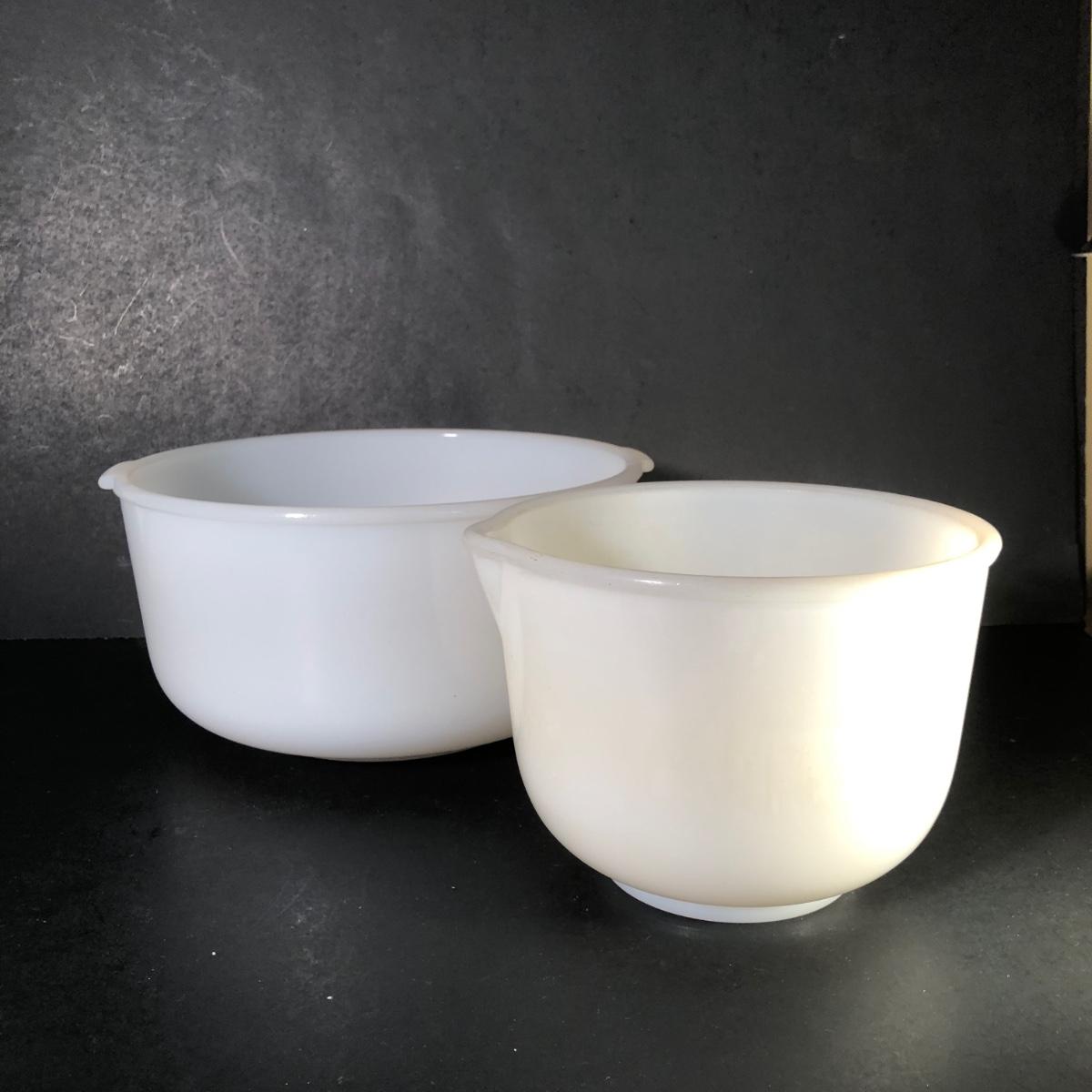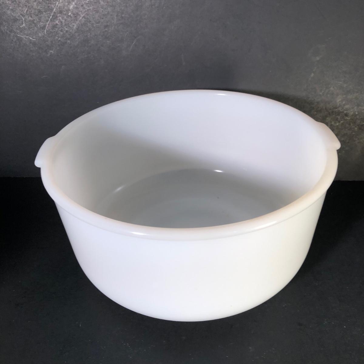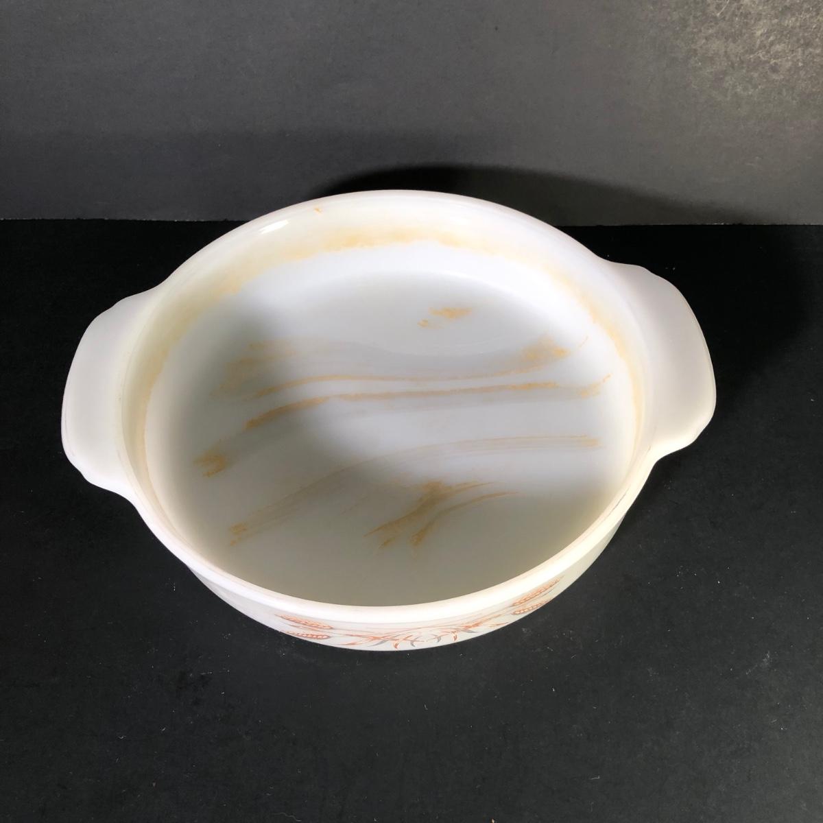LOT 259F: Vintage Milk Glass - Glasbake for Sunbeam Mixing Bowls, Anchor Hocking Fireking Wheat Circular Baking Dish & More