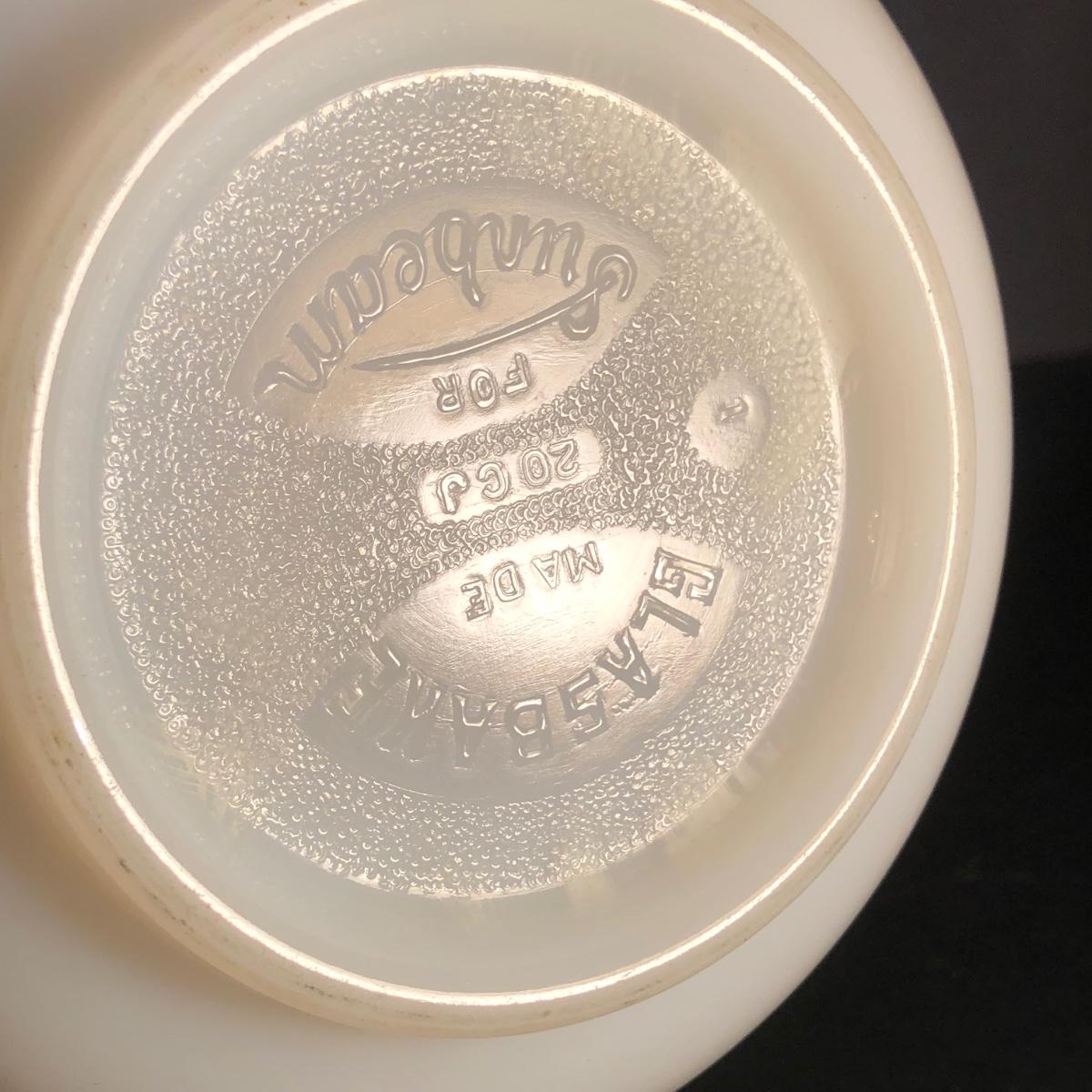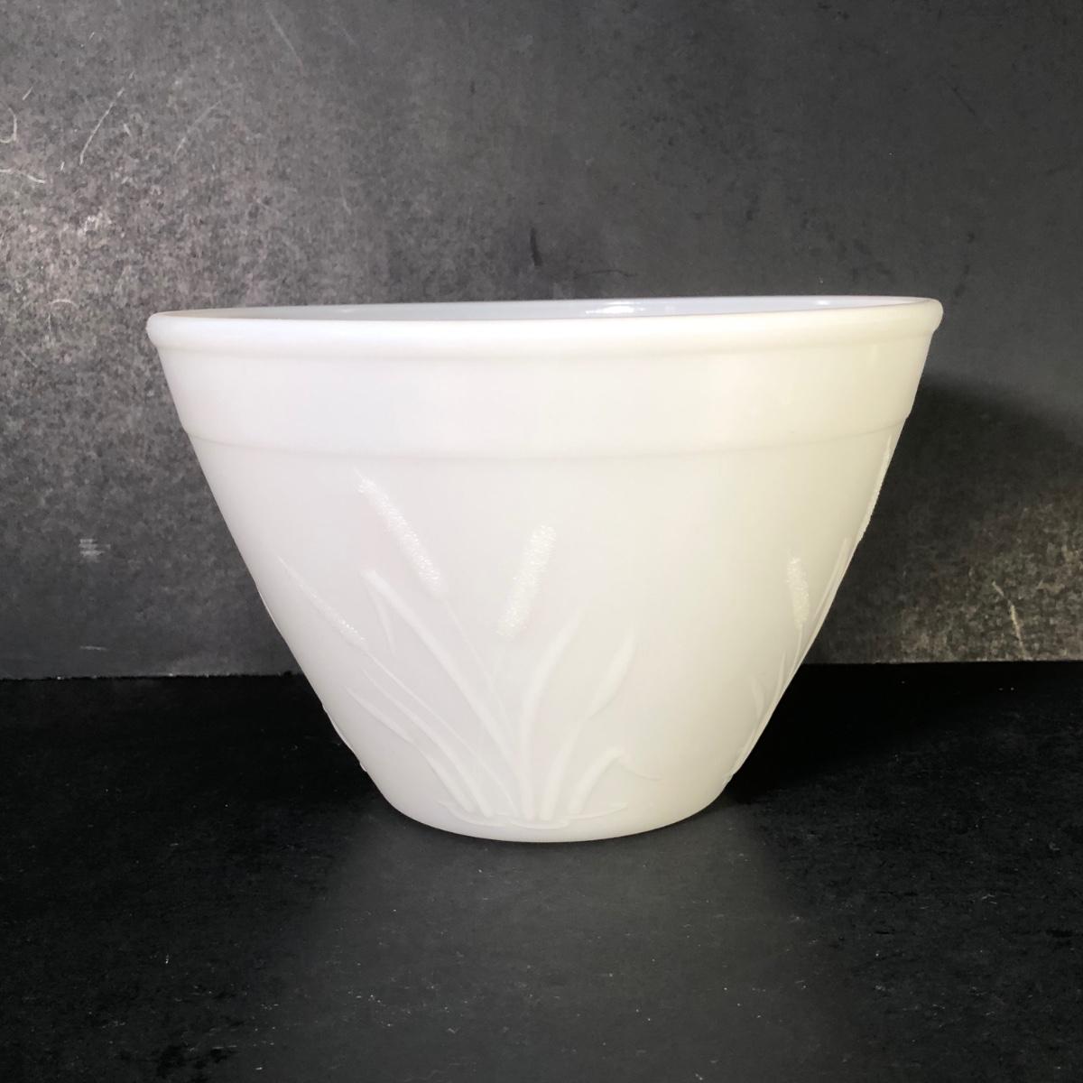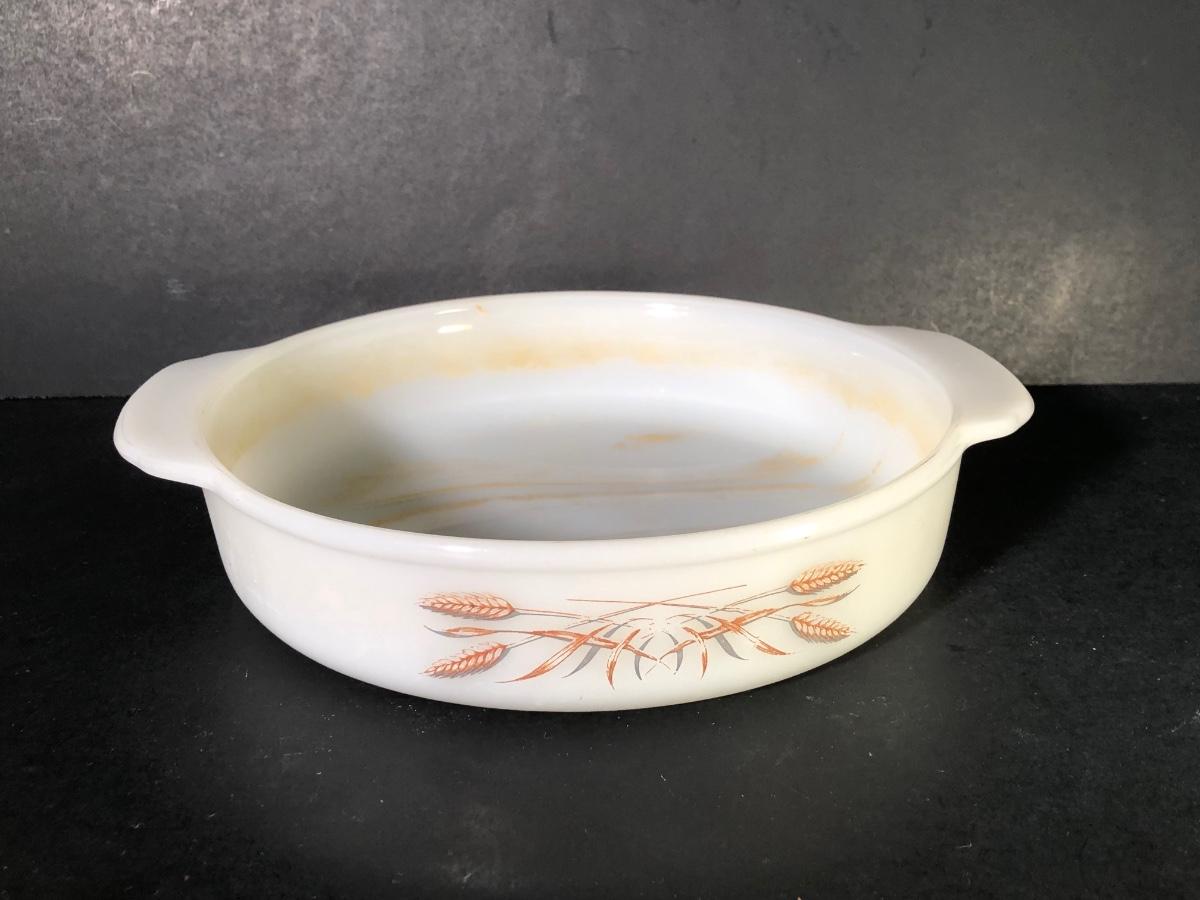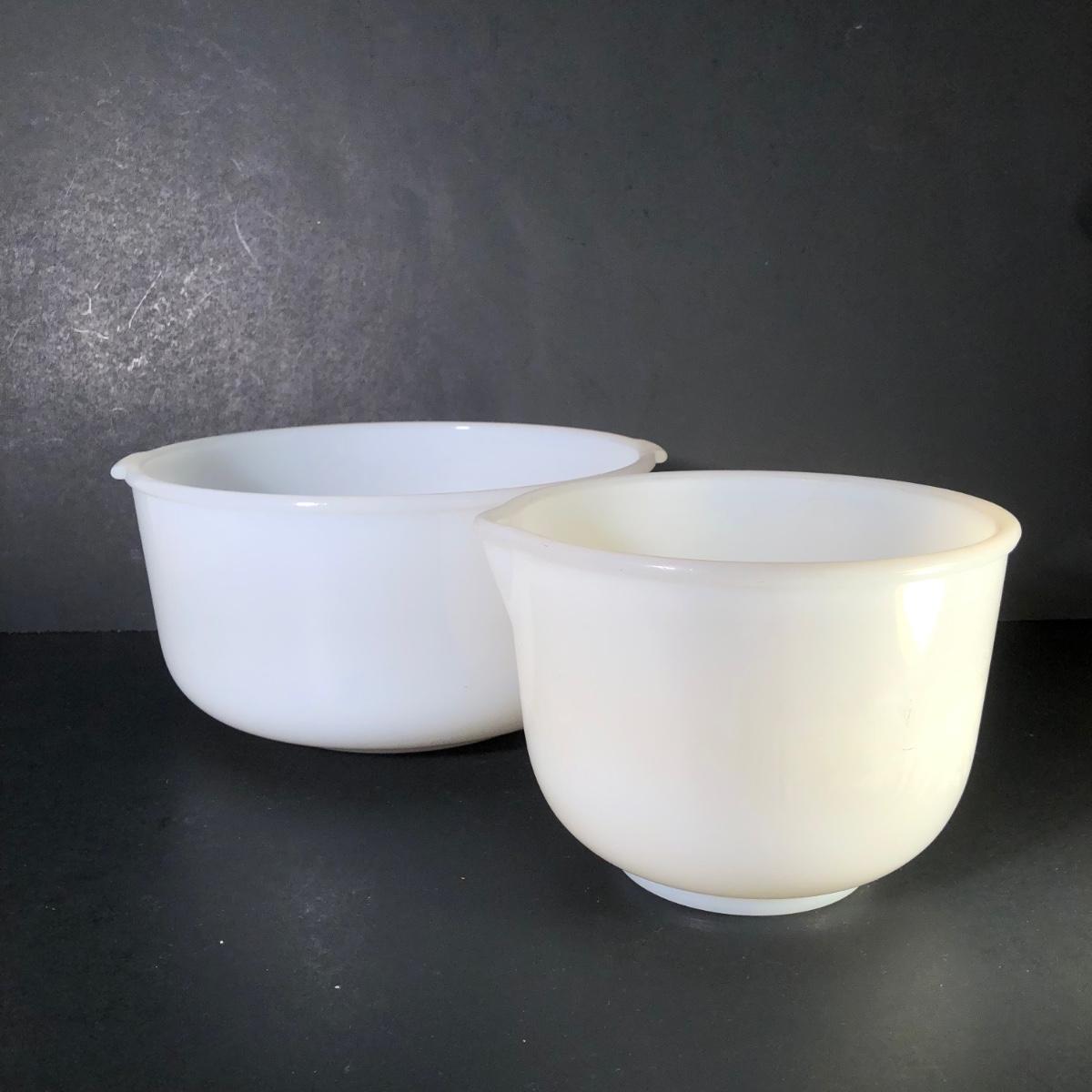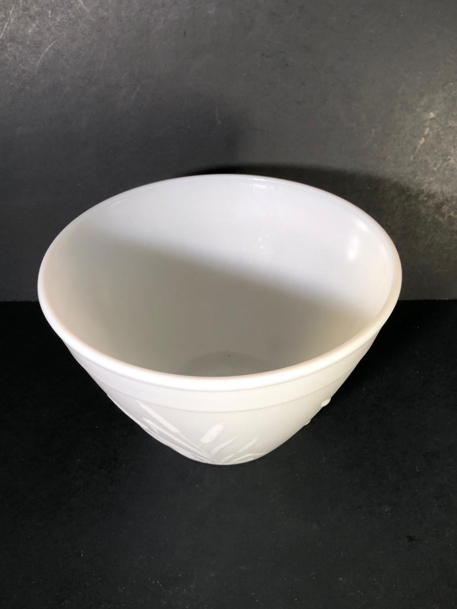 LOT 259F: Vintage Milk Glass - Glasbake for Sunbeam Mixing Bowls, Anchor Hocking Fireking Wheat Circular Baking Dish & More