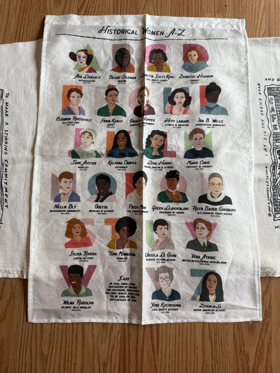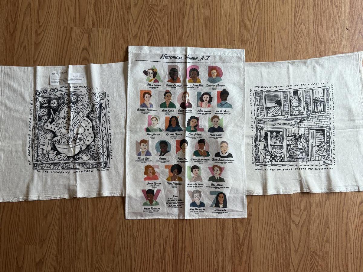 LOT 259K: Menuendos Printed Fabric Artwork & Women of History Tea Towel / Wall Art