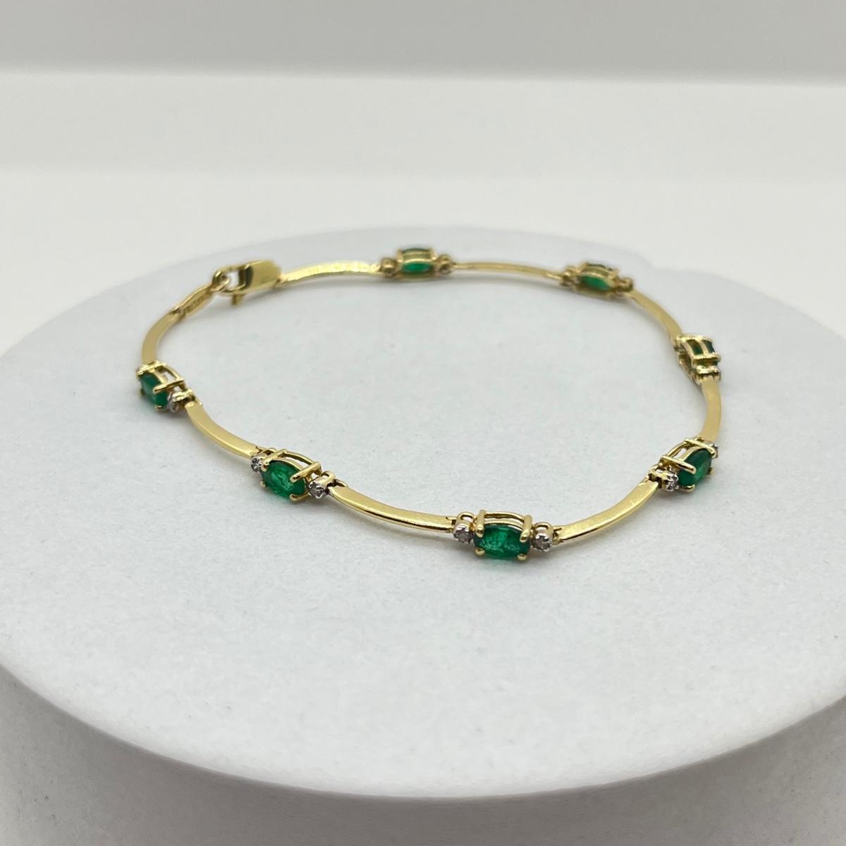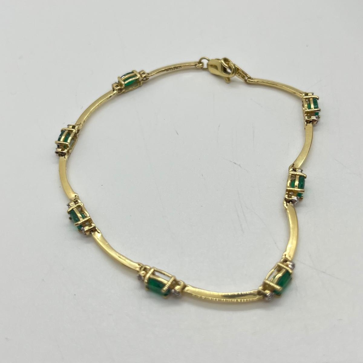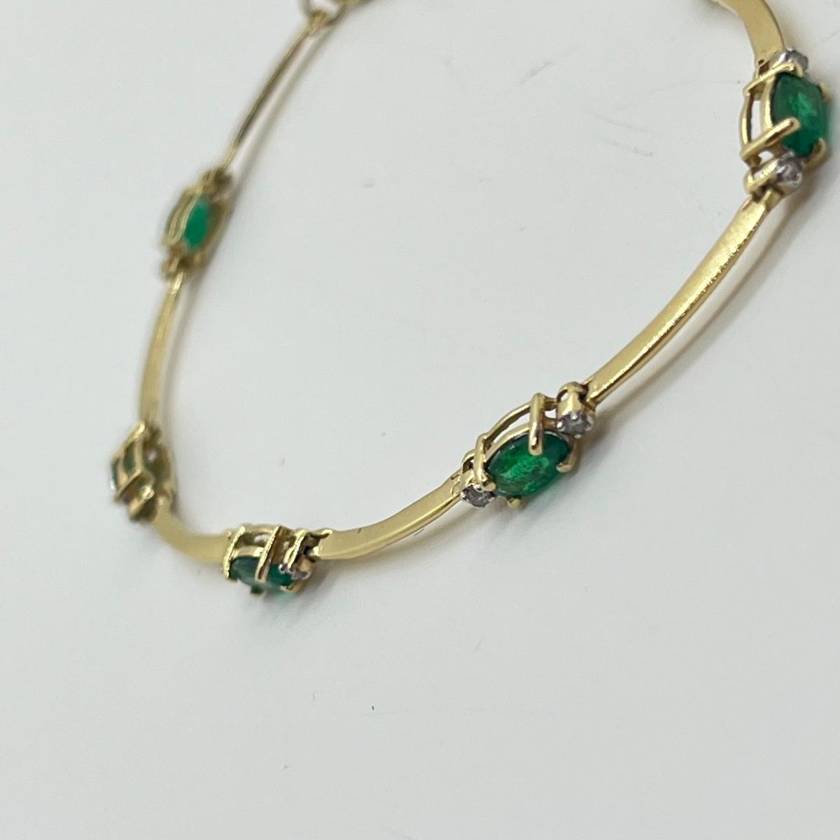LOT 25J: 14K Gold Emerald Diamond 7” Bracelet - 3.8 gtw