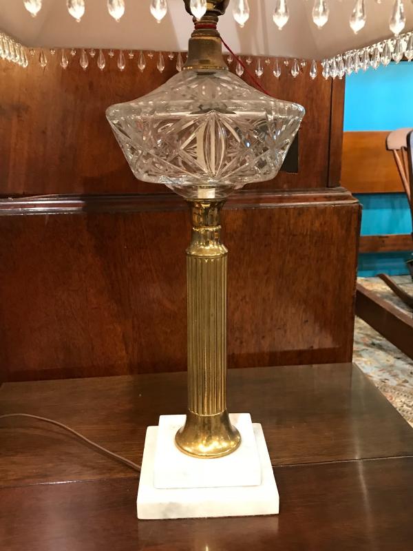 Lot 25-Vintage Marble Brass and Cut Crystal Lamp