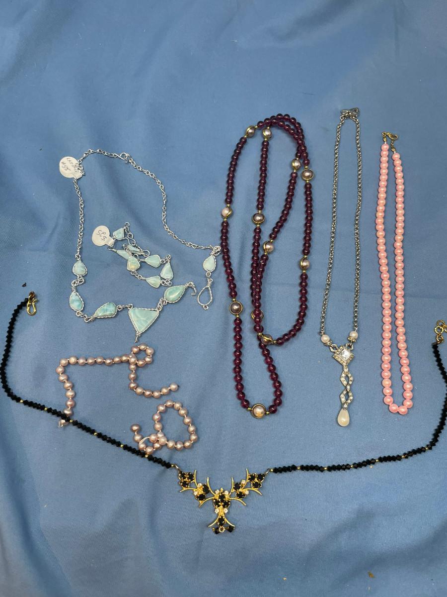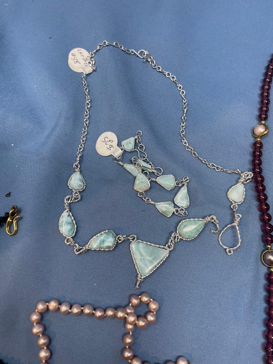 The one necklace & bracelet is Larimar! They are as is. The other necklaces are in good condition.