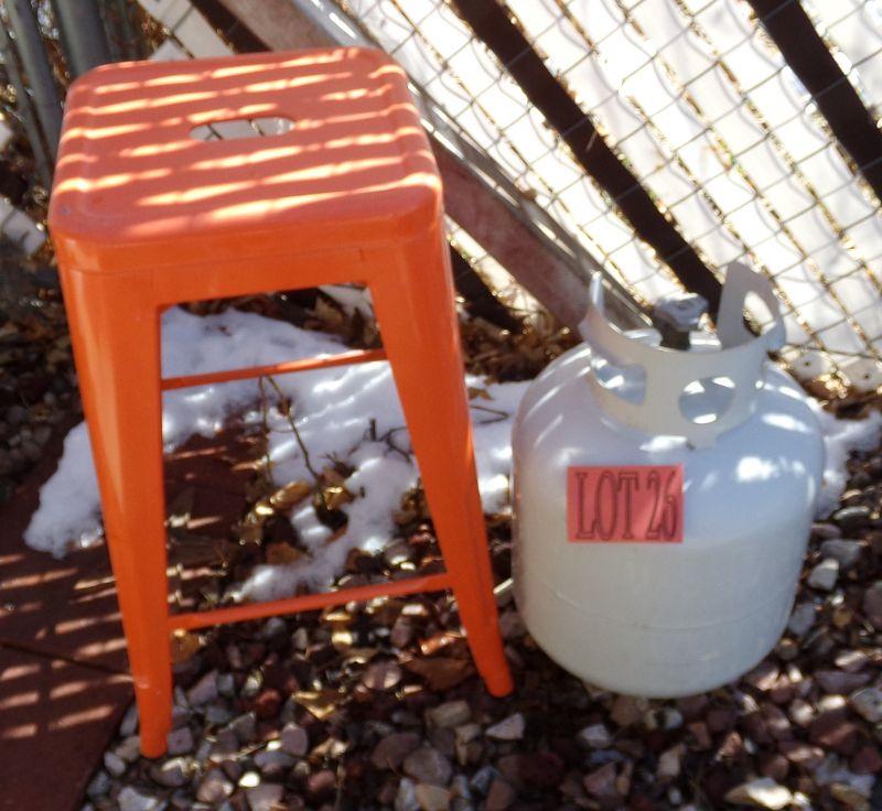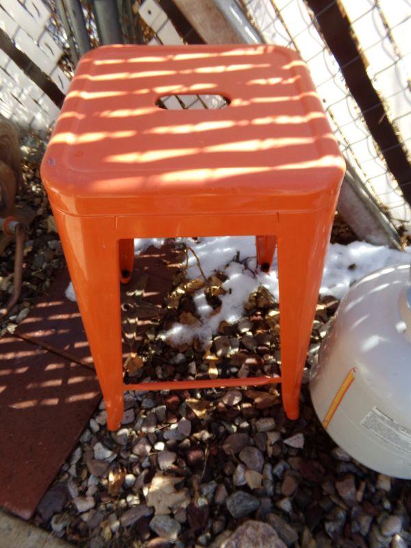 2 metal stools (1 has faded from the sun, not pictured) they have a handle hole in the middle of the seat for easy moving