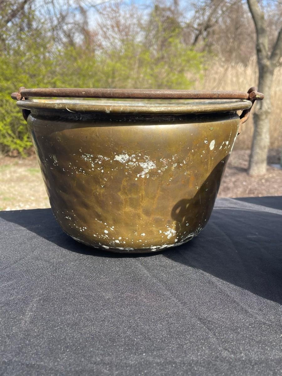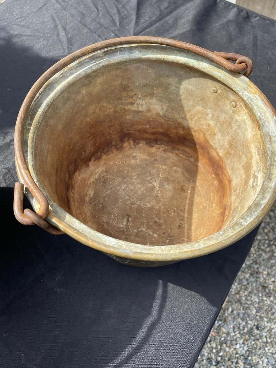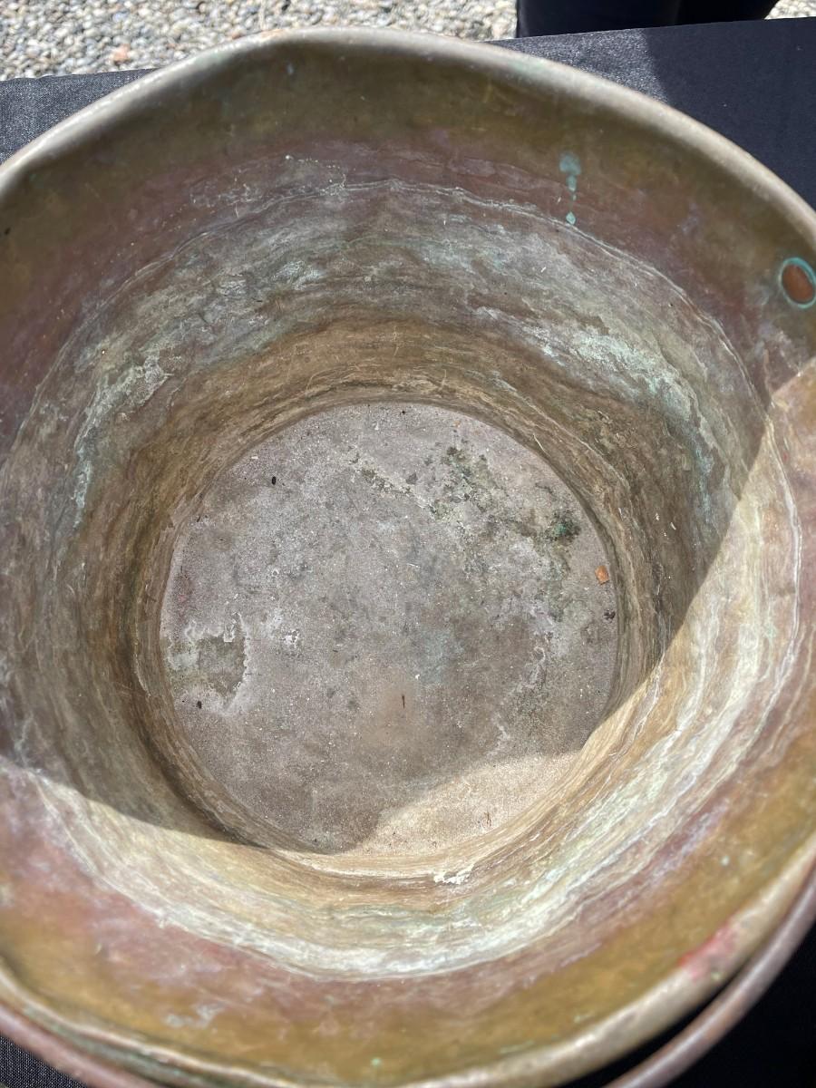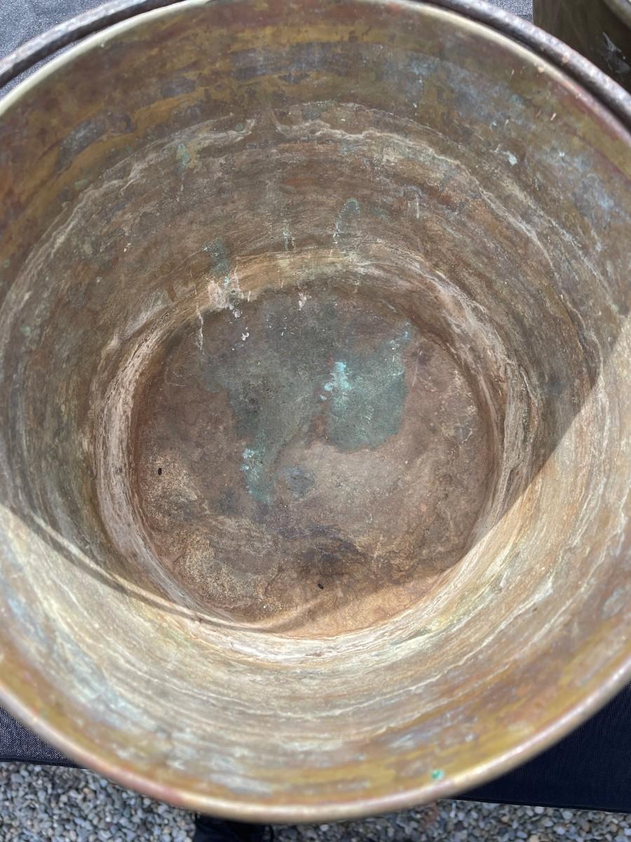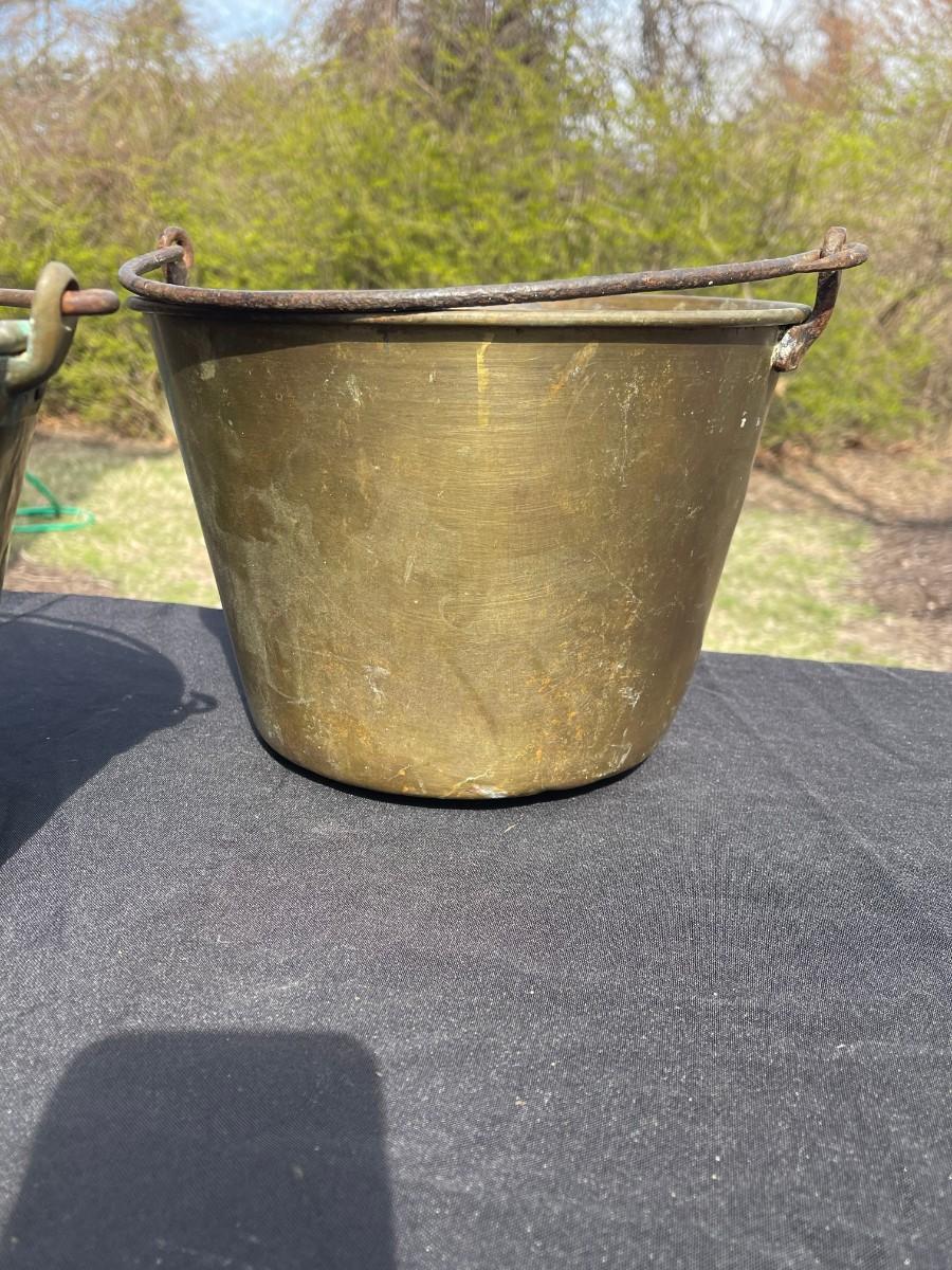 3 antique brass buckets with handle, already have their natural patina !